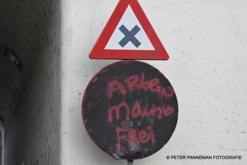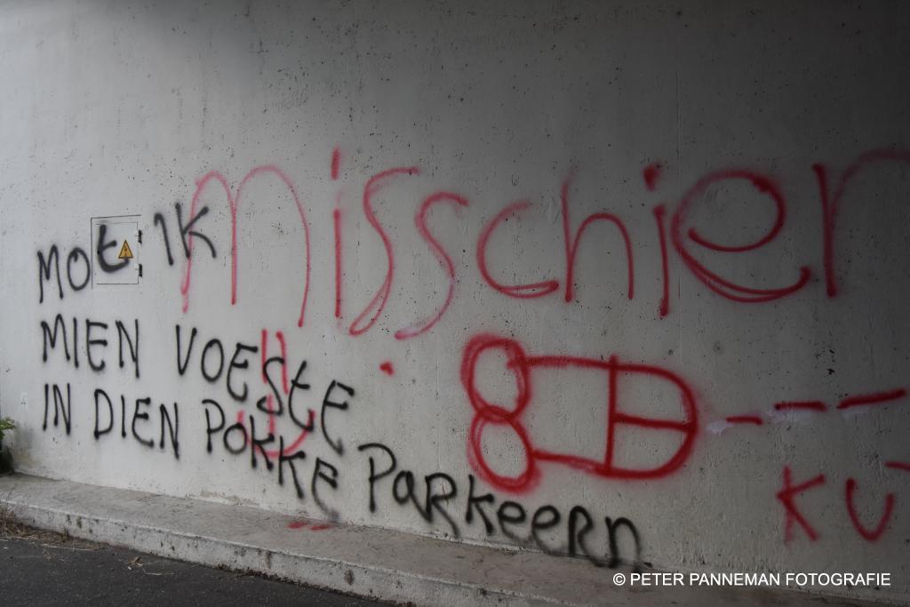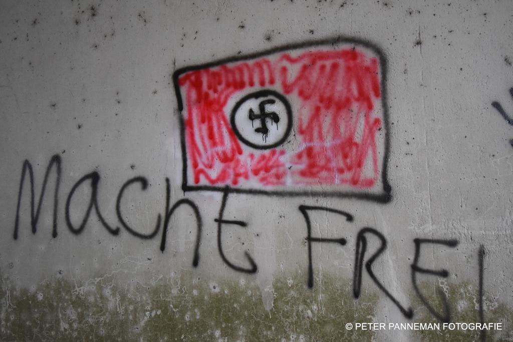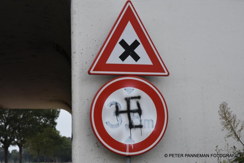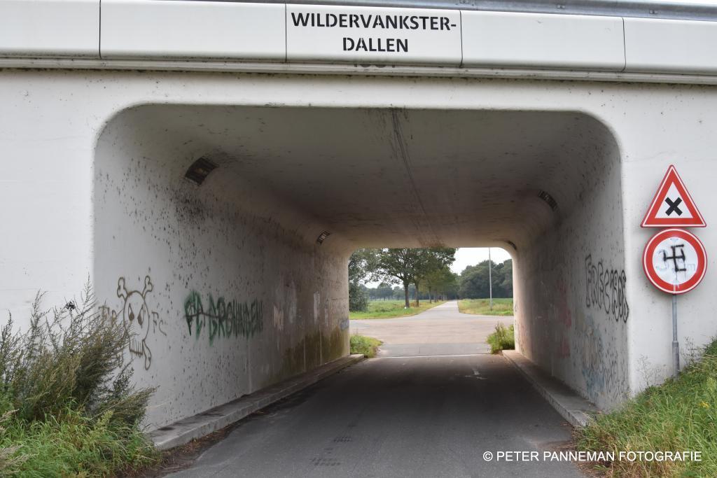 Voorbijgangers die voorbij het viaduct op de Dalweg 36 in Wildervanksterdallen kwamen keken zondag  raar en zeer verschrikt op. Diverse leuzen waaronder hakenkruizen en Jodensterren en andere zeer onsmakelijke teksten waren op het viaduct en verkeersborden geklad.