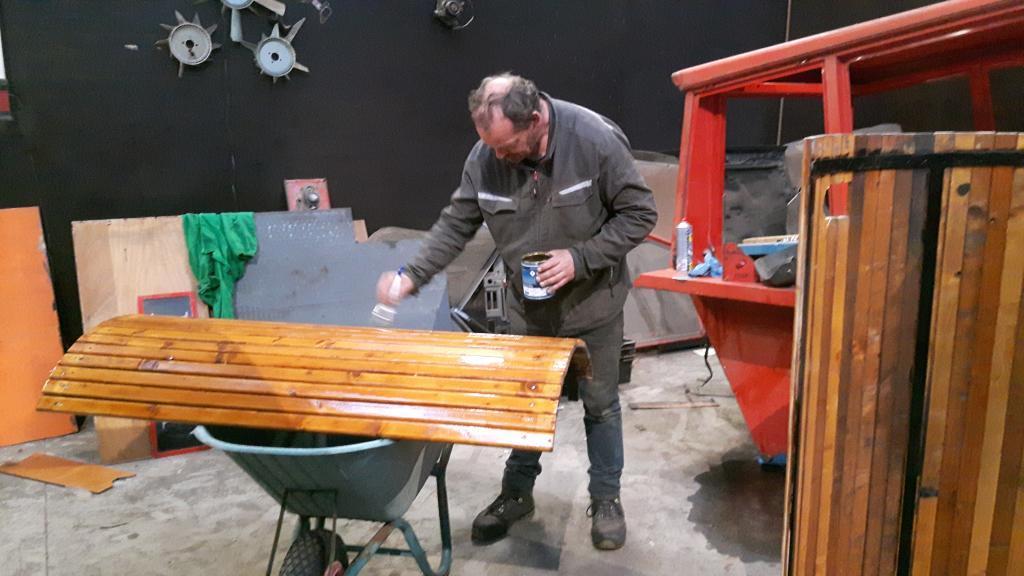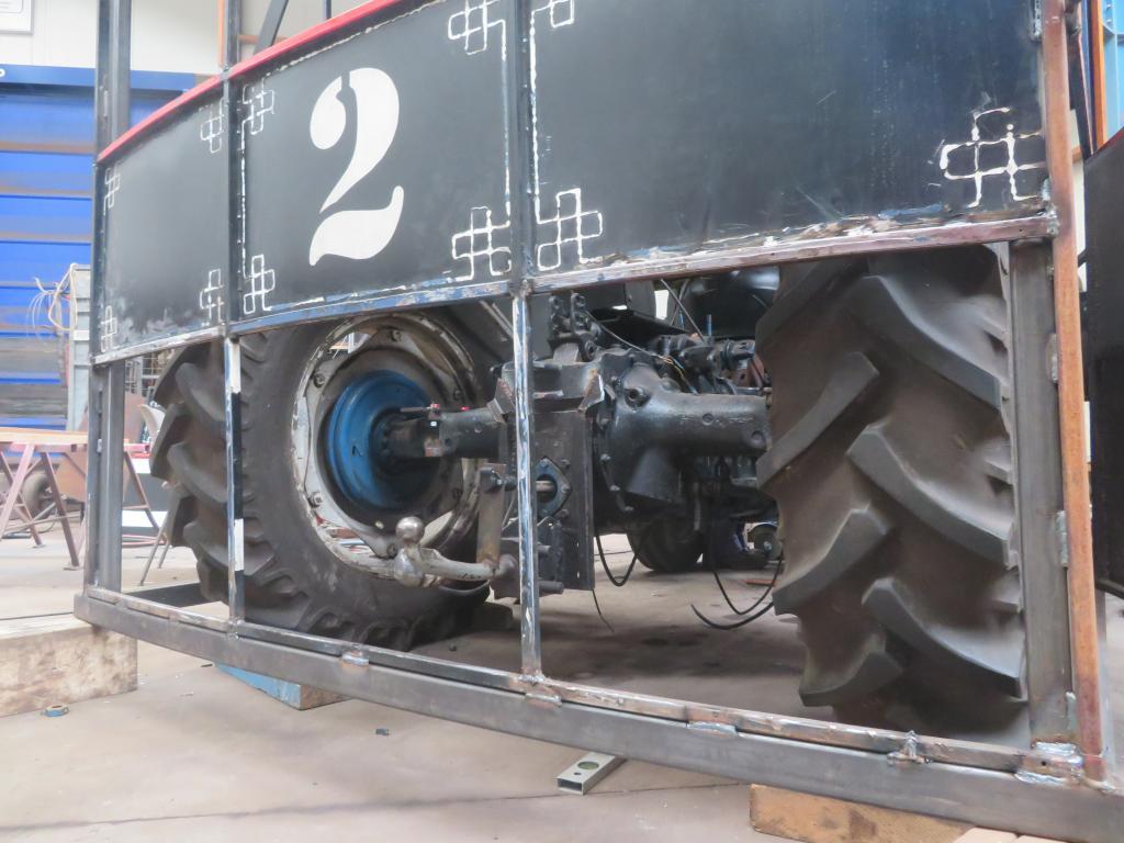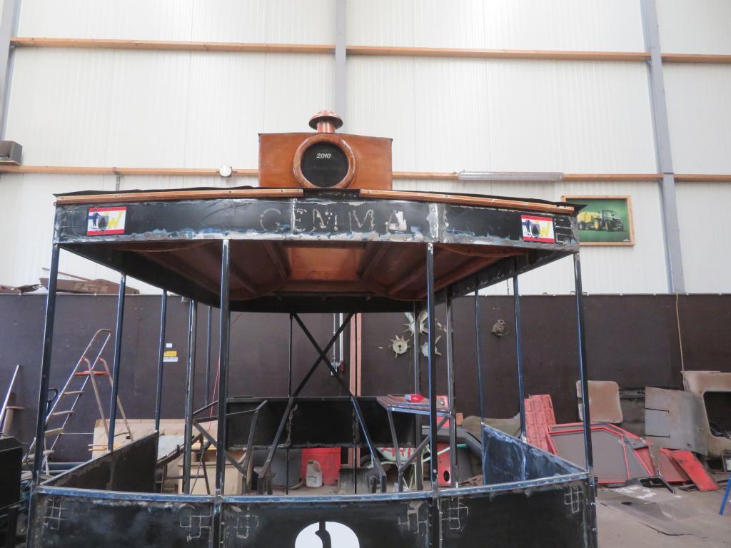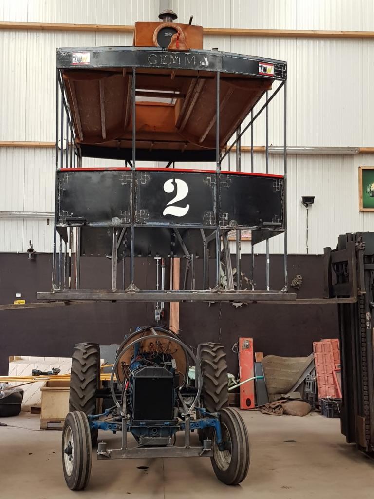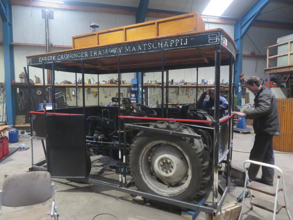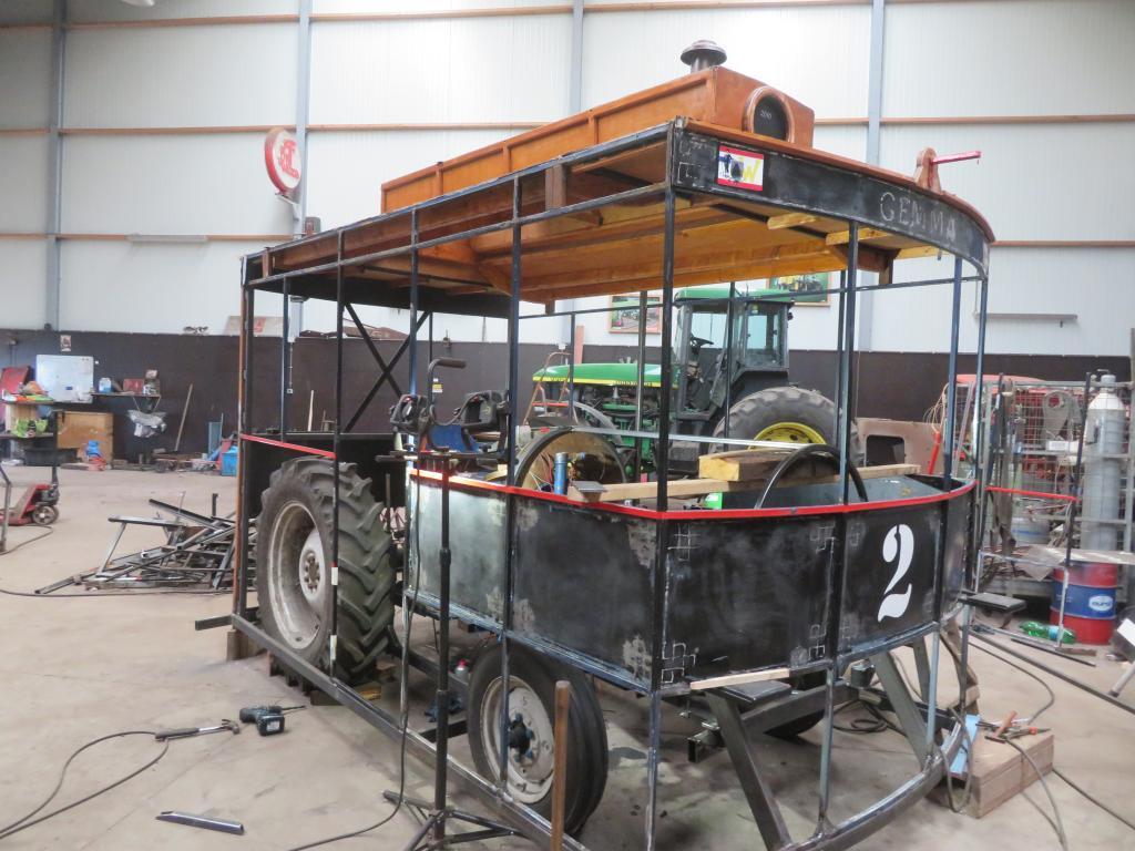 Met de grote revisie in een grote loods van het boerenbedrijf van de familie Stevens was men weer terug op de bouwplaats van de beide pronkstukken. Overigens is het onderstel van de paardentram alsook het trekker-onderstel voor de loc van de familie Stevens afkomstig.