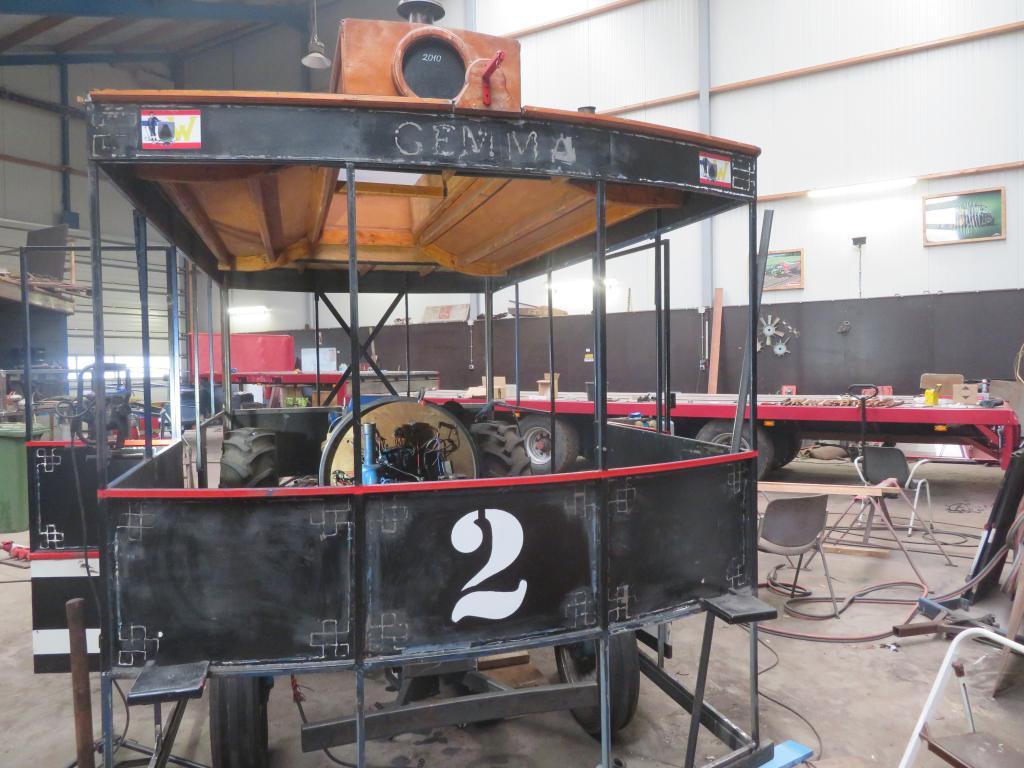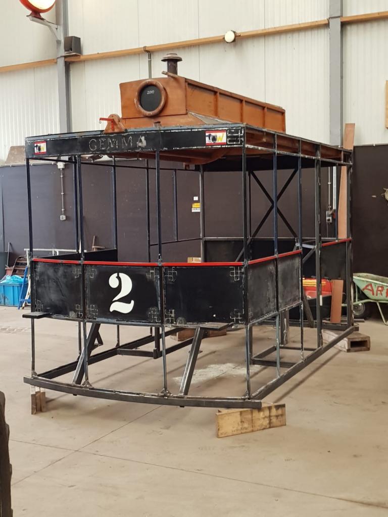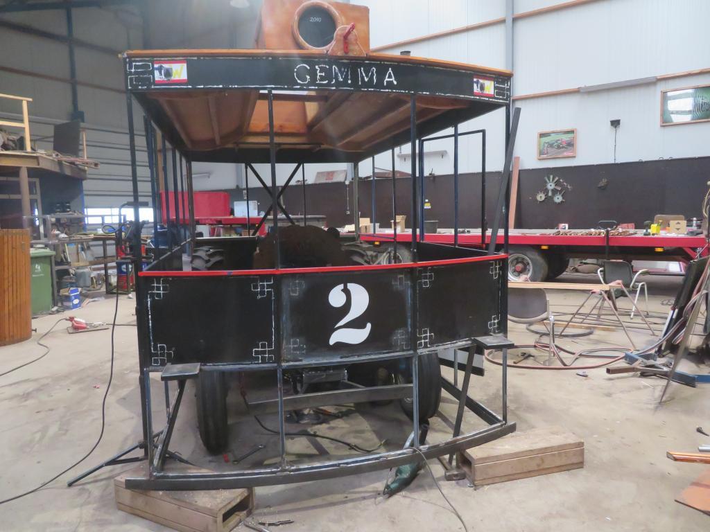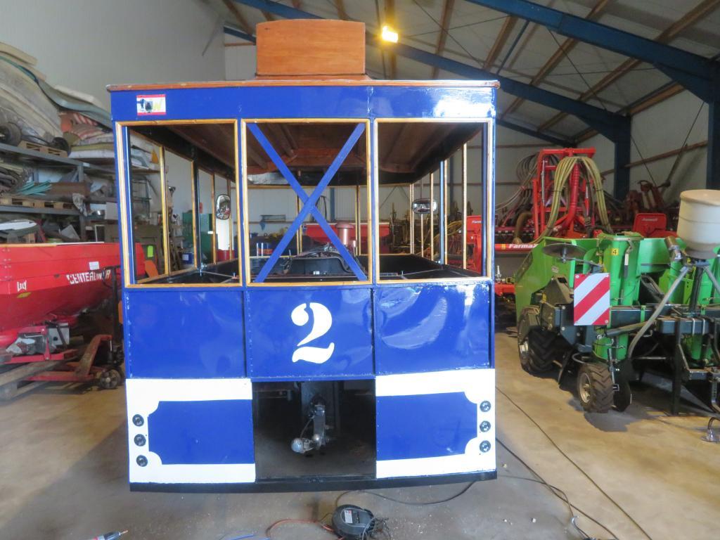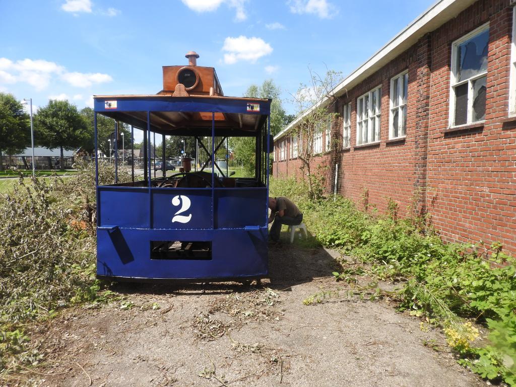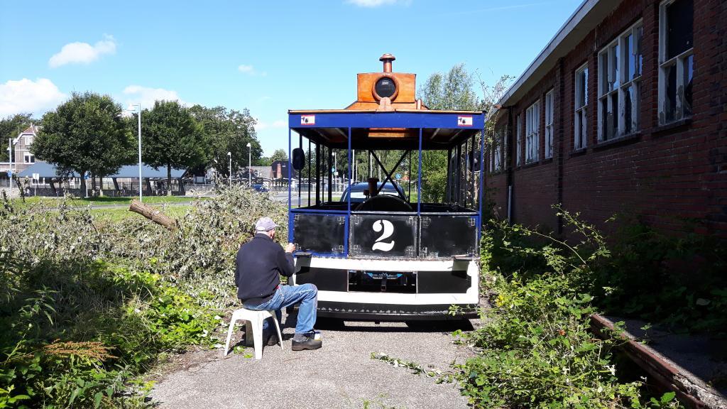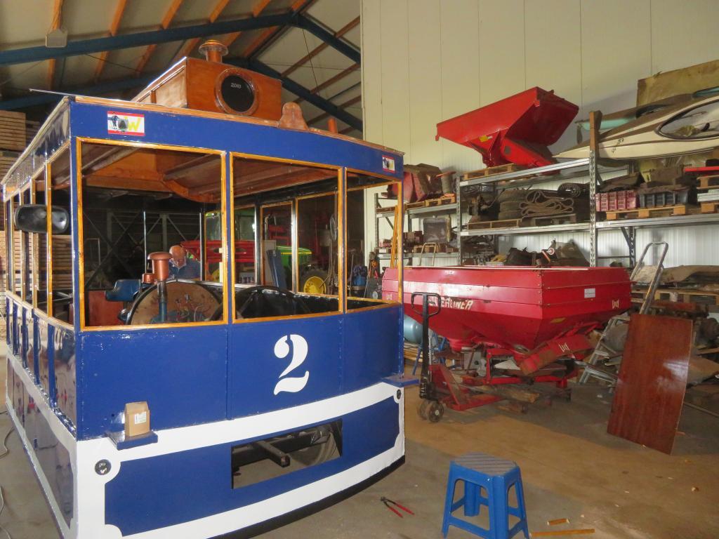 Door de vrijwilligers was vanaf maart dit jaar veel werk verzet met de complete revisie van de loc. Deze is totaal gestript geweest. De ophanging is vervangen door een zwaardere hoofdframe, die nu voor de opvanging van schokken, volledig op zes rubbers ligt. Het houten sierwerk beneden is volledig vernieuwd. Het metalen plaatmateriaal is hetzelfde gebleven, maar is volledig vast-gelast in plaats van vastgezet met popnagels. Was de loc voorheen zwart, met dezelfde blauwe kleur als de paardentram is het nu een mooier geheel geworden.