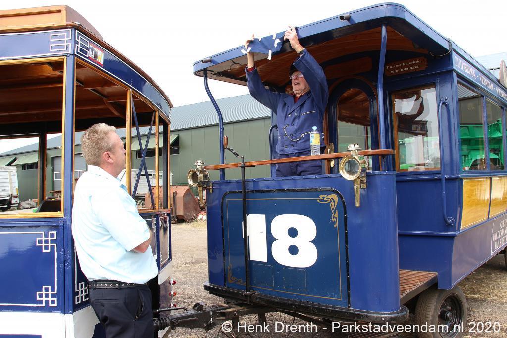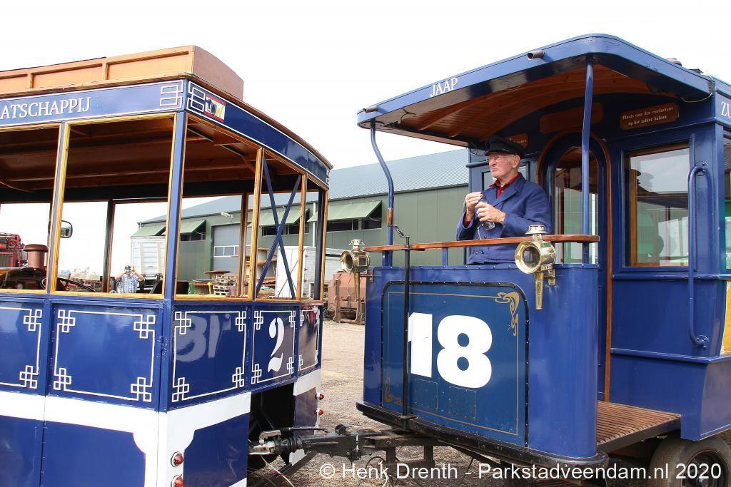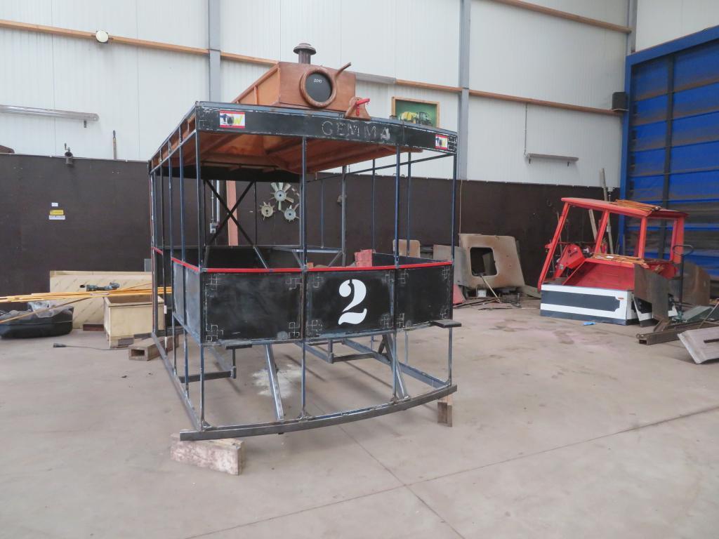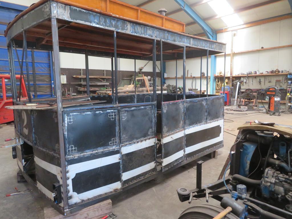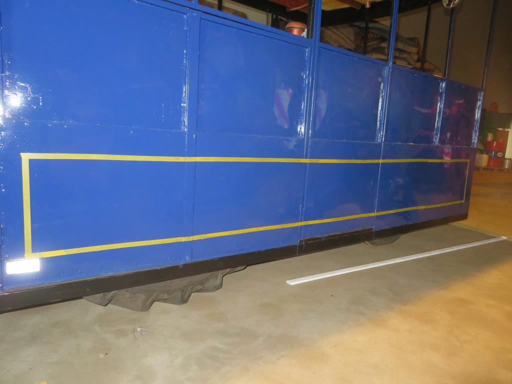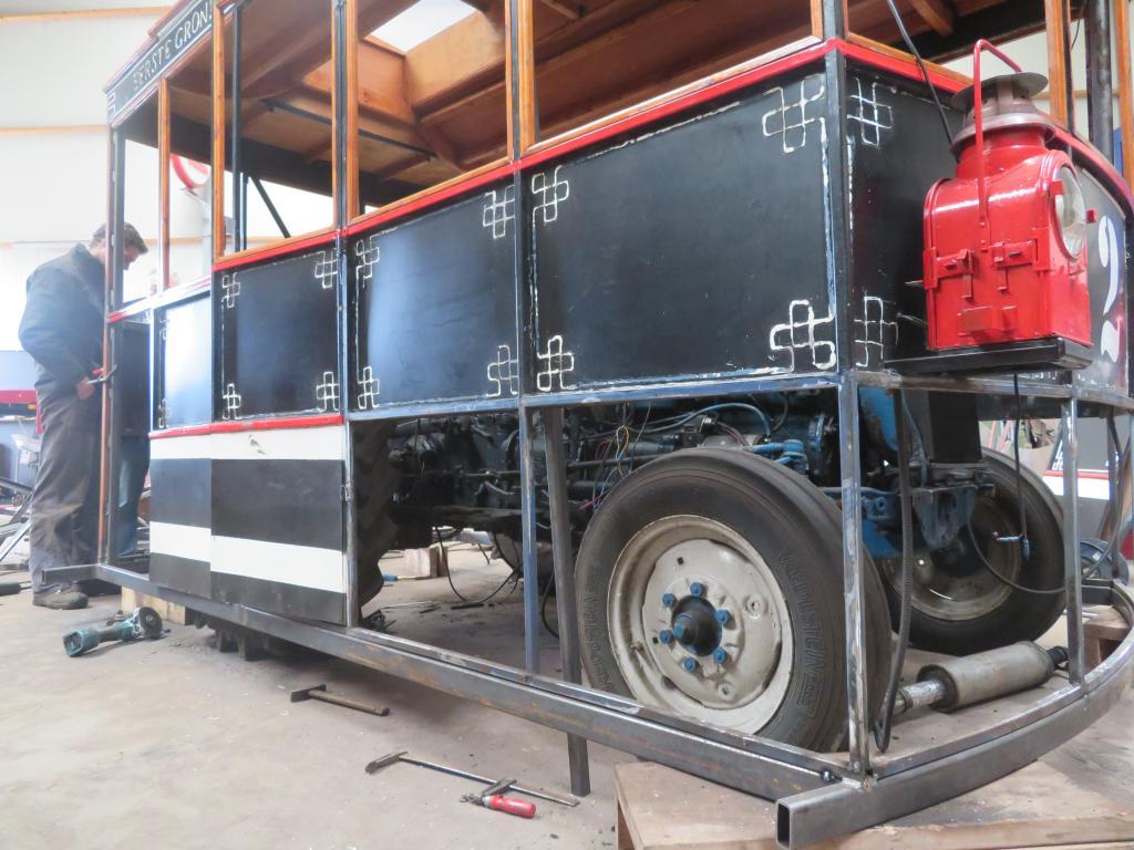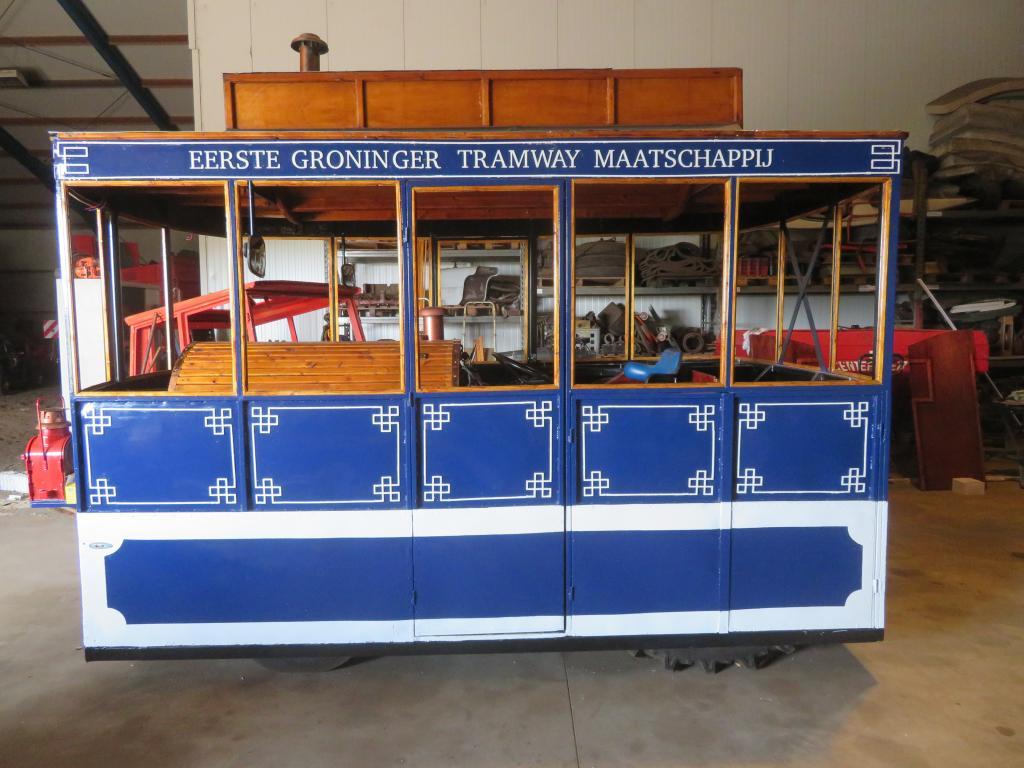 Door de vrijwilligers was vanaf maart dit jaar veel werk verzet met de complete revisie van de loc. Deze is totaal gestript geweest. De ophanging is vervangen door een zwaardere hoofdframe, die nu voor de opvanging van schokken, volledig op zes rubbers ligt. Het houten sierwerk beneden is volledig vernieuwd. Het metalen plaatmateriaal is hetzelfde gebleven, maar is volledig vast-gelast in plaats van vastgezet met popnagels. Was de loc voorheen zwart, met dezelfde blauwe kleur als de paardentram is het nu een mooier geheel geworden.