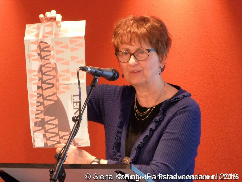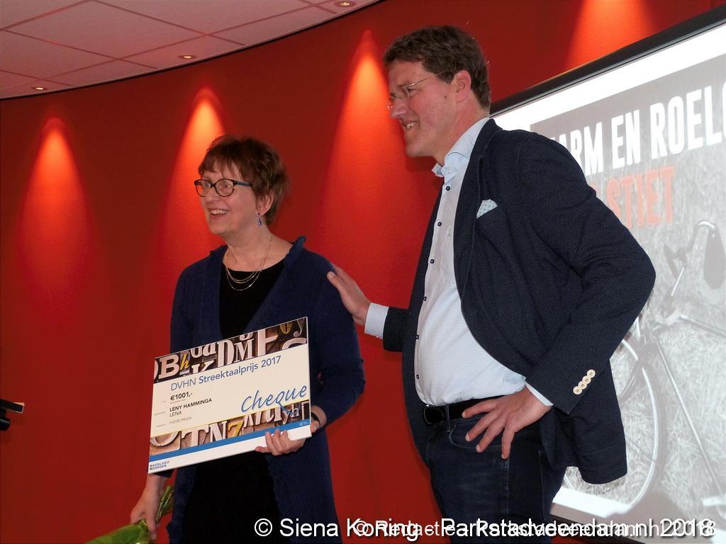 Leny Hamminga nam de prijs in ontvangst in de categorie Proza en Poëzie. Zij heeft in haar boek Lena een beeld gegeven over haar grootmoeder, en over haar bijzondere en tegelijk ook gewone leven en van de generaties na haar. In de soms zwaarmoedige beschouwingen van haar grootmoeder hebben erfelijkheid, milieu en opvoeding een belangrijke plek. De persoonlijke inslag in de verhalen over de gebeurtenissen maken het goed inleefbaar.