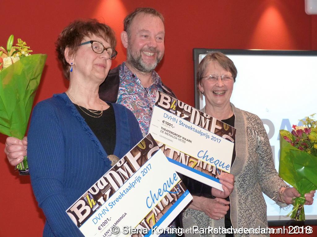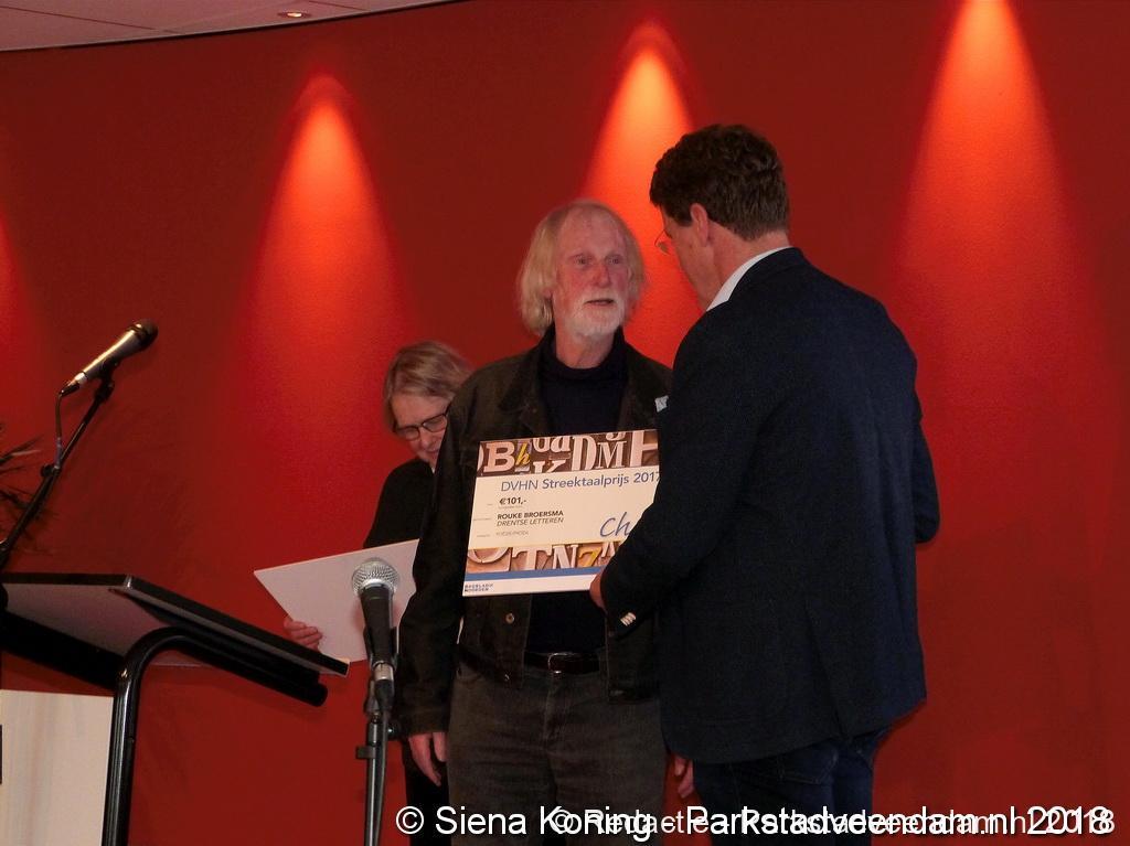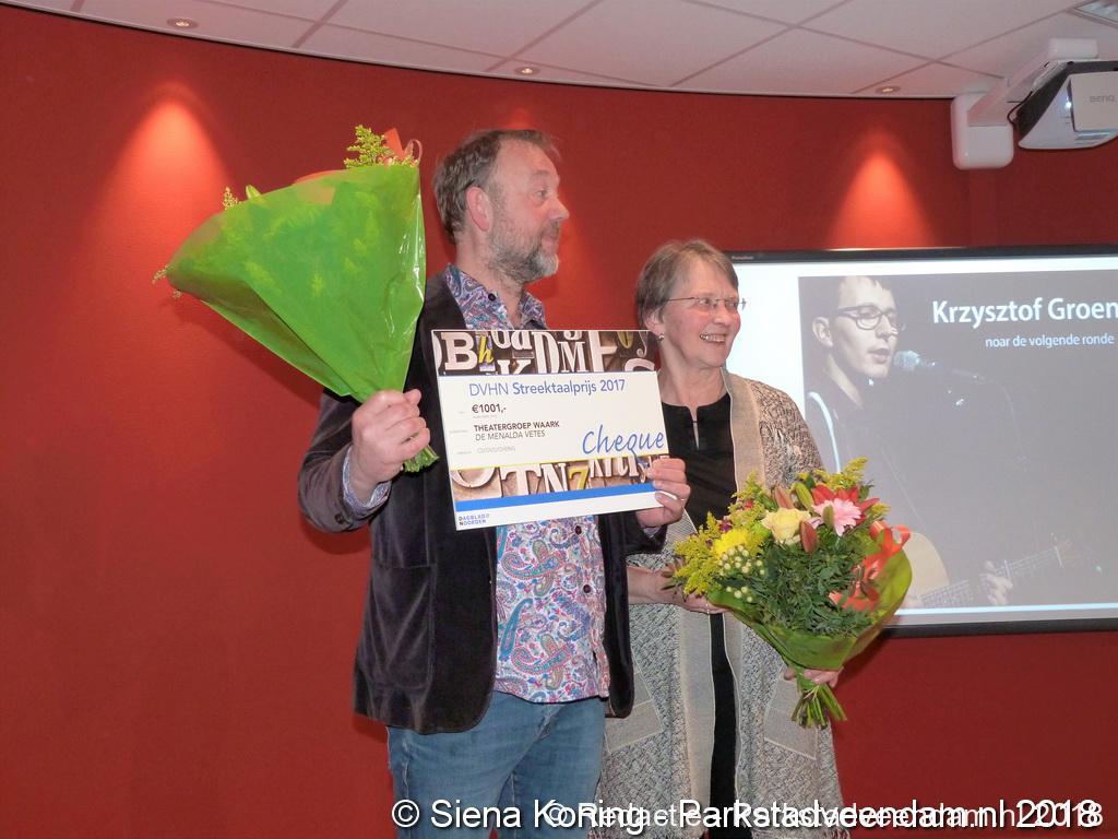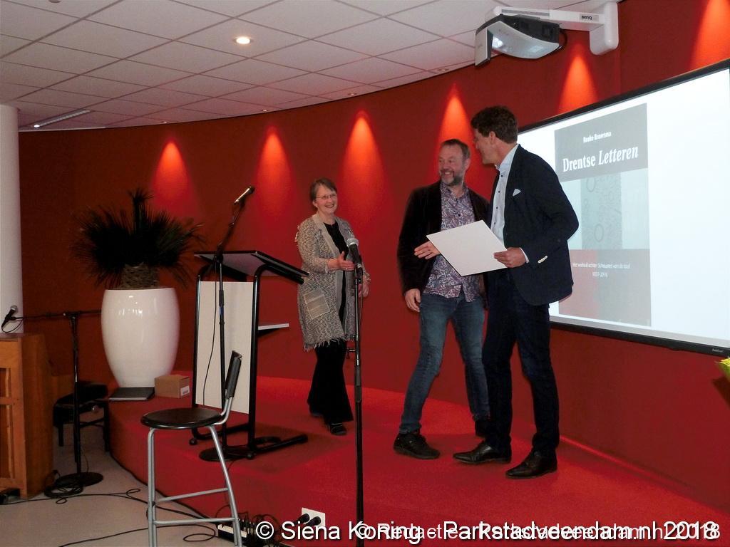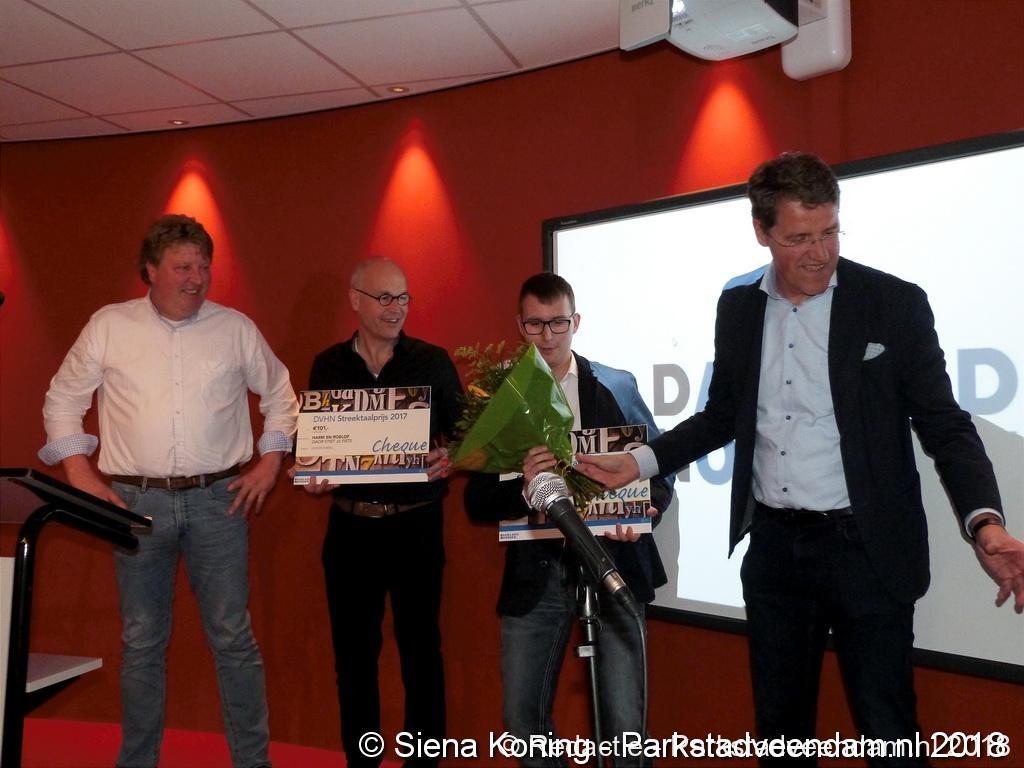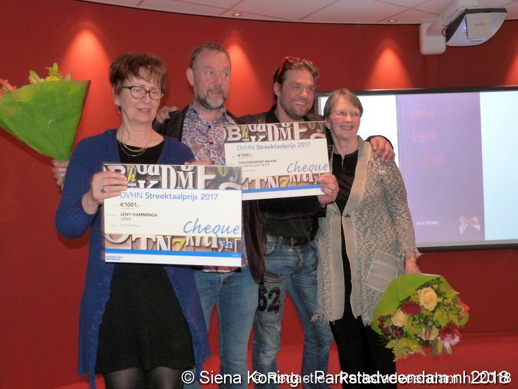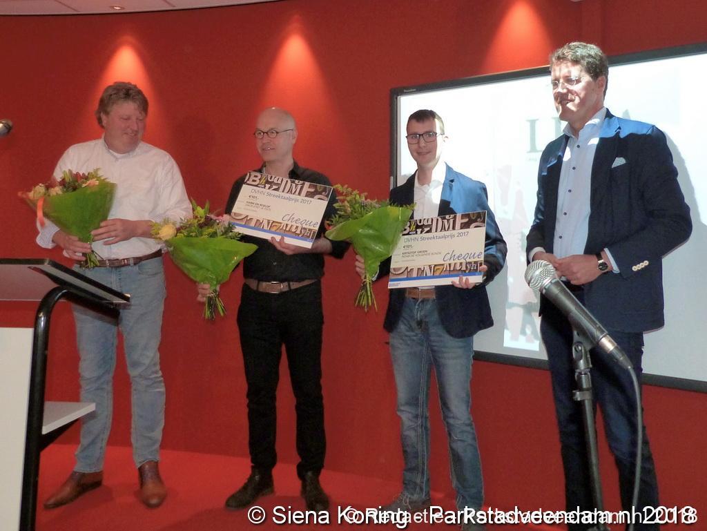 Op de dertiende editie van de DvhN Streektaalprijzen heeft juryvoorzitter Eric van Oosterhout aan de drie winnaars de prijzen uitgereikt.