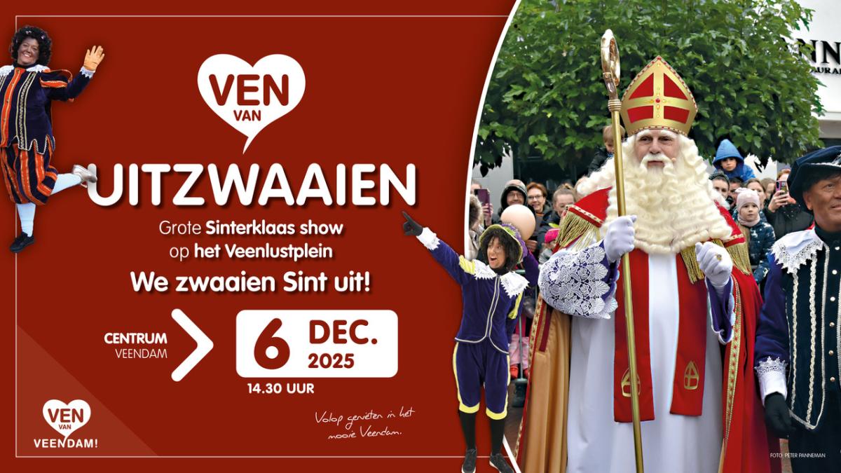 Na weken vol vrolijkheid, pepernoten en pakjes neemt Veendam binnenkort afscheid van Sinterklaas. Op zaterdag 6 december om 14:30 uur vindt op het Veenlustplein de eerste officiële Sinterklaas Uitzwaaitocht plaats. Jong en oud zijn welkom om de goedheiligman uit te zwaaien en hem een goede terugreis naar Spanje te wensen.