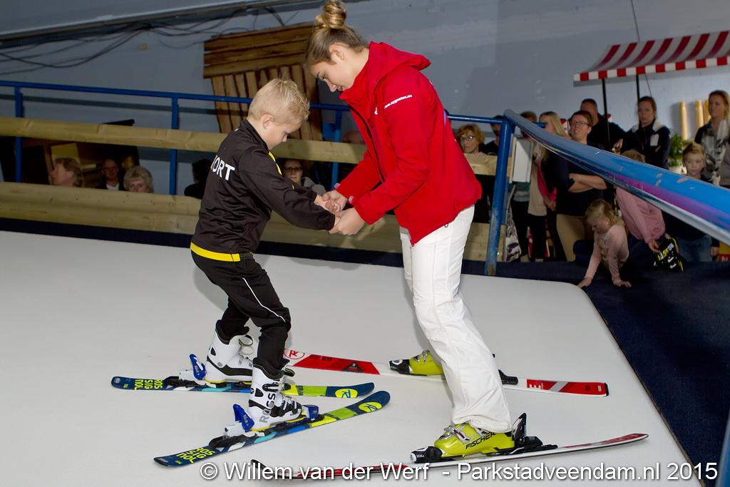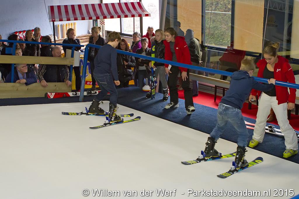 Tump: “Tijdens de open dag hebben de mensen de kans om te lessen kennis te maken. Om even de baan uit te proberen. Of ze eerder op ski's gestaan hebben en of ze het leuk vinden. En als ze denken, het lijkt me wel wat, dan kunnen ze een paar lessen boeken. En kunnen tegen een korting les krijgen. Tussendoor waren er demonstraties skiën, hoe het ook kan. Een indoorbaan is best moeilijk, als je op een baan opereert is het allemaal voorzichtig”.  “Nou, ik doe niet mee hoor, ben al blij dat ik op de benen blijf”, zegt de verslaggever.