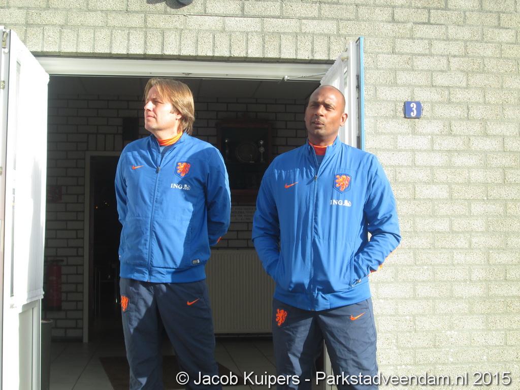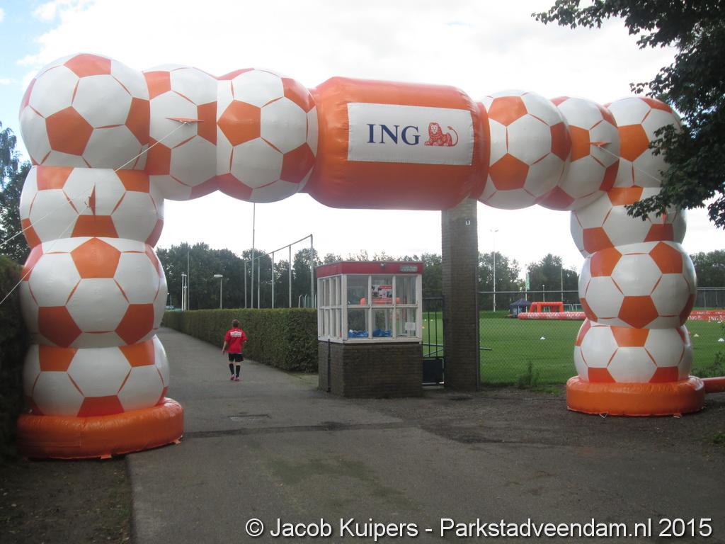 Hij maakte vlot nog even 2 fotos van het tweetal en daarna volgden ze hun weg naar de scheidsrechtershome waar de organisatiecomite inmiddels bijéén was geroepen. Even onder de erehaag van de ING door en ze vervolgden hun weg naar de scheidsrechtershome waar de voorzitter van Wildervank met haar afgezanten klaar stond om de voormalige toppers van Ajax in het Nederlands-elftal te verwelkomen.