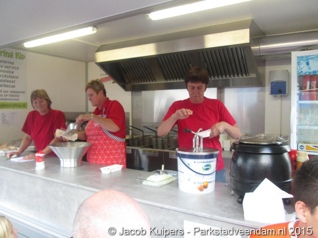 Inmiddels was het rondom de kantine een drukte van belang. Iedereen kon terecht voor een natje in een droogje. Een extra toilet stond opgesteld om het inwendige van de mens te lozen. Loten werden er verkocht om de la van de club te spekken. En wie anders dan Mr. Wildervank (Goos Boers) verkocht de loten. Vervolgens sprintte hij weg om elders ondersteuning te bieden.