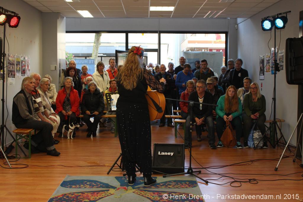 De voormalige bibliotheek heeft sinds 20 juli een nieuwe bestemming. Men hoopt dat ook de andere leegstaande panden een nieuwe bestemming zullen krijgen. Anderen hopen misschien stilletjes dat de panden nog wel even beschikbaar zullen blijven voor dit mooie gratis toegankelijk gebeuren. Waar de artiesten heel dicht in contact staat met hun publiek, en vice versa. Er was direct contact, en het was een heerlijke middag vol gevuld met streektaal in muziek, verhalen en gedichten. En het Gronings van Tineke Rouw met door haar buikdansgroep Vasara in een Oosterse omlijsting.