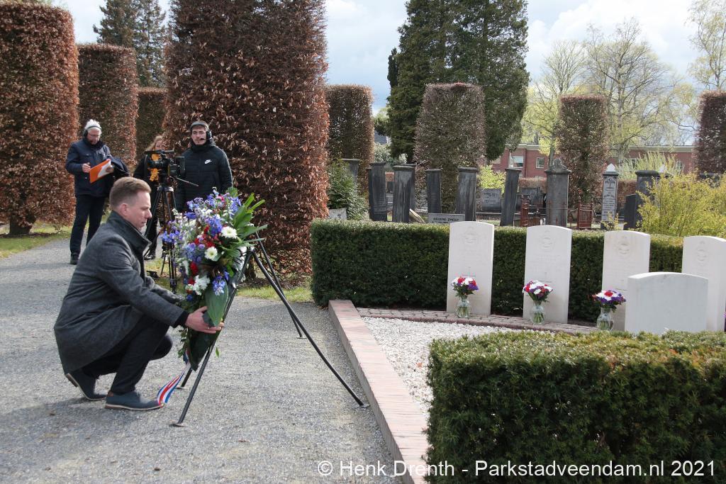 Bij de Engelse graven van de 10 omgekomen vliegeniers legde burgemeester Sipke Swierstra met Sergeant der 1e klasse b.d. Michael Buurmeijer een krans. Vervolgens door de Raad van Kerken, Jan Hulzebos, Stichting Jumelage en Henk Wieger Walburg.