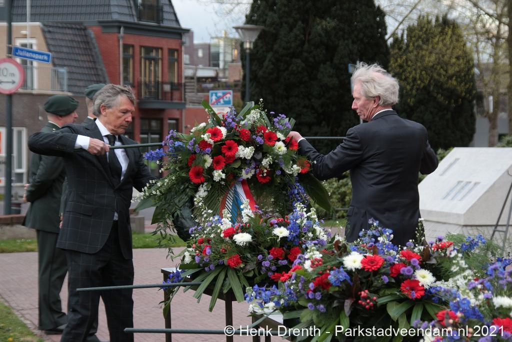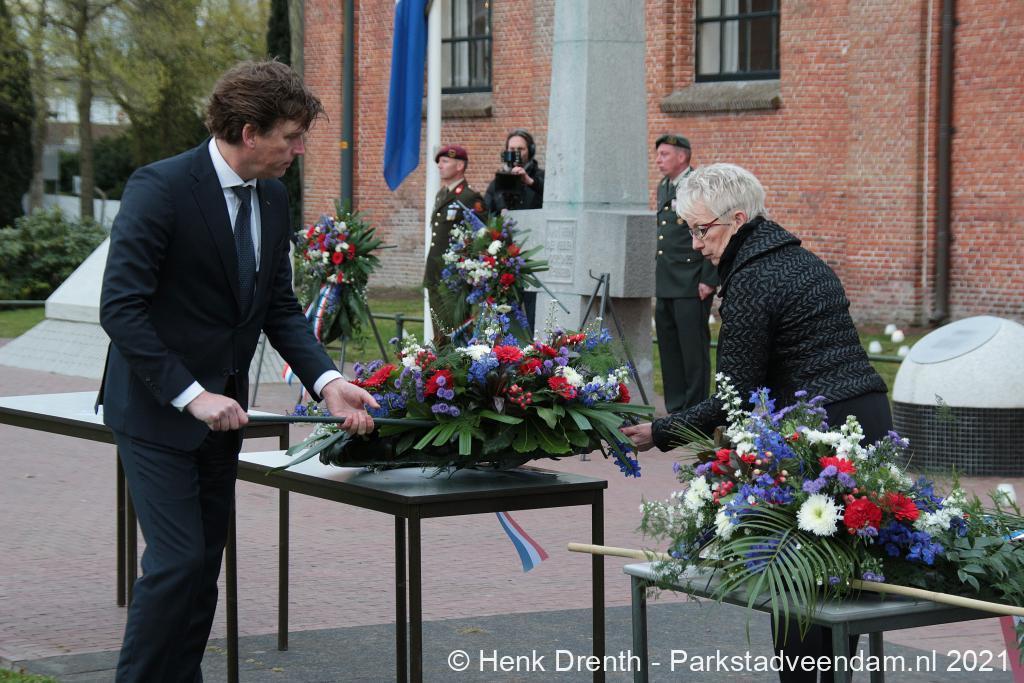 Namens de Raad van Kerken legde Trijnie de Jonge een krans. Henk Robben namens de stichtingen Wildervanck-Wildervank en Wildervank vooruit. Grieto Visser namens de handelsvereniging Wildervank, en Barto Koster namens de voetbalvereniging Wildervank. Wijk- en buurtbeheer Wildervank werd bij de kranslegging vertegenwoordig door Hennie Doedens-Kruizinga en Jan Rijks.