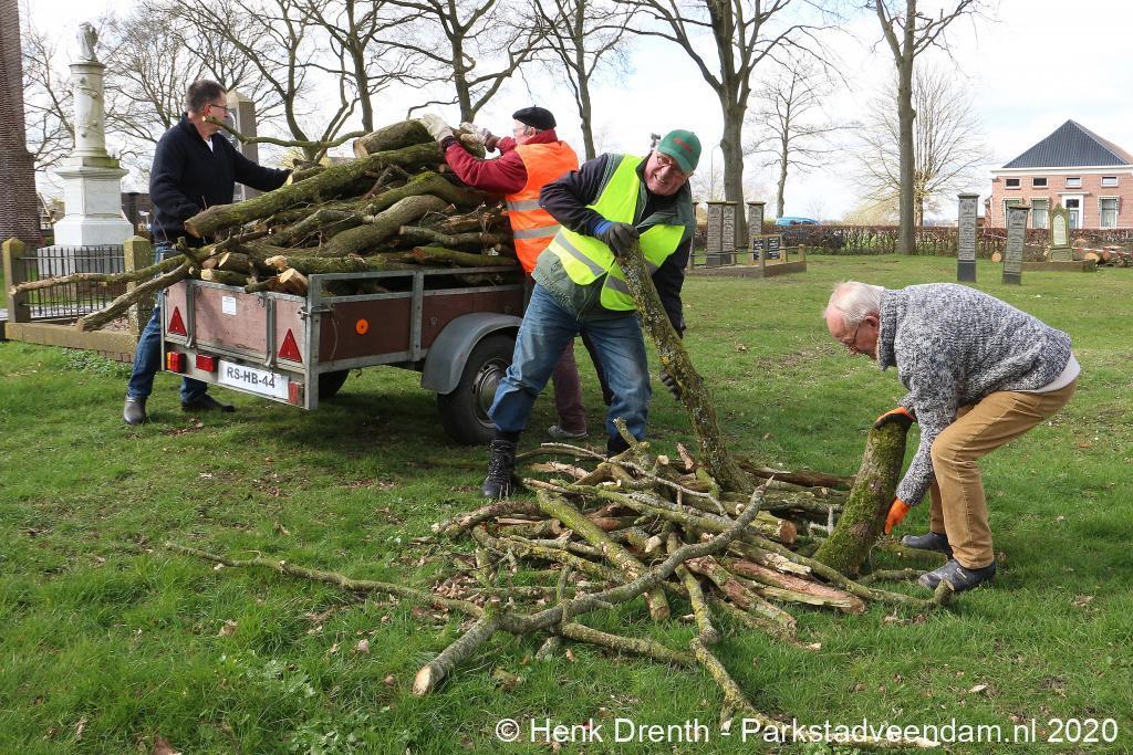 Particulieren en twee stichtingen zijn wel geweest om gratis de dikkere takken af te voeren voor haardhout. Om zo het kerkhof schoon opgeleverd te krijgen. Van de vijftien aanmelding zijn de eerste vijf aan de beurt geweest. Het haardhout was gelijkmatig over 30 bulten verdeeld. In totaal waren er ruim 30 mensen mee bezig. Met daarbij ook hulp van de vrijwilligers. In de collectebus van het MHC konden ze een vrije gift doneren voor het onderhoud van de monumentale graven.