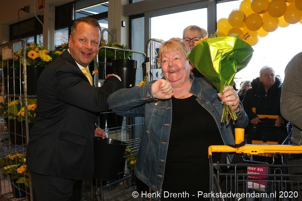 De eerste 150 bezoekers zijn met een mooie bos bloemen ontvangen. Bovendien ontvangen alle klanten die voor een bedrag van 25 euro of meer boodschappen doen een ambachtelijke appeltaart (geldig tot en met zondag 15 maart).