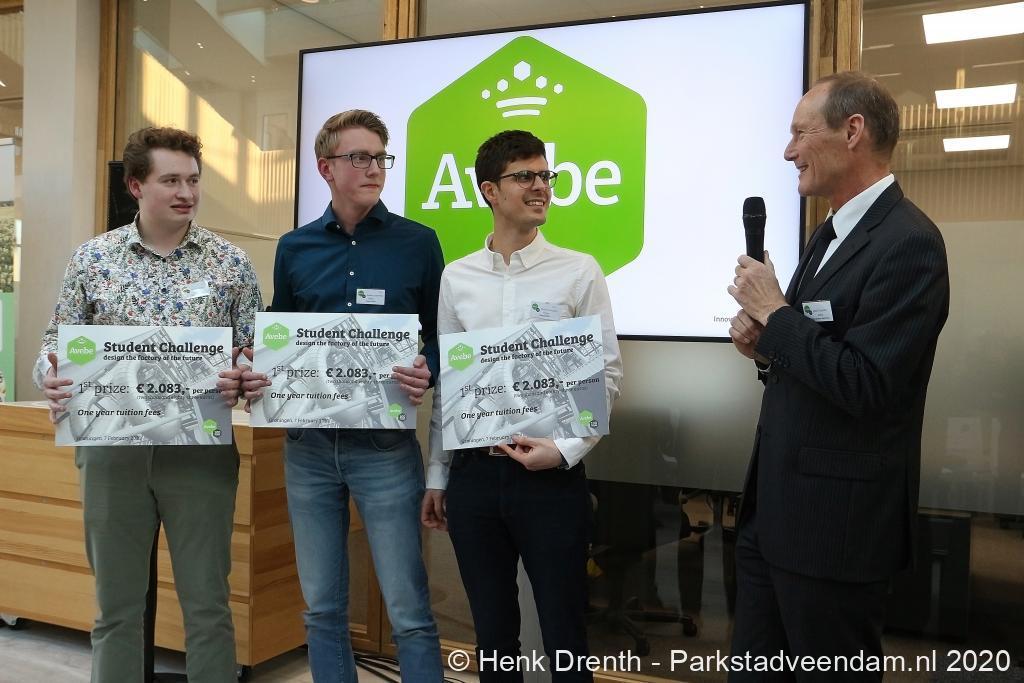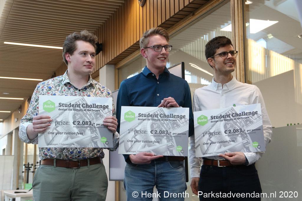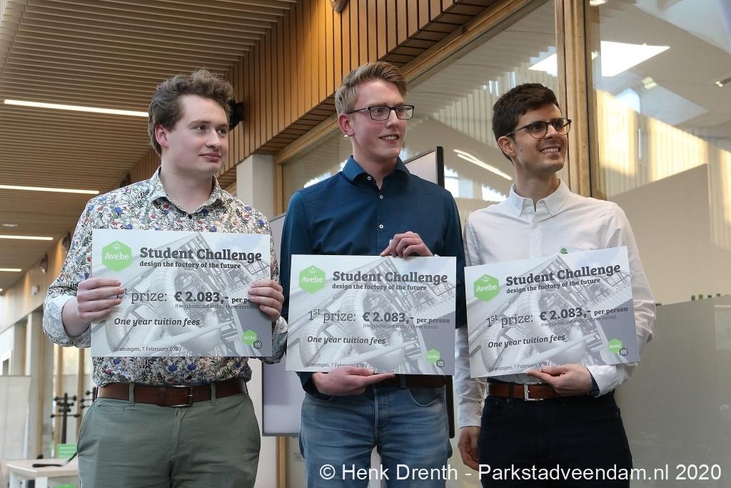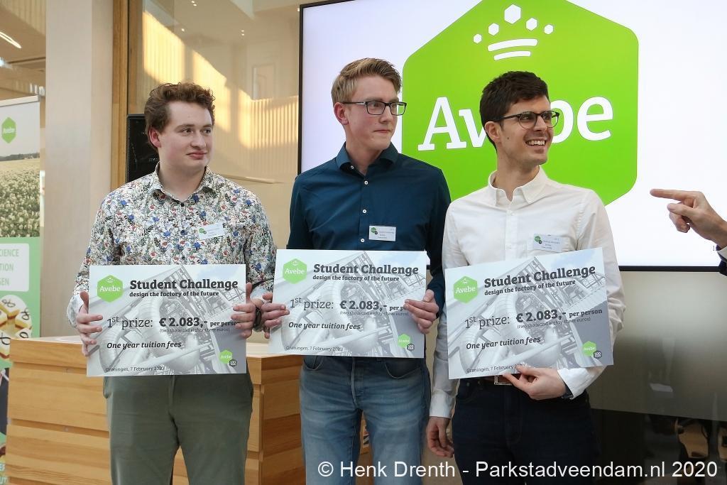 Studenten van de Hanzehogeschool Groningen en Wageningen Universiteit hebben met hun team Ave2be, de Avebe Student Challenge gewonnen. Ze hebben daarmee een jaar collegegeld in de wacht gesleept. Met de Student Challenge heeft Avebe studenten uitgedaagd om in het kader van het 100-jarig jubileum van de coöperatie de fabriek van de toekomst te ontwerpen. Innovatie en duurzaamheid staan daarbij centraal. Het team, bestaande uit Nicolas Curubeto, Sander Oosterveld en Connor Calnan, wist met hun voorstel Ave-To-be: The Plant of the Future, zowel de jury als het publiek te overtuigen en liet daarmee de vier andere finalisten achter zich.