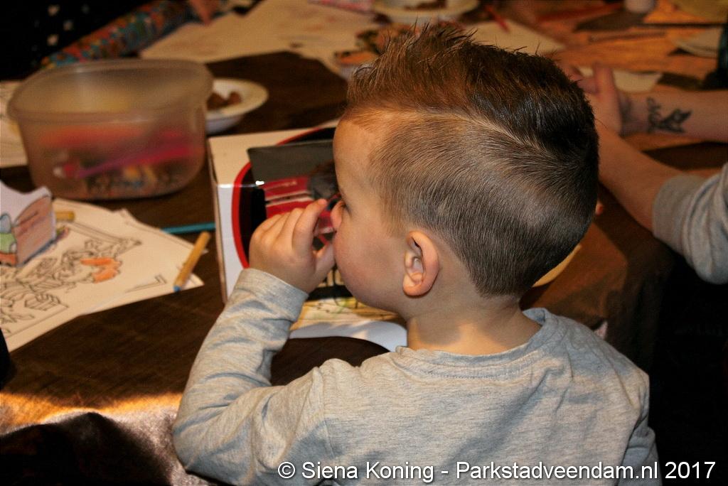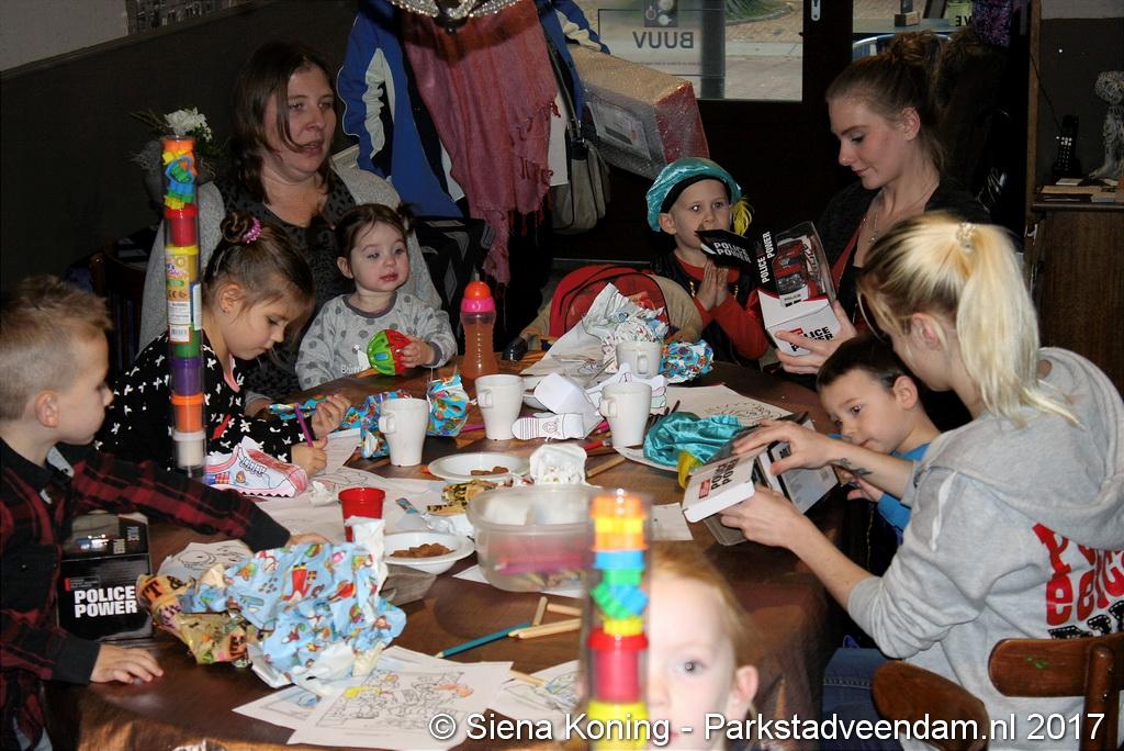 De kinderen konden knutselen, er werd gedanst en de polonaise gelopen, kregen ze allemaal wat lekkers en de Pieten hadden voor alle kids een klein cadeautje meegebracht.