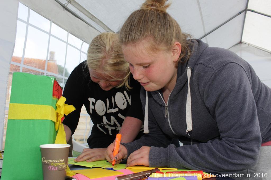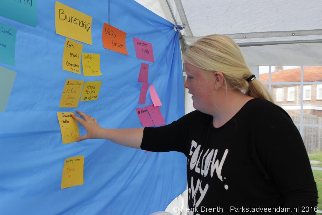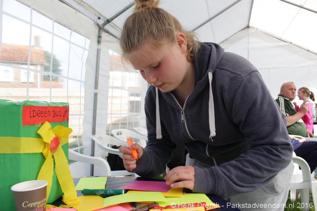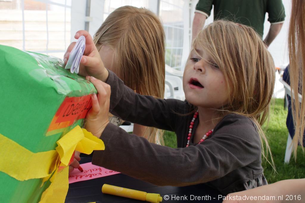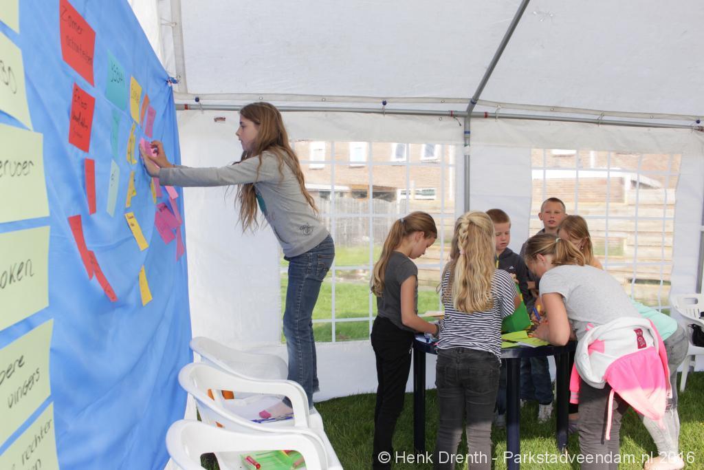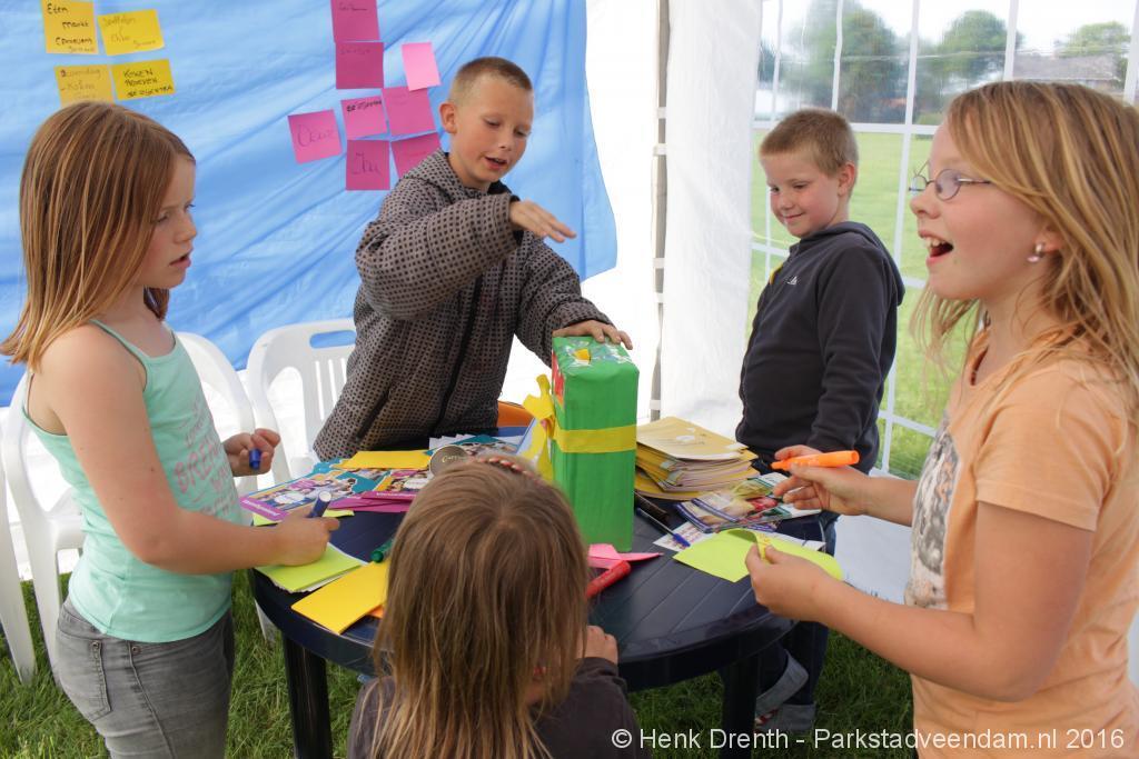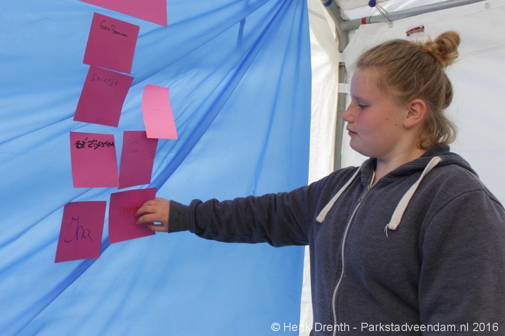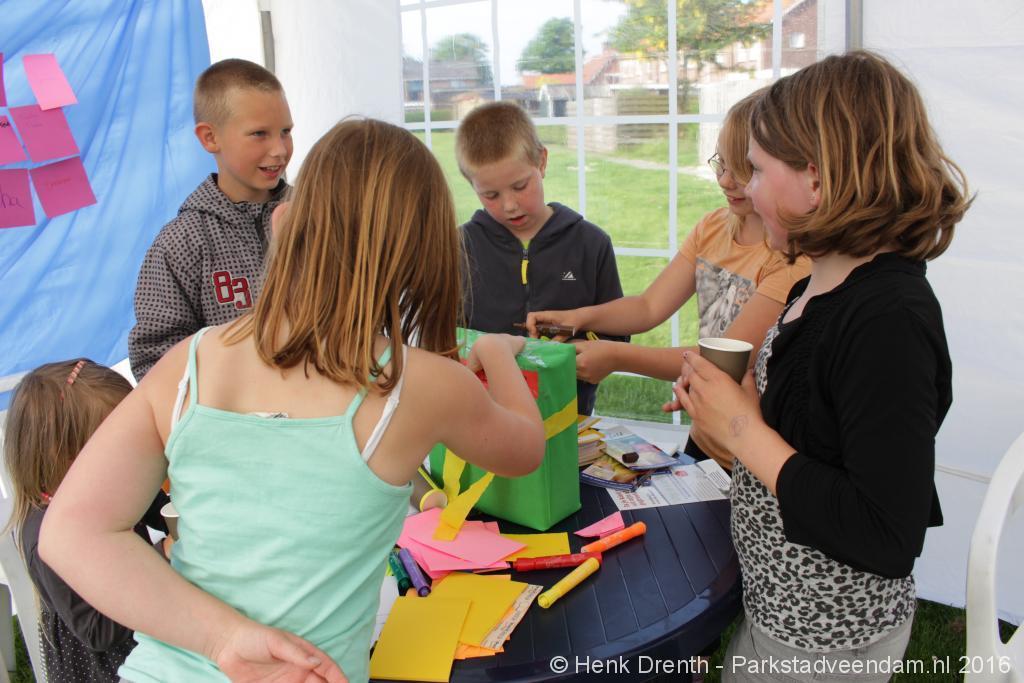 De kinderen vermaakten zich op een luchtkussen, maar de ideeënbus was ook bij hen zeer in trek om allerlei wensen in te dienen. Charel van 6 jaar zou het leuk vinden als er een kinderdisco komt. Een kabelbaantje werd ook veelvuldig genoemd, het vond veel aansluiting. Damian ziet wel wat in een grote familieschommel. Kaylee heeft aangegeven dat ze een danstalent is. Zij zou graag een dansveldje willen zien waar ook workshops kunnen plaatsvinden.