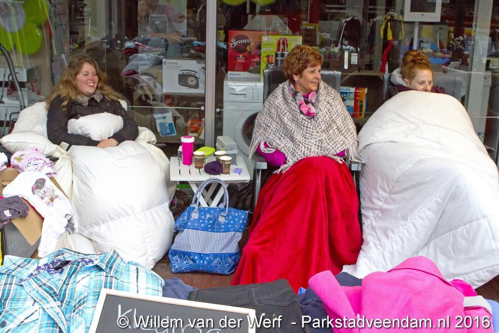 CENTRUM - De meesten kozen eieren voor hun geld, maar toch zaten er in het centrum vanmorgen om 7.00 uur al de diehards met hun koopwaar. Weliswaar warm gekleed en dik ingepakt in een dekbed, maar met warme koffie en een hoop lol wordt de kou en nattigheid al snel vergeten.