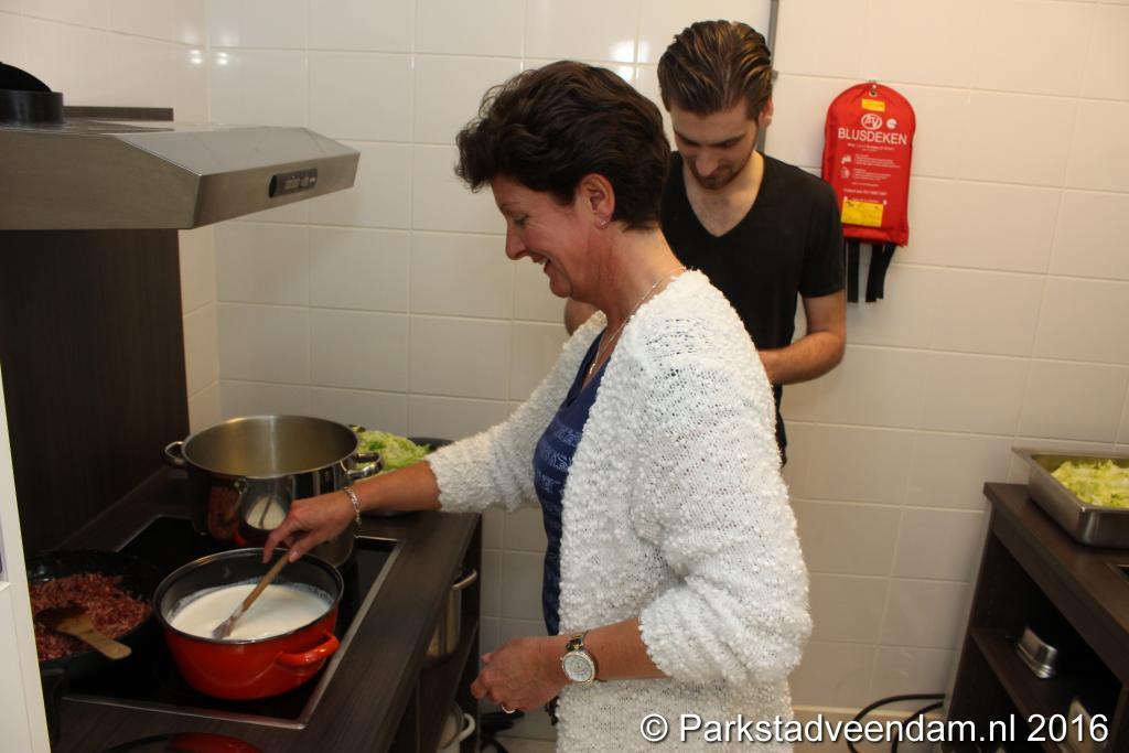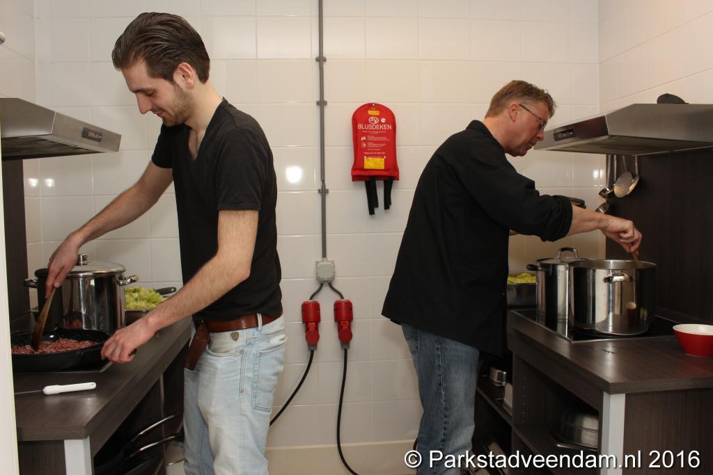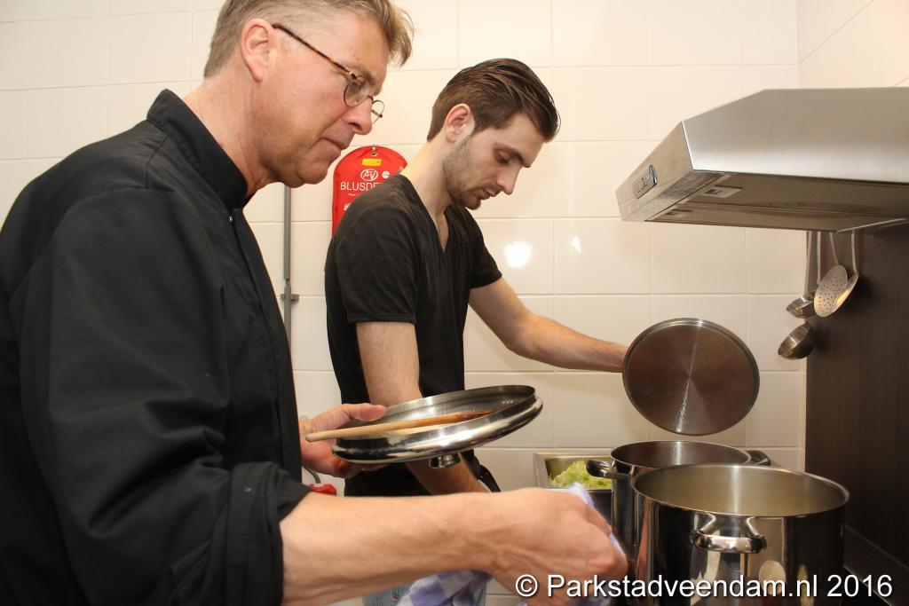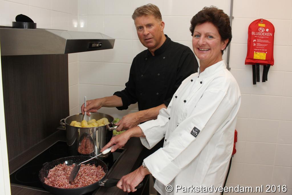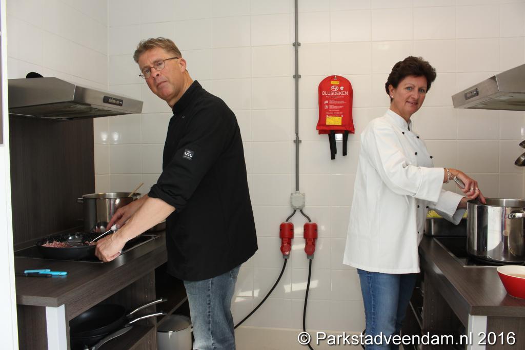 In de keuken staan twee gepassioneerde mensen. Niet alleen voor het koken, maar ook voor de sociale aandacht aan de ander. Bob Alders en Aletta van der Laan staan afwisselend in de keuken hun gerechten te bereidden van vers ingekochte producten. Bob kookt op de maandag voor het middageten en Aletta op de vrijdag voor de avond. De beide koks koken ook gezamenlijk, zoals bij drukte om elkaar bij te springen. Voor bijzondere gelegenheden maken ze samen bijzondere gerechten zoals brunches en voor Pasen en Pinksteren. Voor het kerstdiner wordt alleen voor de vaste groep eters een menu samengesteld. ’s Zomers wordt een BBQ gehouden. Ze vullen elkaar aan en leren ook dingen van elkaar. Zoals ingrediënten in een pasta van Bob dat voor Aletta nog nieuw was.