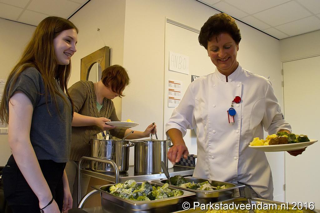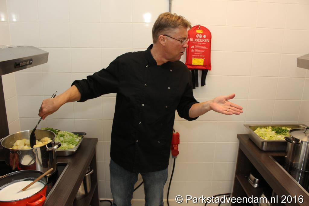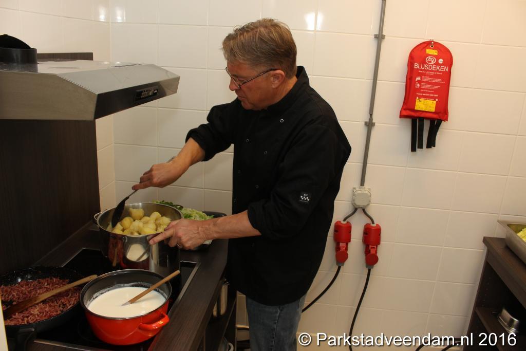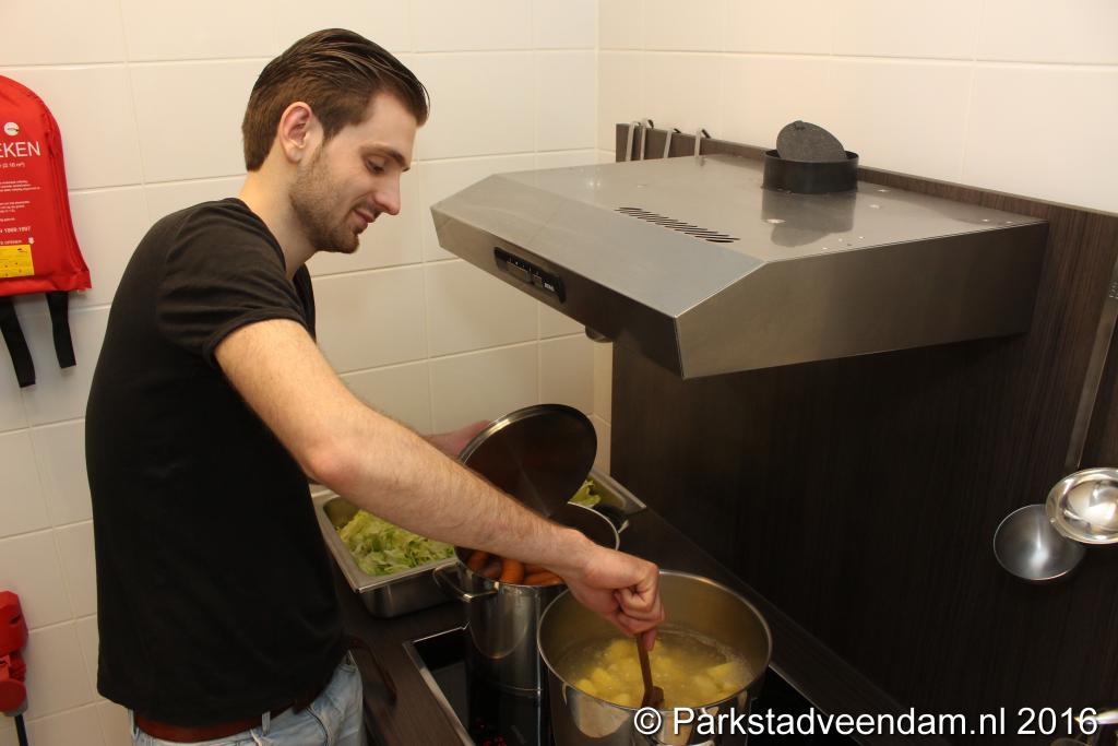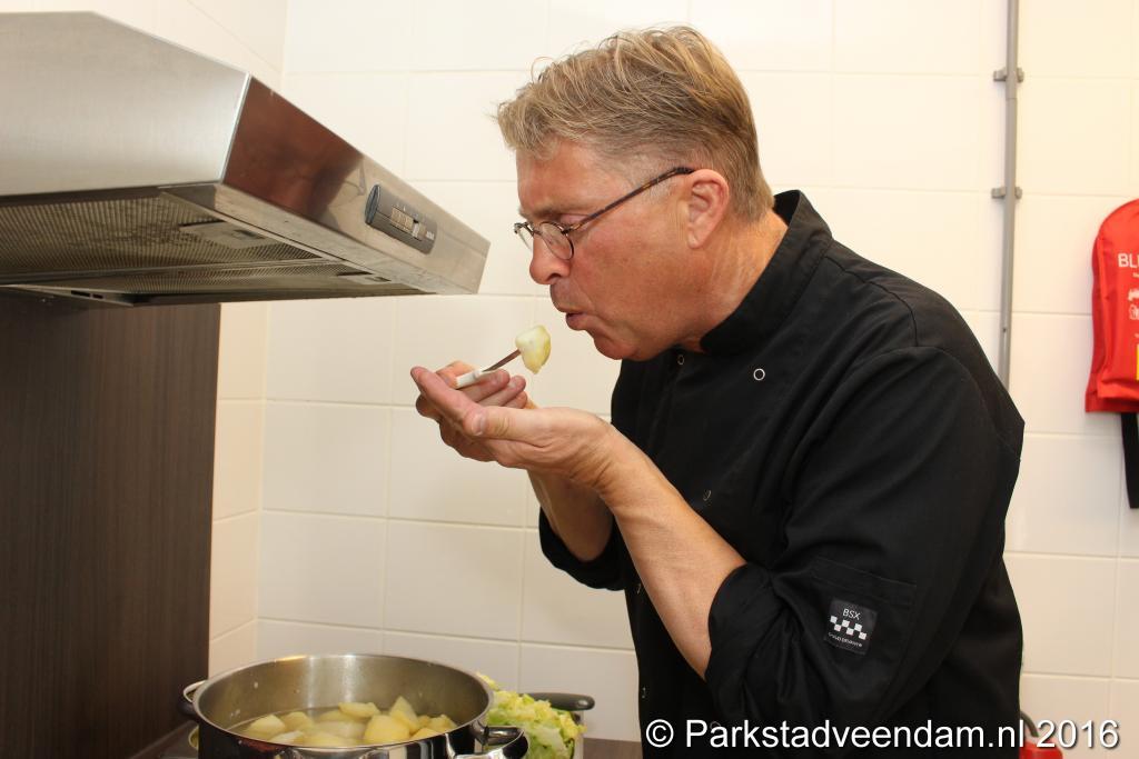 In de keuken staan twee gepassioneerde mensen. Niet alleen voor het koken, maar ook voor de sociale aandacht aan de ander. Bob Alders en Aletta van der Laan staan afwisselend in de keuken hun gerechten te bereidden van vers ingekochte producten. Bob kookt op de maandag voor het middageten en Aletta op de vrijdag voor de avond. De beide koks koken ook gezamenlijk, zoals bij drukte om elkaar bij te springen. Voor bijzondere gelegenheden maken ze samen bijzondere gerechten zoals brunches en voor Pasen en Pinksteren. Voor het kerstdiner wordt alleen voor de vaste groep eters een menu samengesteld. ’s Zomers wordt een BBQ gehouden. Ze vullen elkaar aan en leren ook dingen van elkaar. Zoals ingrediënten in een pasta van Bob dat voor Aletta nog nieuw was.