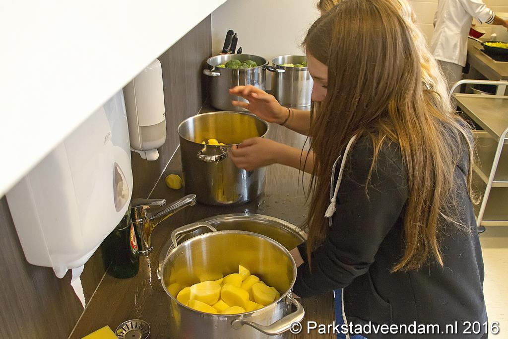 De koks worden bijgestaan door stagiairs en vrijwilligers. Ook zo’n mooie mogelijkheid bij het eetcafé van Compaen. Stagiair Lennard doet een training shift voor de HBO verpleegkunde, maar is bij Compaen stage gaan lopen. Koken heeft ook zijn interesse, en staat sinds zijn 12e al in de keuken. ’s Avonds werkt hij in de horecakeuken. Stagiair Christiaan wil definitief de horecakeuken in. Hij wil kijken hoe het werkt en alvast wat snelheid opdoen. Het is leuk en dankbaar werk bij het Eetcafé. Shirley heeft voor haar stage al anderhalf jaar meegelopen en is al klaar. Maar als vrijwilligster is ze gebleven omdat ze het zo gezellig vindt. De vrijwilligers en stagiairs eten zelf ook mee.