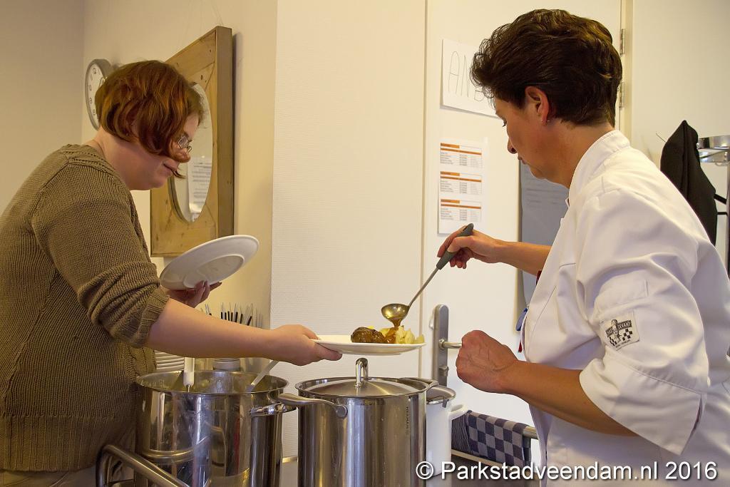 Aletta van der Laan is helemaal op haar plek bij het Eetcafé Veendam, het is echt haar ding. Ze kan haar hobby en passie erin kwijt. Aletta was via Break! bijna twee jaar geleden bij het eetcafé terechtgekomen en voelt zich er super op haar gemak. Ze komt er niet alleen om te koken, maar ook voor de contacten en een stukje saamhorigheid. Soms is er iemand die even extra aandacht nodig heeft. En even een arm op de schouder. Een klein gebaar, maar met heel veel waarde.