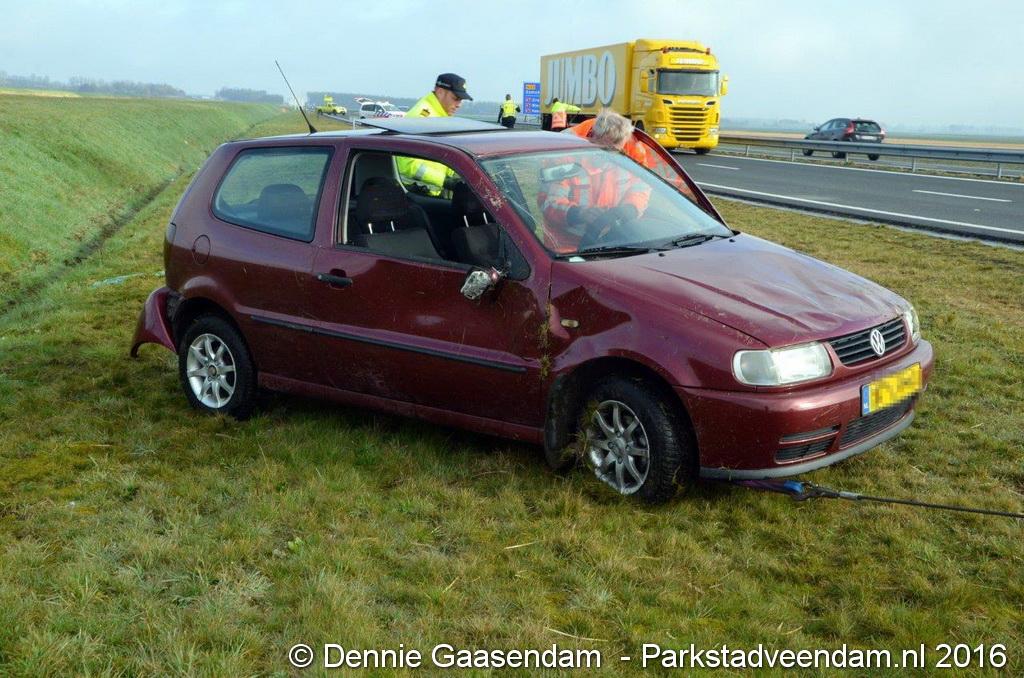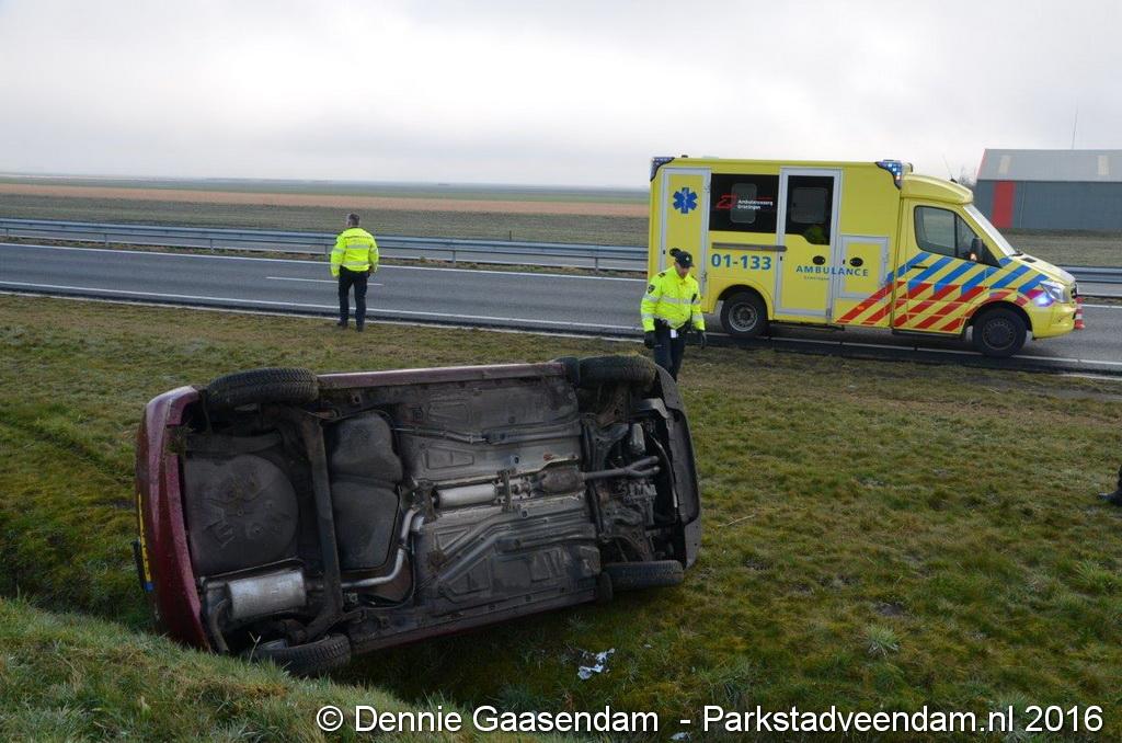 De bestuurster raakte door nog onbekende oorzaak met de wielen in de berm. Ze probeerde met een stuurcorrectie de wagen op de weg te houden. De bestuurster kwam alsnog in de berm en sloeg over de kop. Het slachtoffer is door omstanders uit haar voertuig gehaald. Ze is met onbekende verwondingen overgebracht naar het ziekenhuis in Winschoten. Een rijbaan is afgesloten geweest. De auto is door een berger afgesleept.