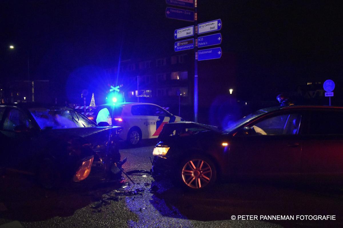 Op de kruising van  Stolbergweg-Industrieweg in Veendam heeft zich zaterdagavond omstreeks 20.45 uur een forse botsing tussen 2 personenauto's voorgedaan.