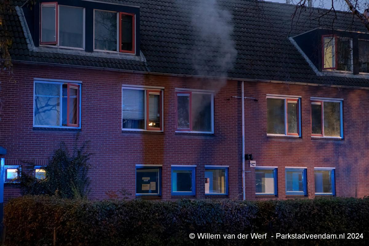 We voeren momenteel een binnenaanval uit. Alle bewoners van de woning en omliggende portiekwoningen hebben hun woning op tijd kunnen verlaten door het afgaan van een rookmelder.