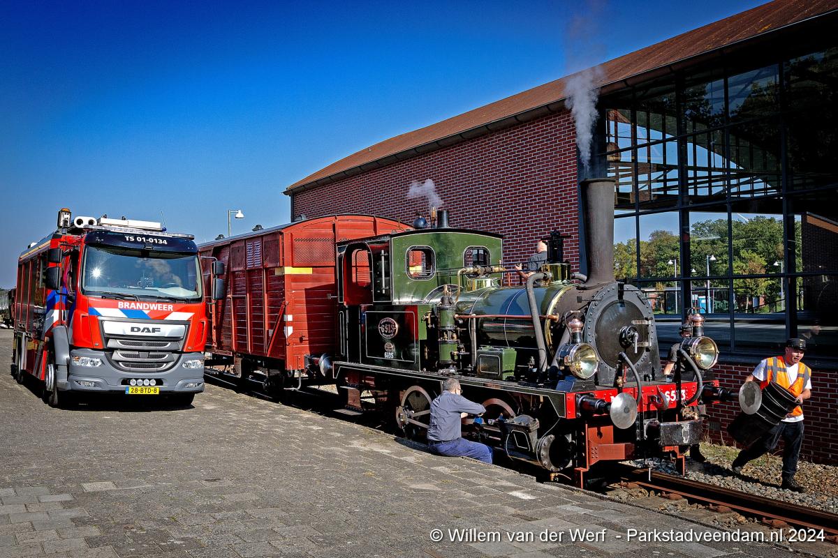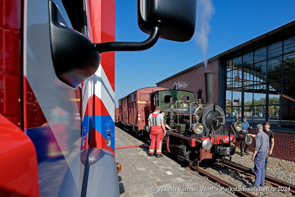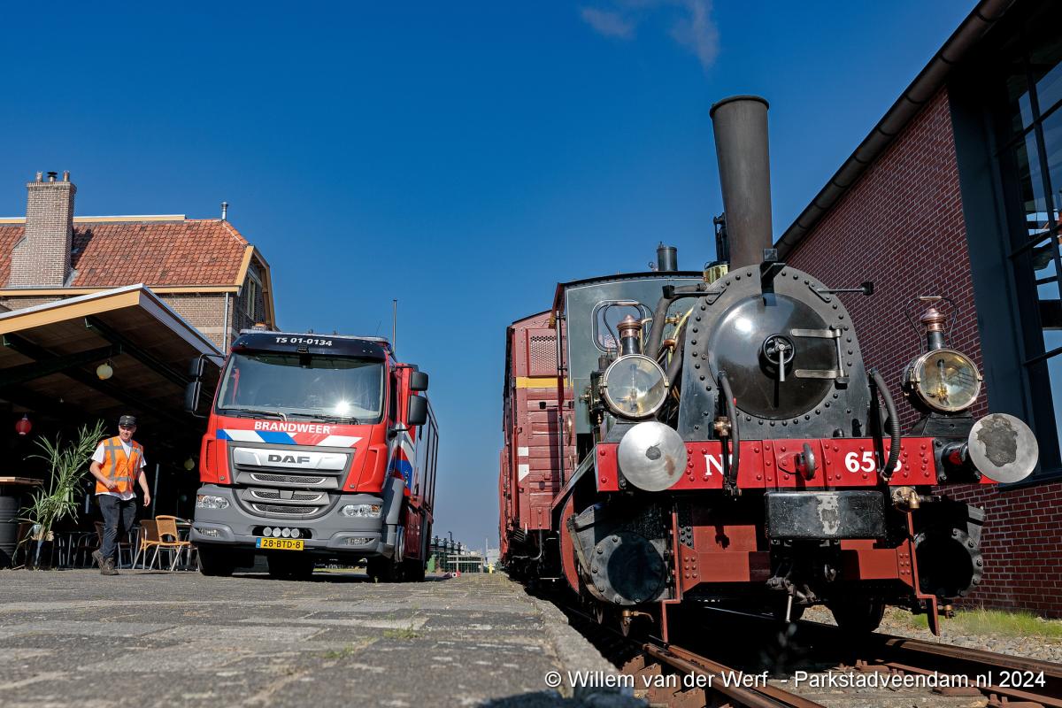 Echter moest de stoomlocomotief wel bijgevuld worden met water en kolen voor de terugreis naar Stadskanaal. Uiteraard boden de vrijwilligers van brandweer Veendam de helpende hand en kwam met een autowatertank ter plaatse om het nodige water bij te vullen.