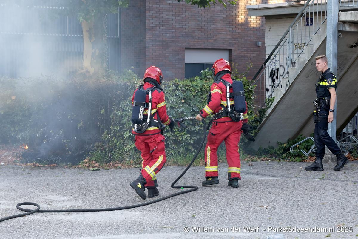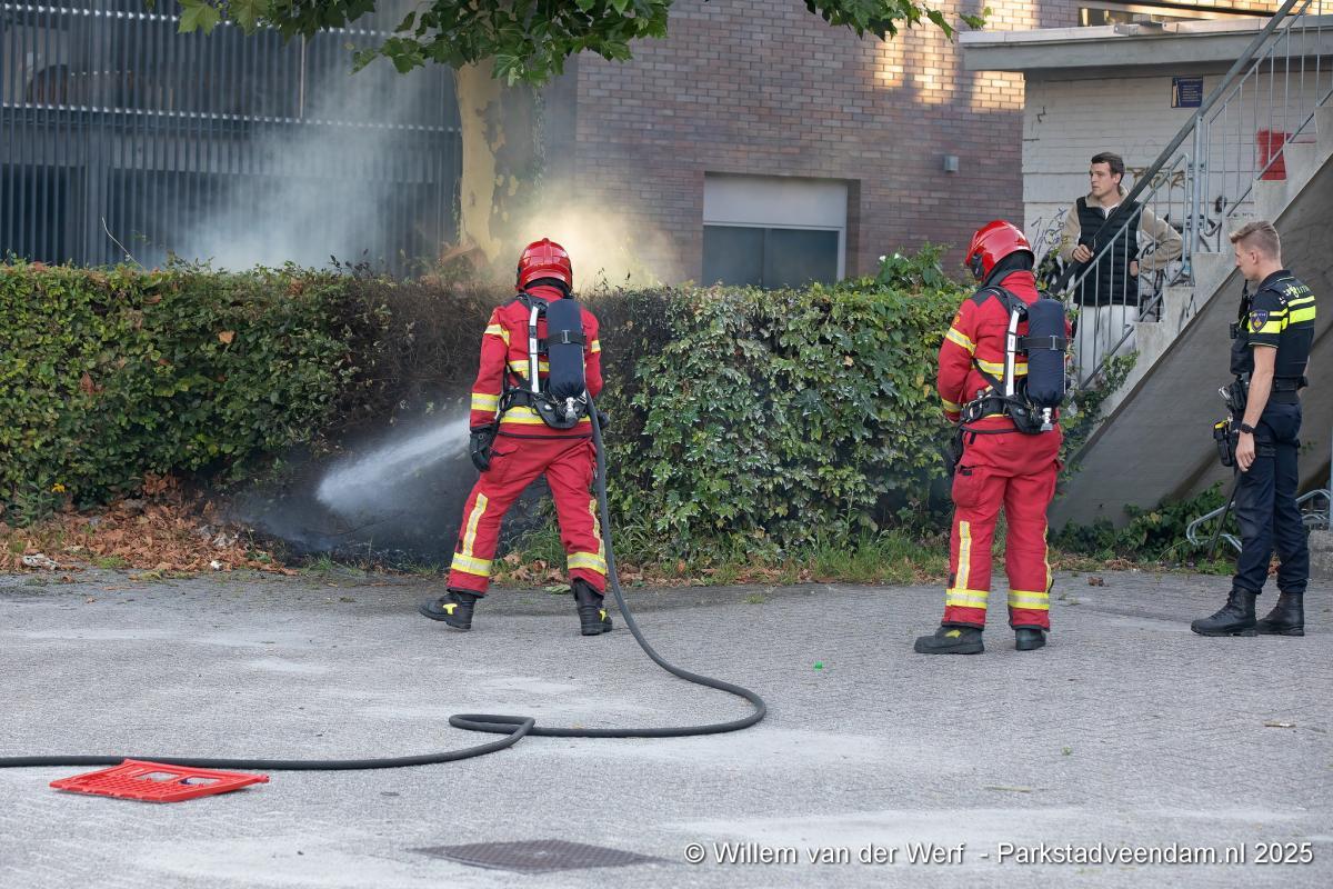 Met behulp van de blusmonitor op de SB (water zonder schuim) werden de laatste resten afgeblust.