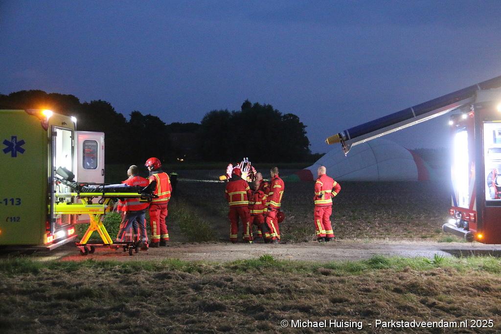 Een persoon is door de brandweer in samenwerking met de ambulance gestabiliseerd nabij de mand van de luchtballon en werd vervolgens naar de ambulance gedragen. Deze persoon is met onbekend letsel vervoerd naar het ziekenhuis.
