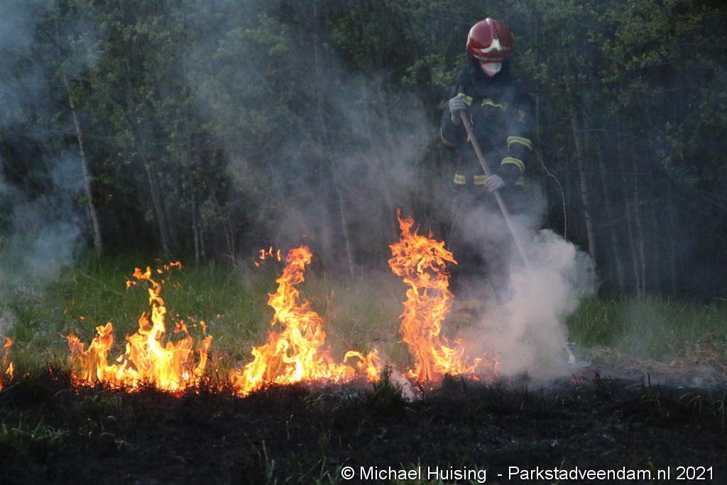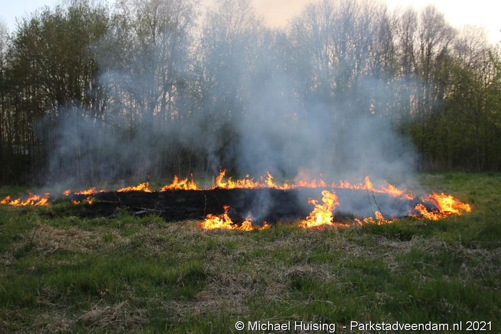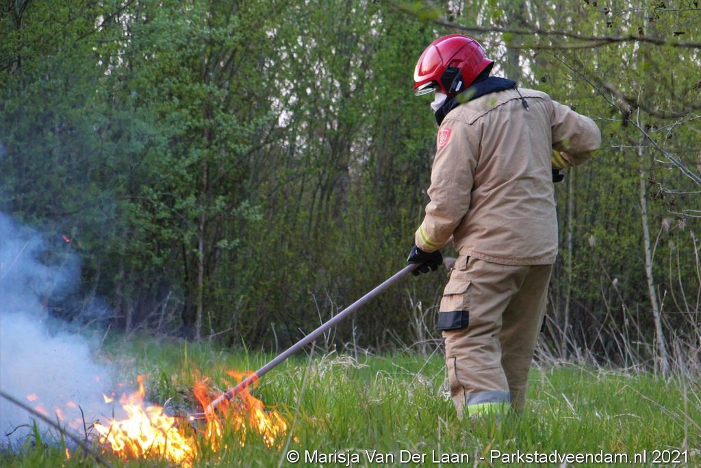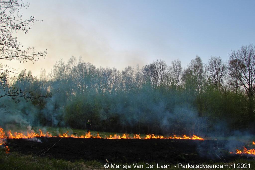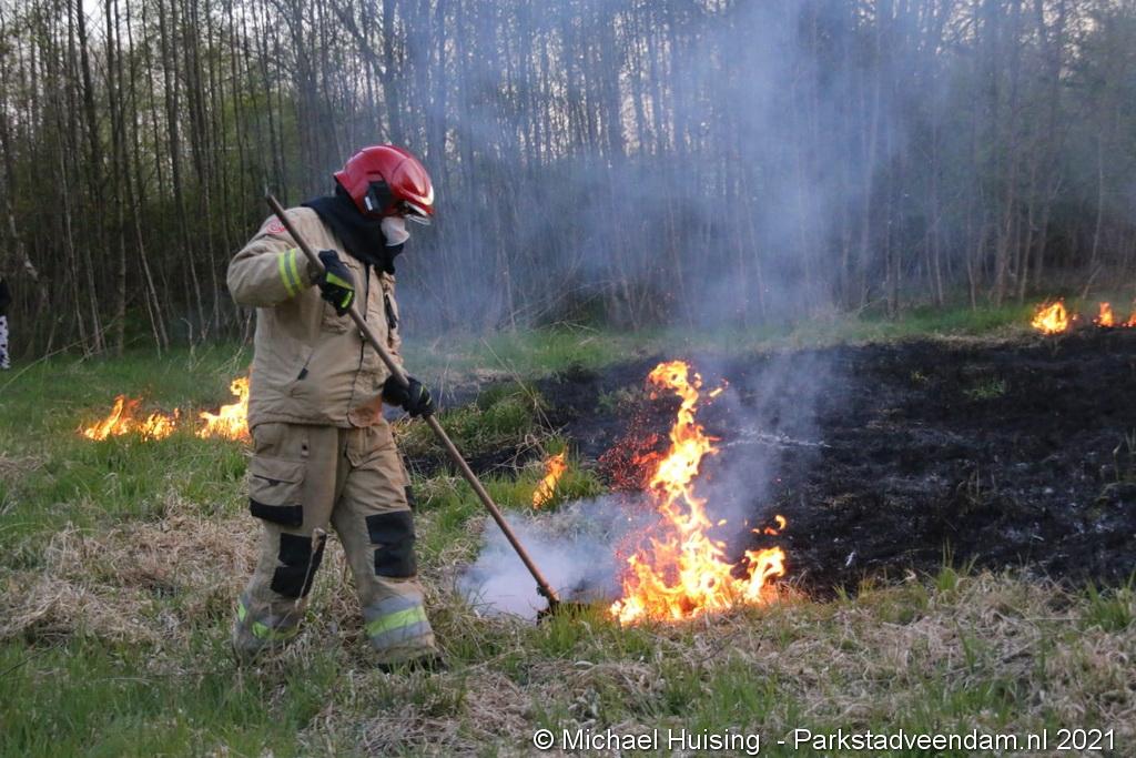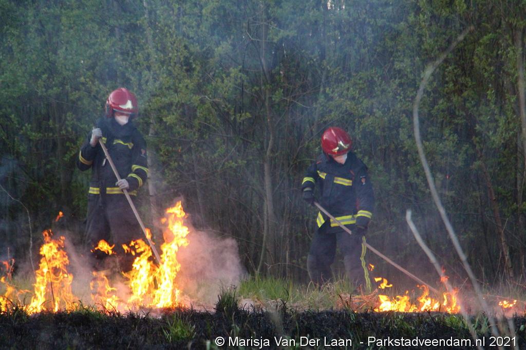 De brandweer van Veendam werd dinsdagavond rond 20:30 uur met spoed gealarmeerd voor een berm-/bosschage brand aan de Greidhoek in Wildervank. Bij aankomt bleek een groot stuk braakliggend terrein in brand te staan.