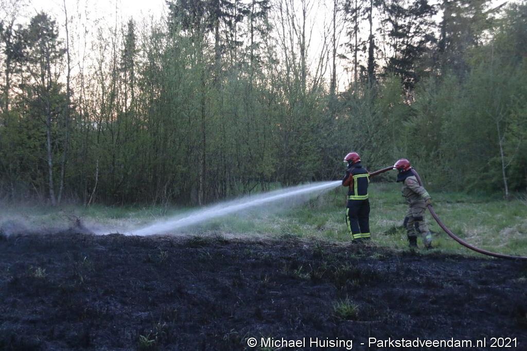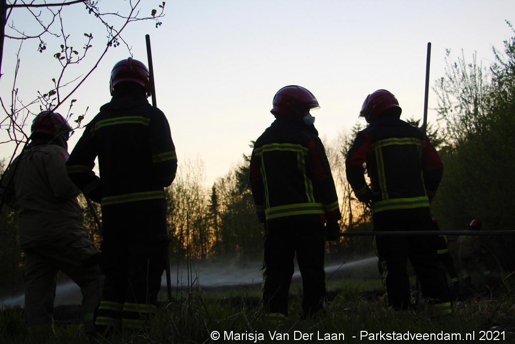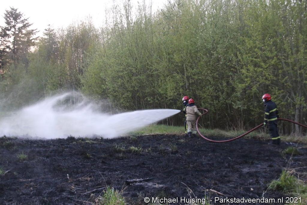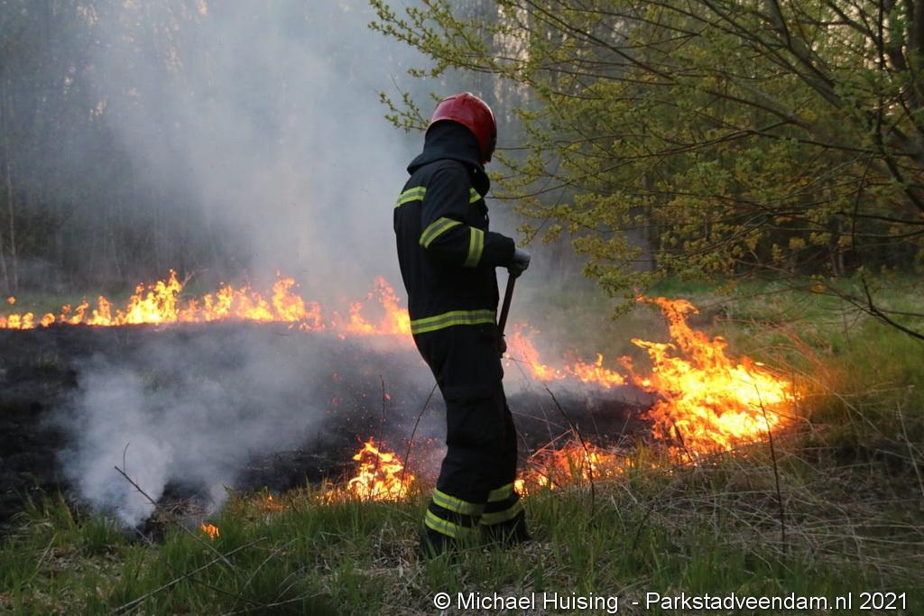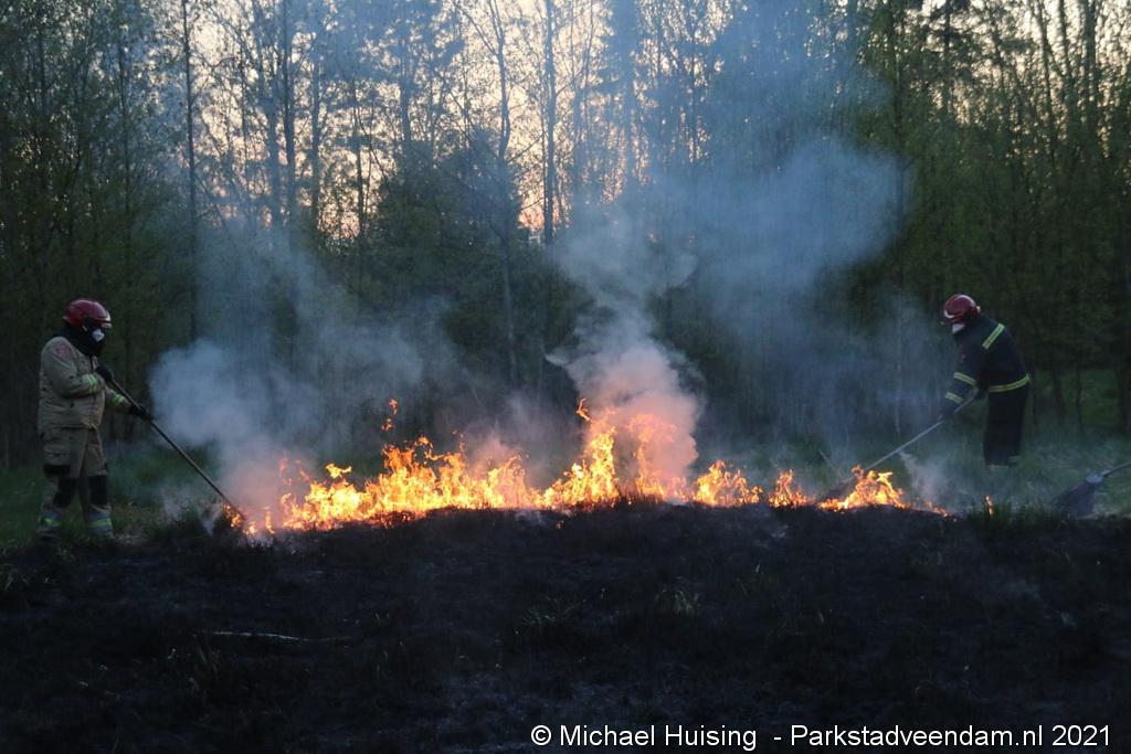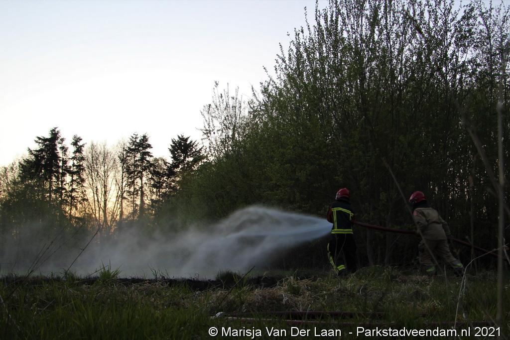 De brandweer van Veendam werd dinsdagavond rond 20:30 uur met spoed gealarmeerd voor een berm-/bosschage brand aan de Greidhoek in Wildervank. Bij aankomt bleek een groot stuk braakliggend terrein in brand te staan.