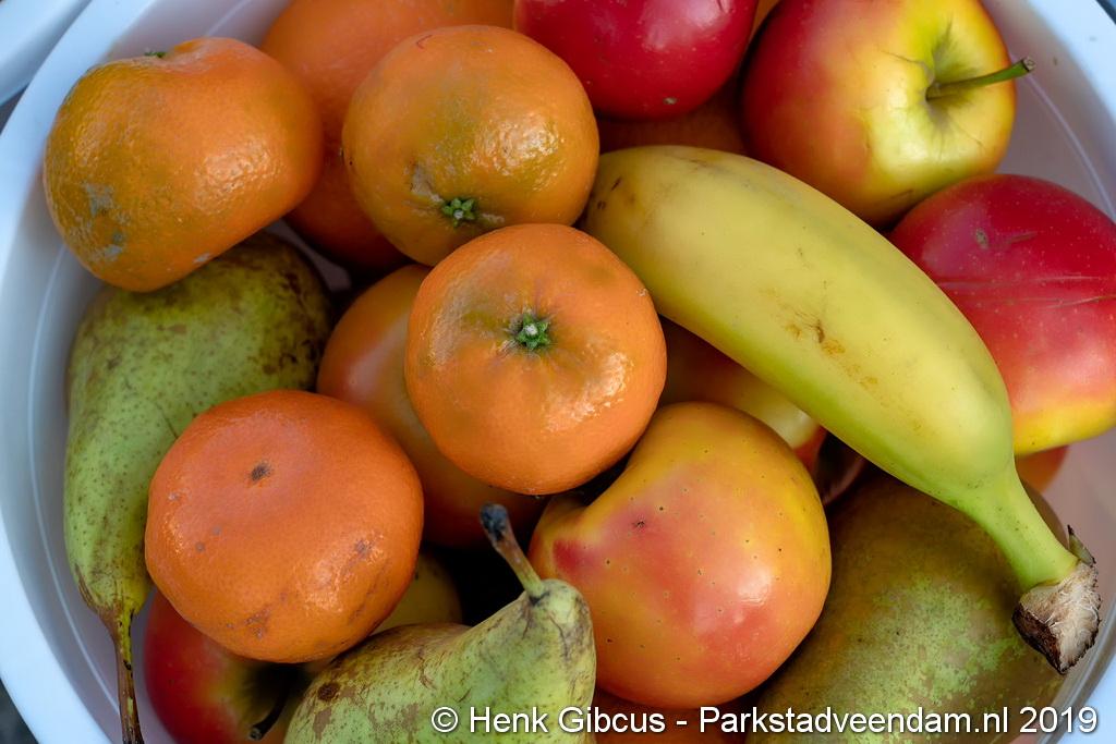 Er zijn verschillende pakketten te koop. Een groot pakket en een mixpakket doen € 10,00 een kleine € 5,00 en een fruitpakket wisselt van eigenaar voor € 7,50. Dan zijn er nog grote en kleine fruitemmers /emmer stoofperen resp. € 5,00 en € 3,50. We zijn er nog niet! Aardappels, gesneden groenten, los fruit en losse groenten, noten en vlees zoals kipfilets, kippenpoten, hele kip, kiprollade, varkensrollade, verse wordt e.d. “De pakketten zijn toch wel het populairst” glimlacht Femke. Alles goed en wel, maar wat zit er nu in zo’n pakket? Dit varieert natuurlijk van het seizoen en het aanbod. We zullen een voorbeeld geven van een mixpakket in de week van 6 juni.