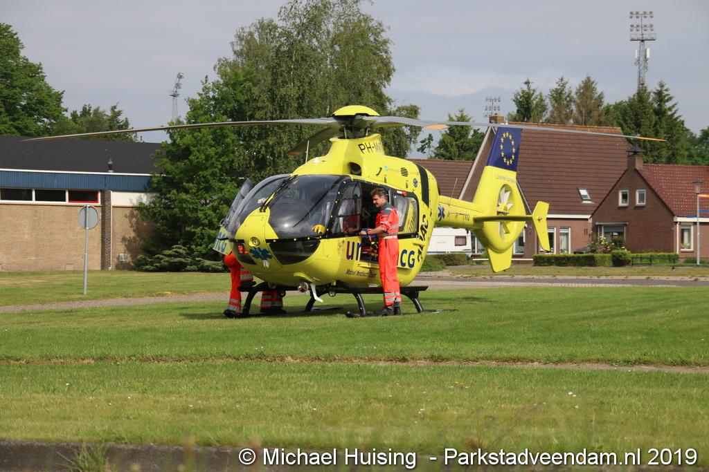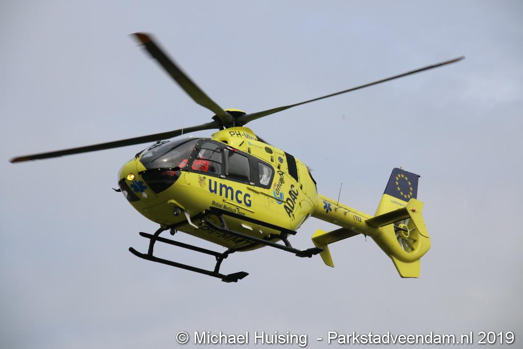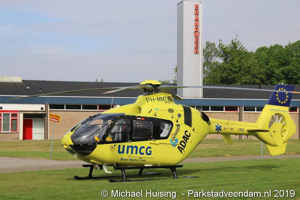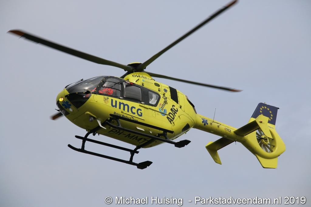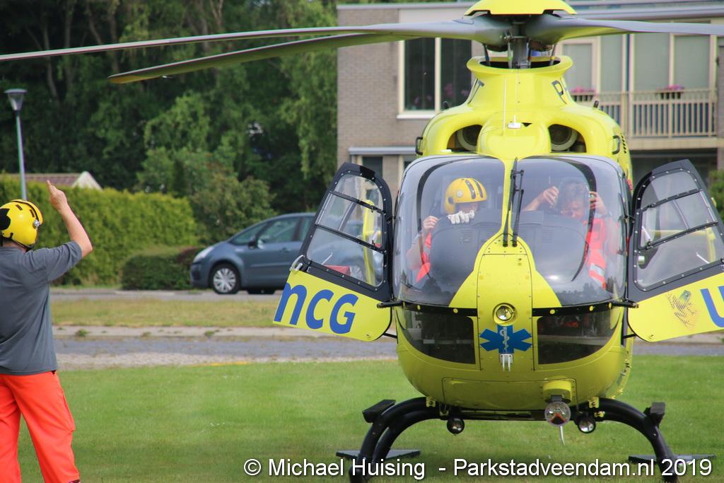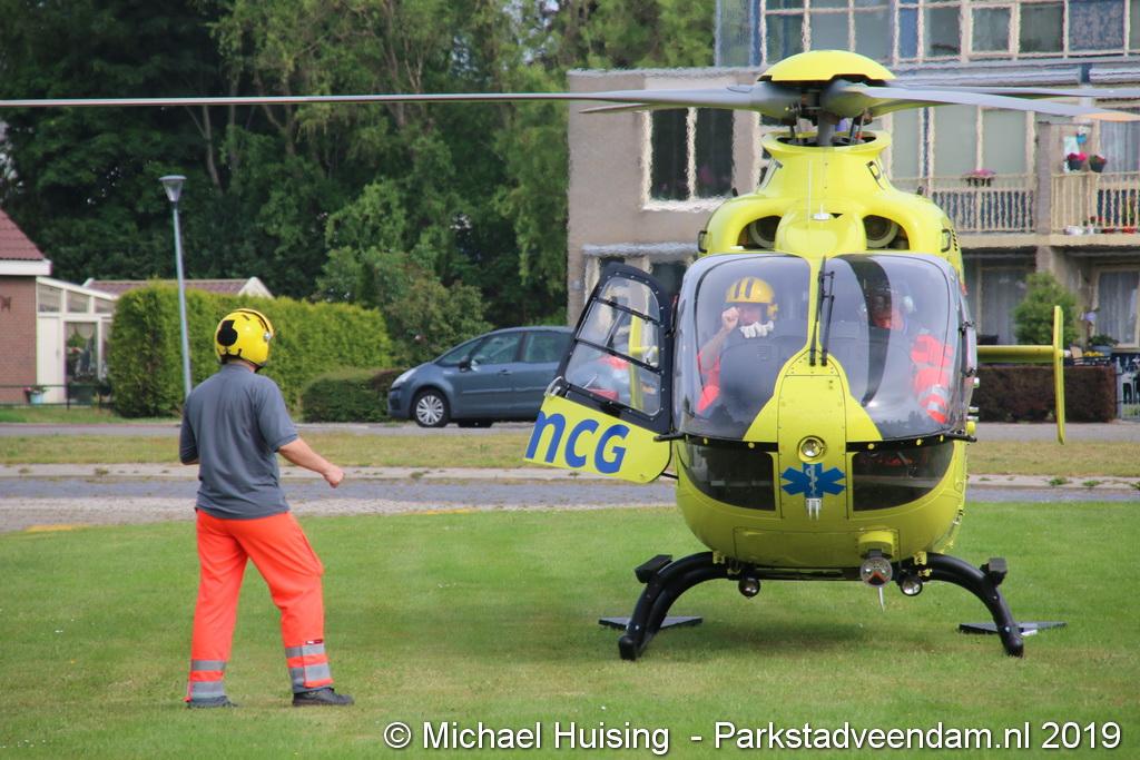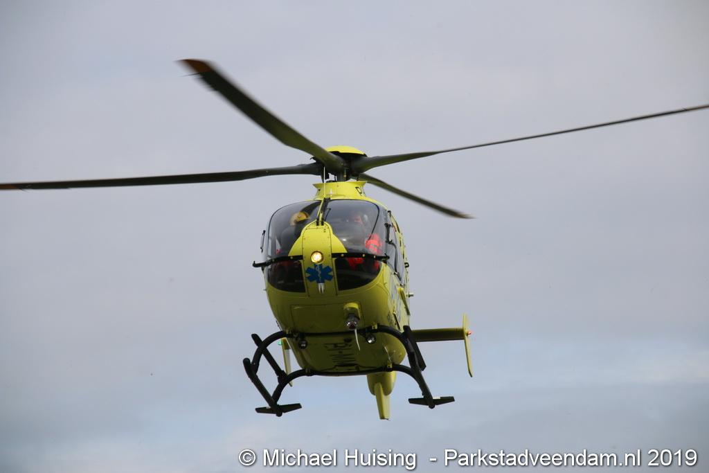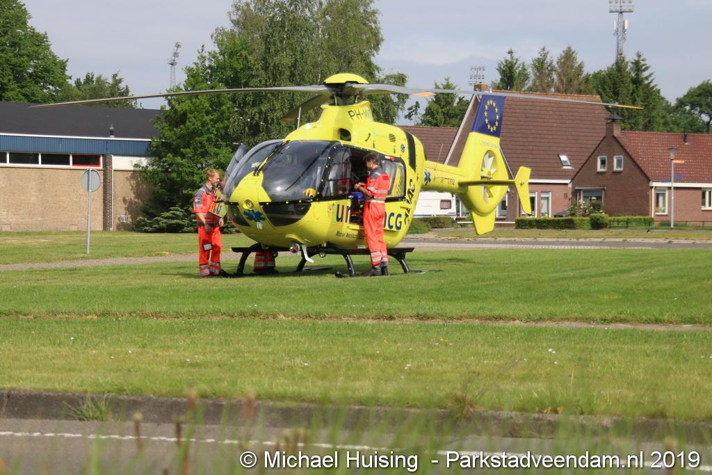 De Lifeliner 4 landde op het grasveld achter de brandweerkazerne. Een persoon werd met spoed naar het ziekenhuis vervoerd.