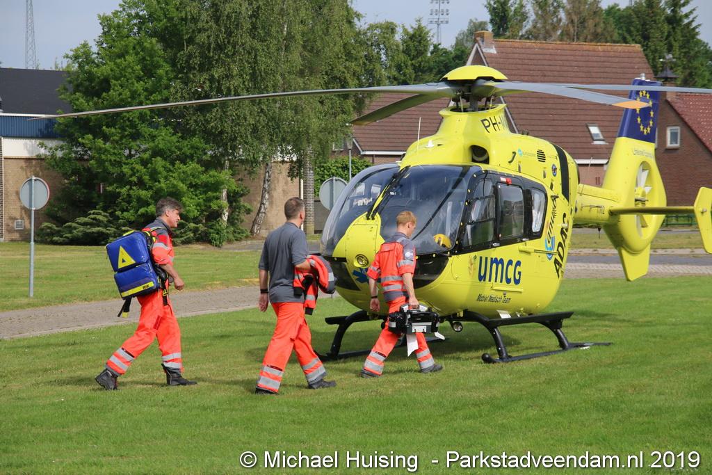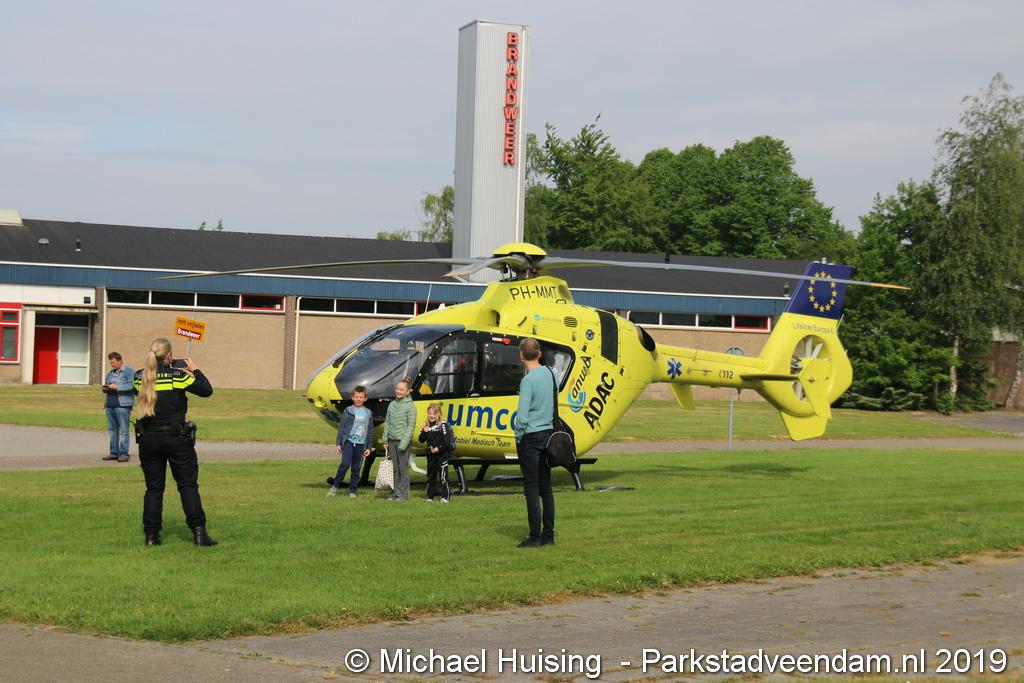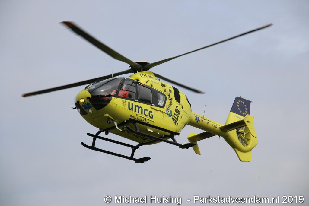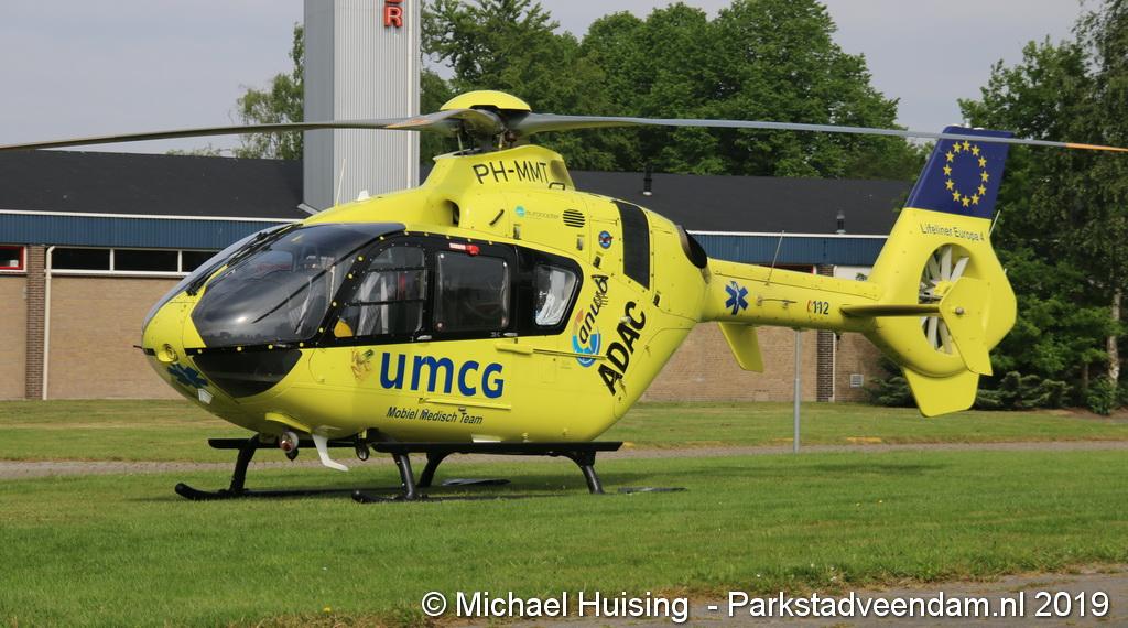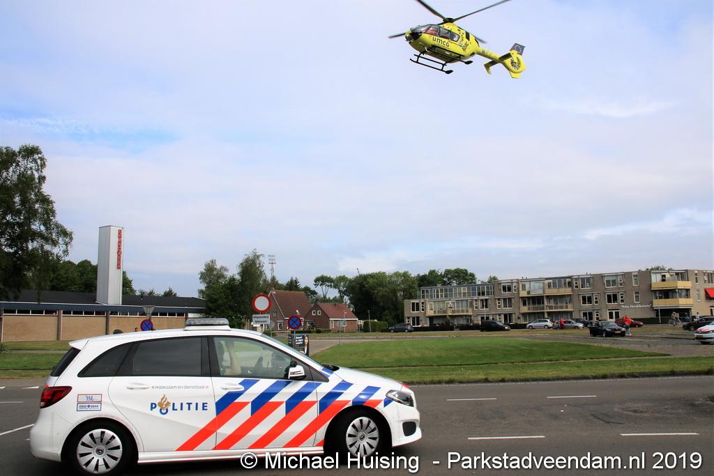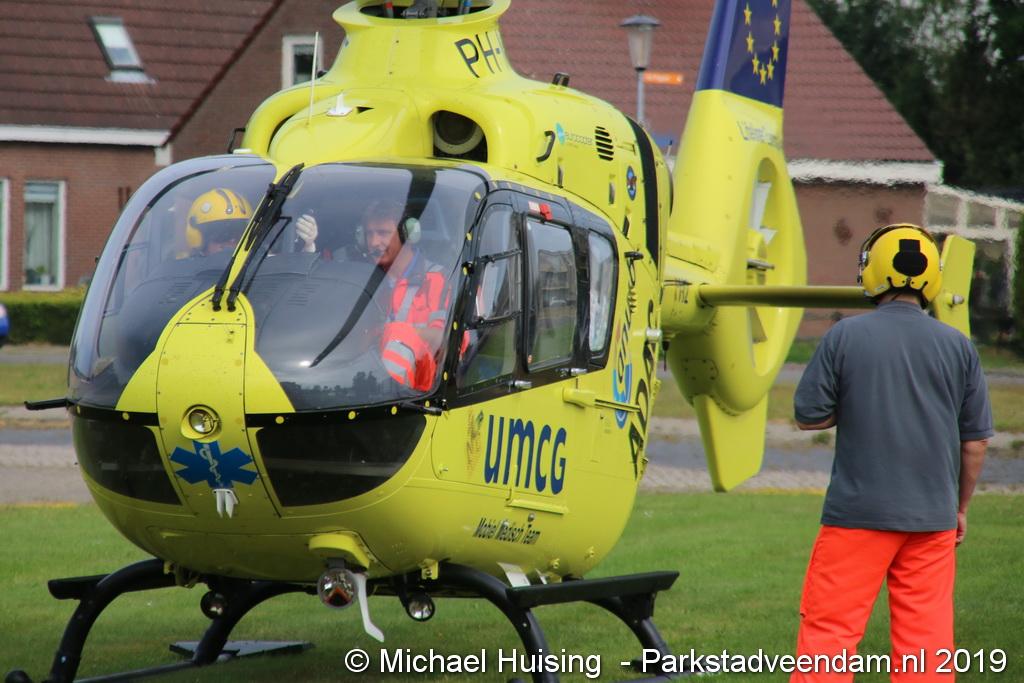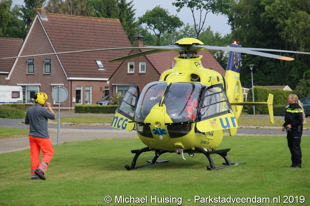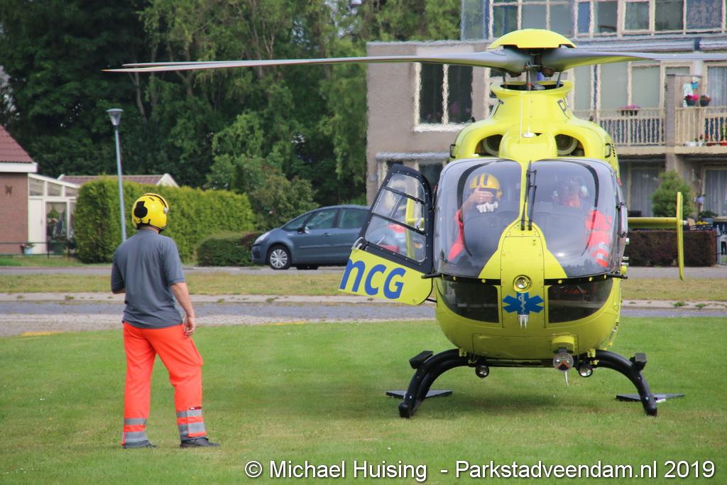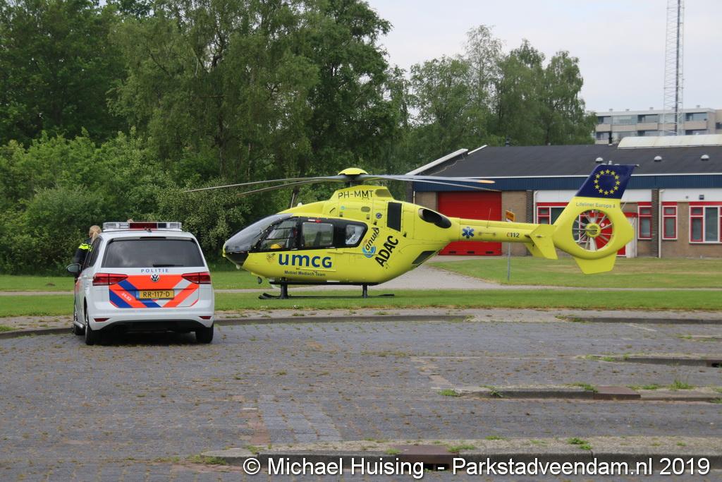 De Lifeliner 4 landde op het grasveld achter de brandweerkazerne. Een persoon werd met spoed naar het ziekenhuis vervoerd.