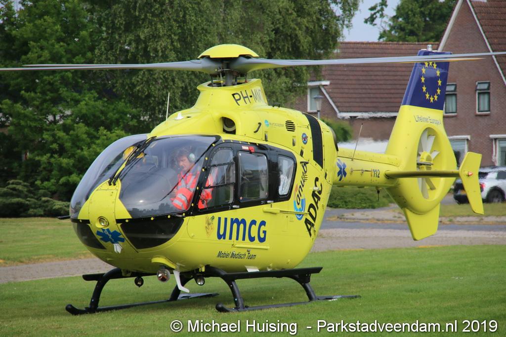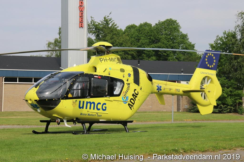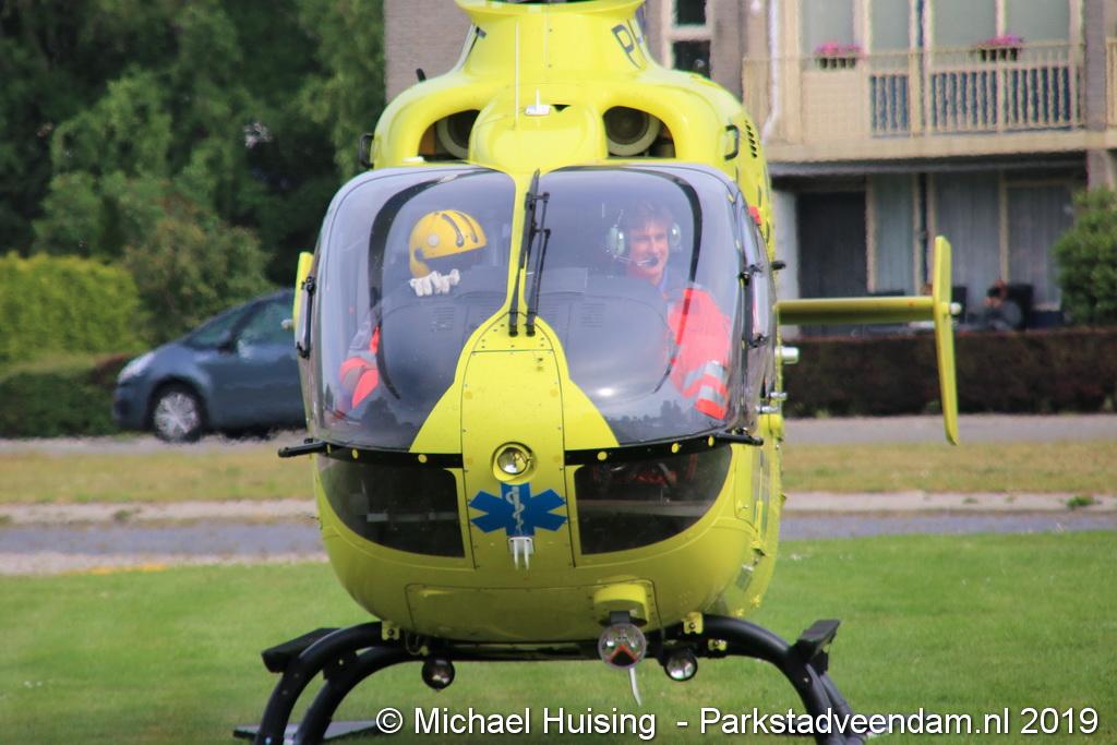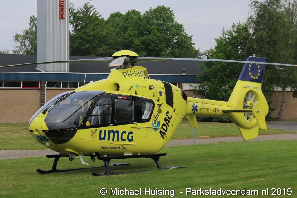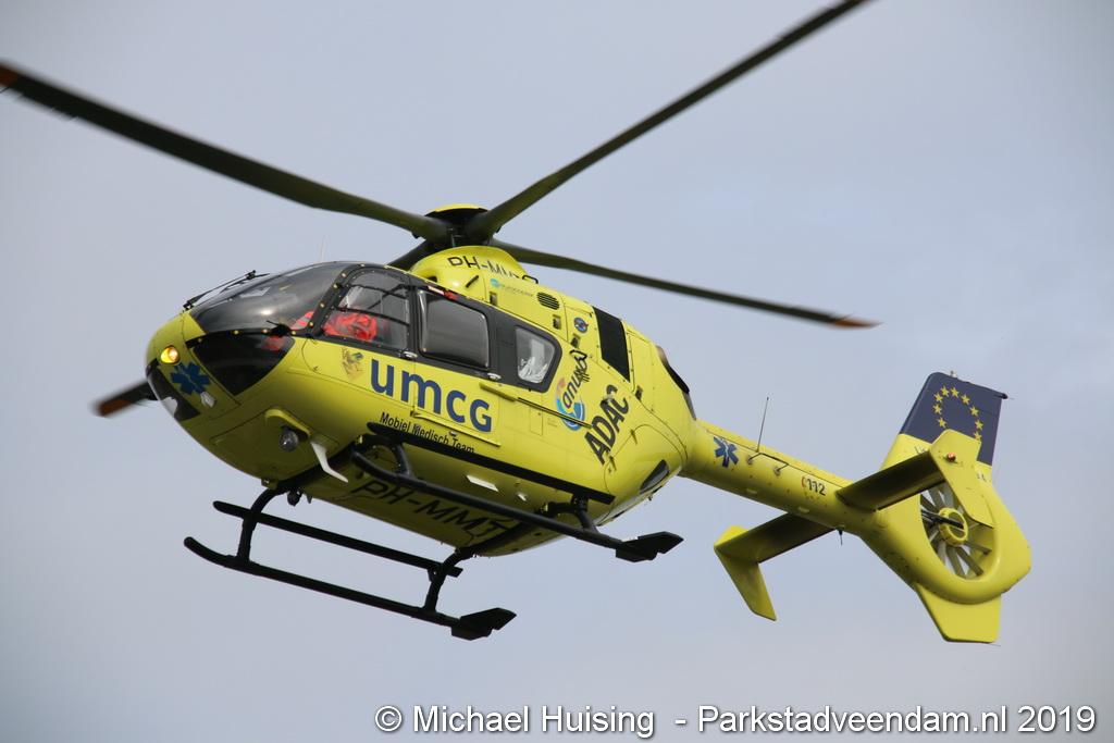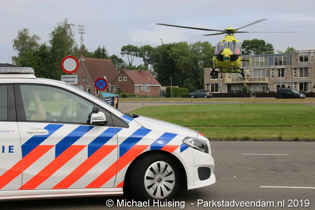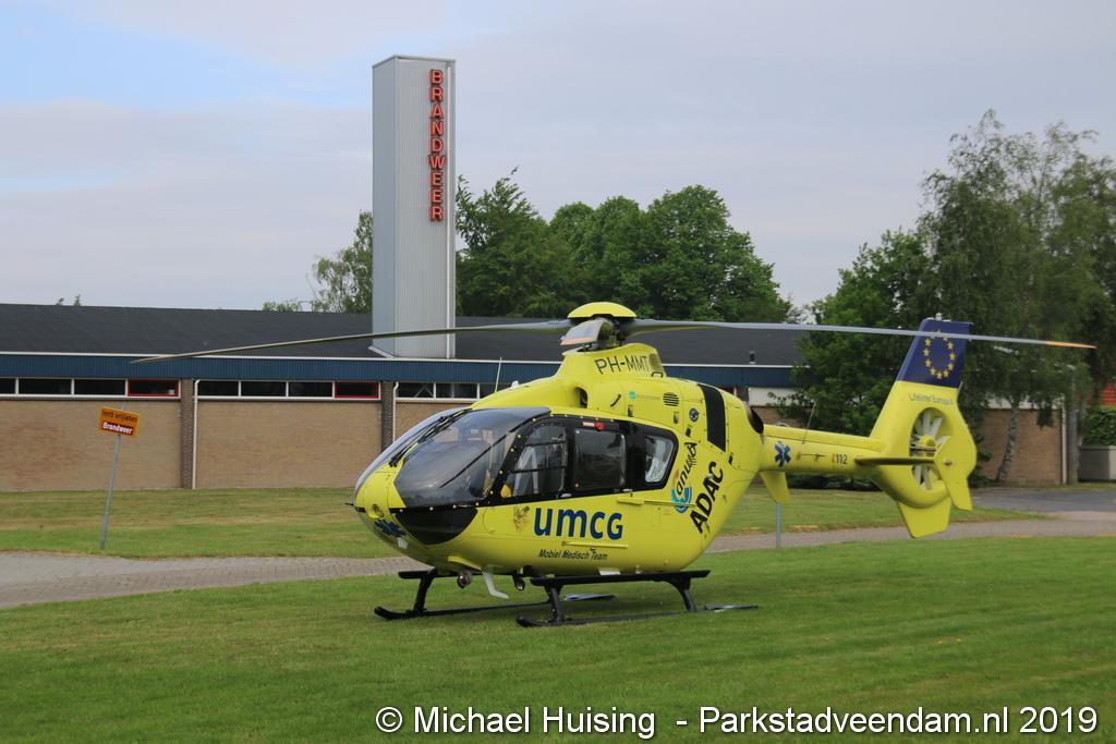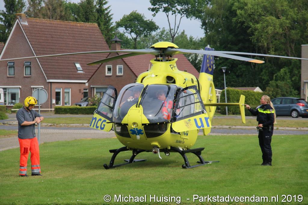 De Lifeliner 4 landde op het grasveld achter de brandweerkazerne. Een persoon werd met spoed naar het ziekenhuis vervoerd.