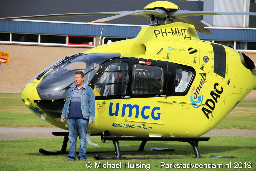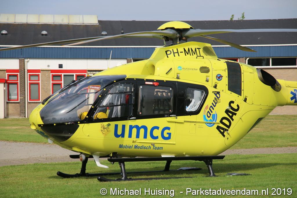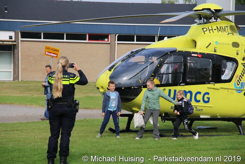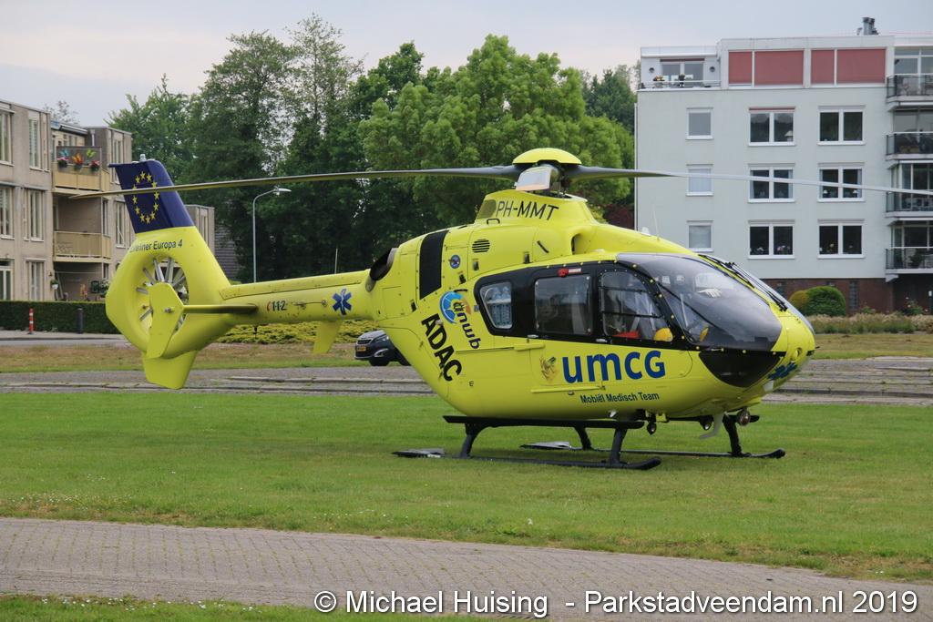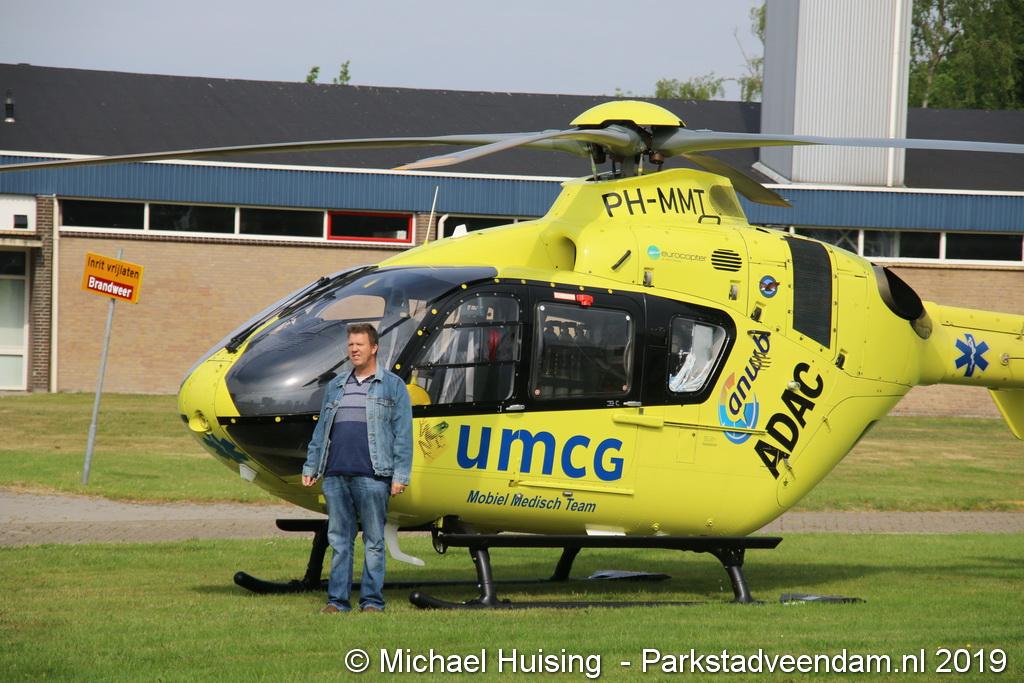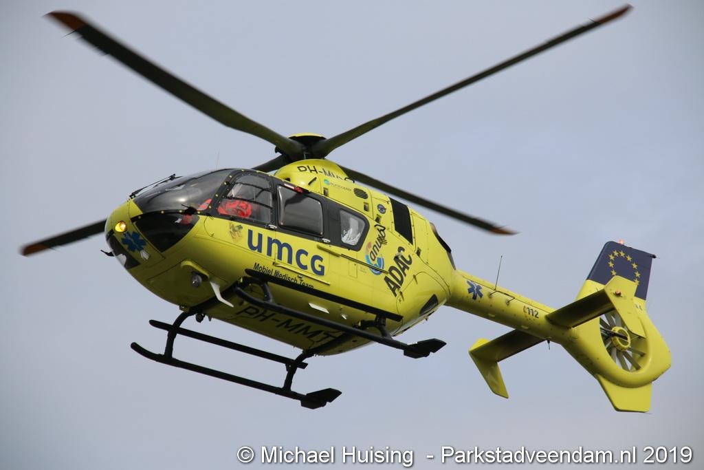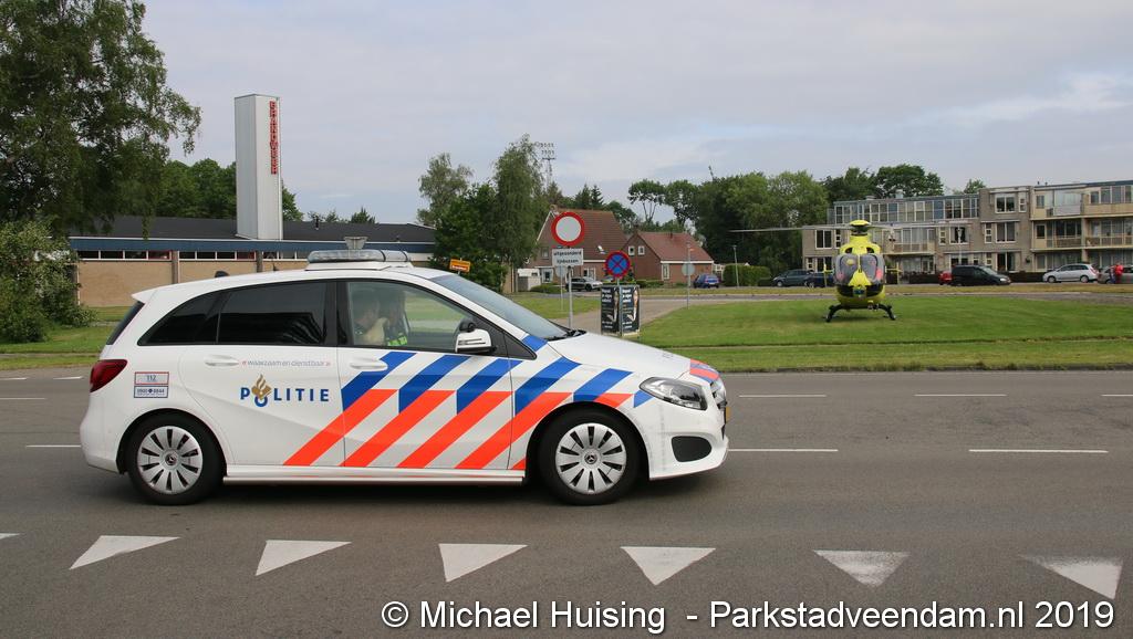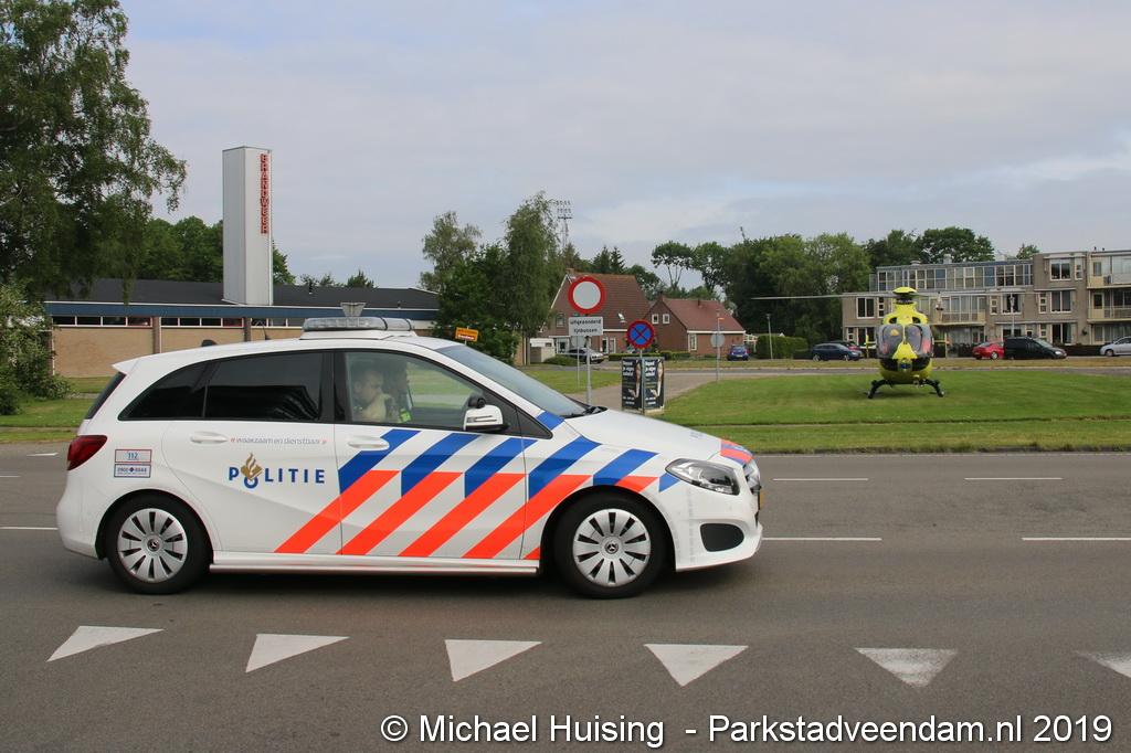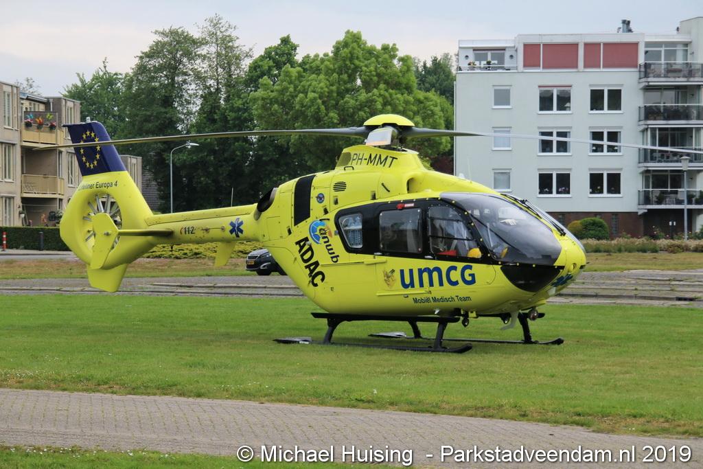 De Lifeliner 4 landde op het grasveld achter de brandweerkazerne. Een persoon werd met spoed naar het ziekenhuis vervoerd.