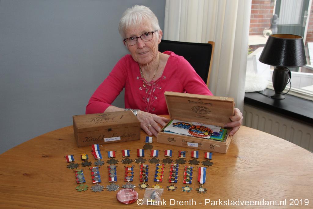 Het wandelen vindt ze heel leuk. Met een muziekje erbij. In één oortje, want ze wil zich ook niet afsluiten. “Ik voel me er lekker onder.” Alle medailles zijn bewaard.