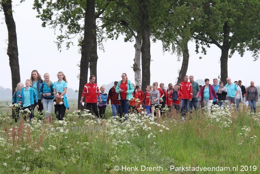 Aaltje Kalsbeek-Korst (70) loopt al voor de vijftigste keer met de 10 kilometer van de avondvierdaagse mee. Als kind liep ze als lid van de atletiekvereniging Clias de avondvierdaagse. Later was ze in Wildervank met haar toen nog schoolgaande kinderen mee gaan lopen met de 5 kilometer van de avondvierdaagse in Wildervank. Met haar man  woont ze al 40 jaar in Veendam. En ook in Veendam doet Aaltje aan de avondvierdaagse mee. Hun zoon en dochter zaten nog op De Werf (nu De Viermaster). Waar haar kleindochter ook naar school ging. En liep oma Aaltje ook met haar de avondvierdaagse.