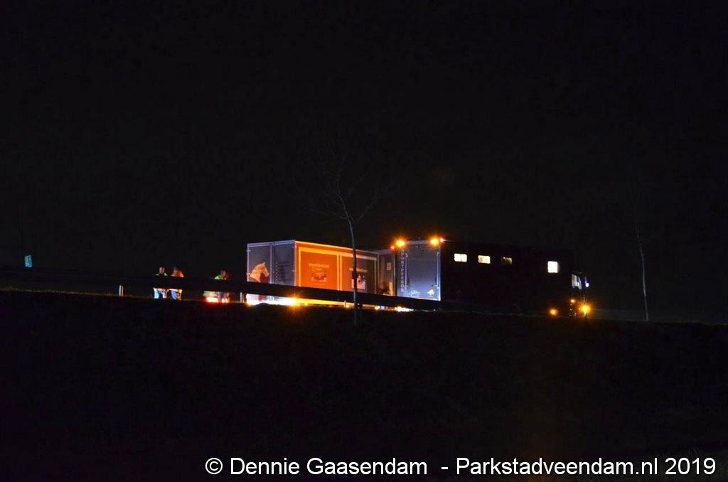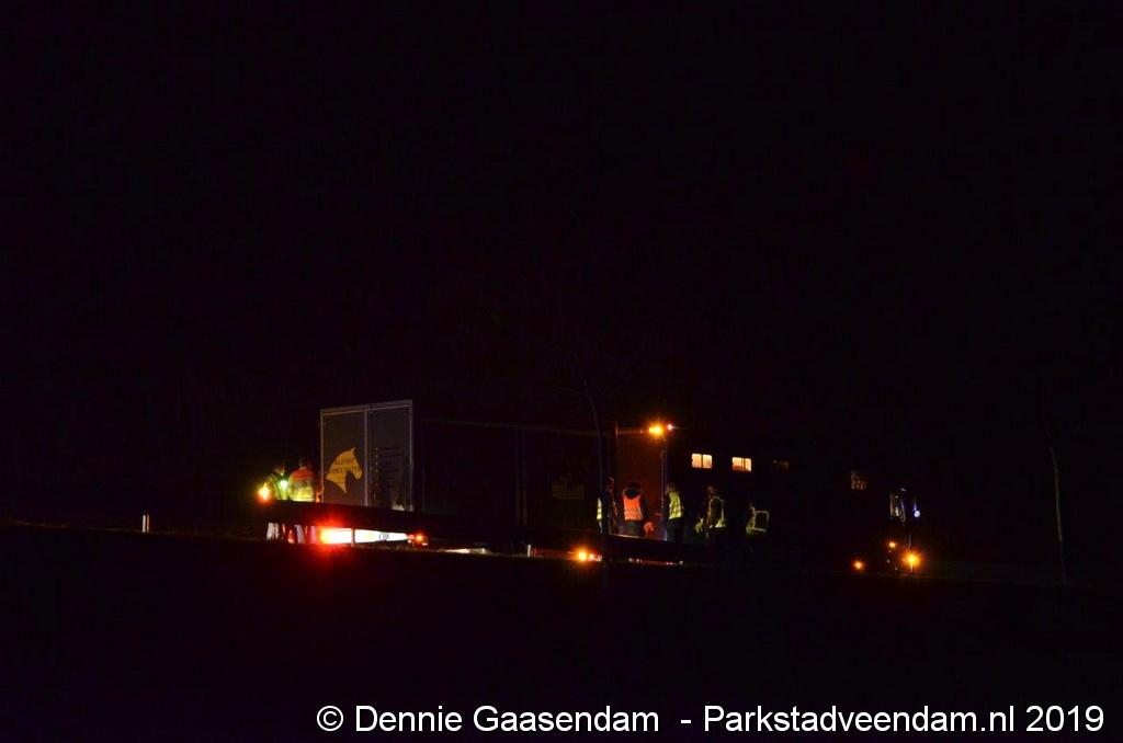 De N33 tussen Veendam en Bareveld is woensdagavond volledig afgesloten geweest. Ter hoogte van Wildervank is rond 22:30 uur, net na het viaduct, een uit Duitsland afkomstige vrachtwagen gestrand met daarin een drietal sportpaarden.