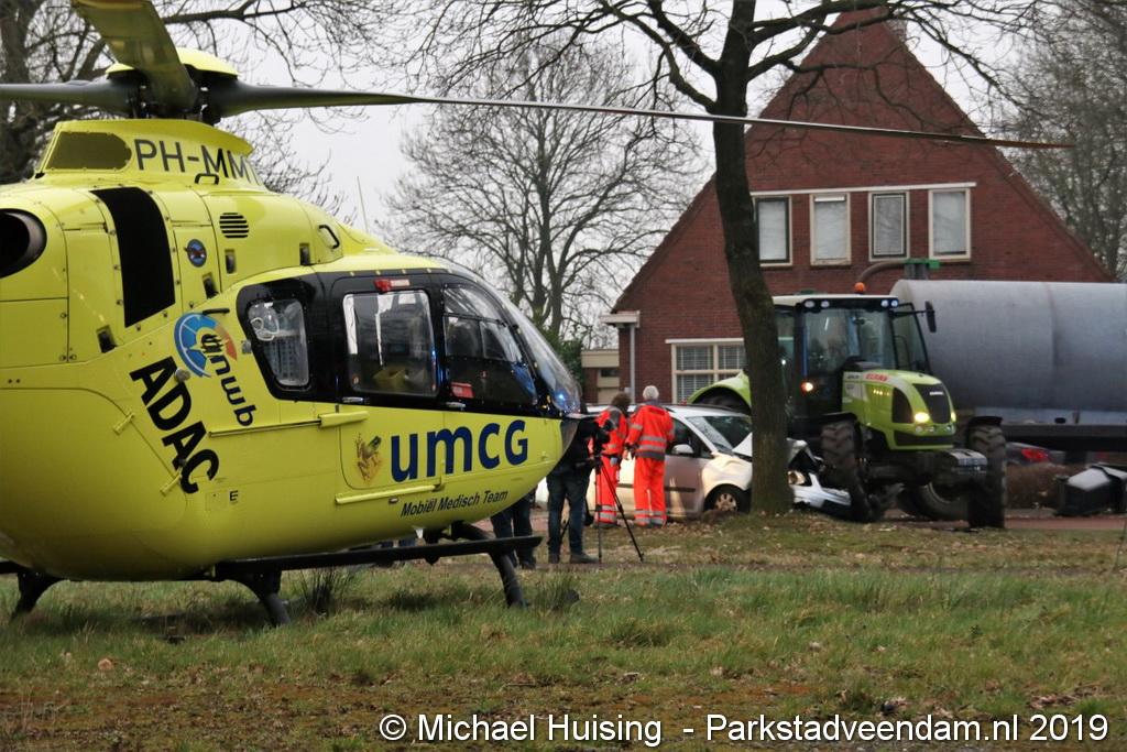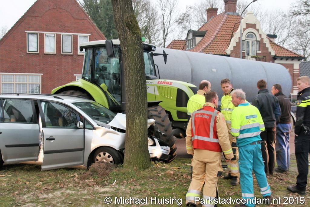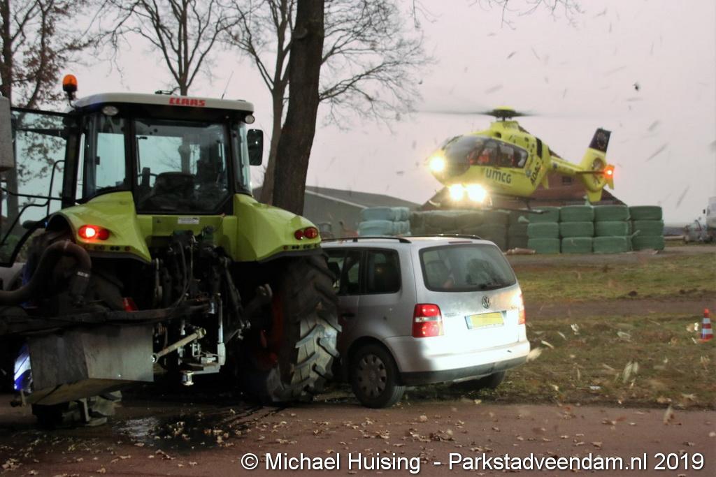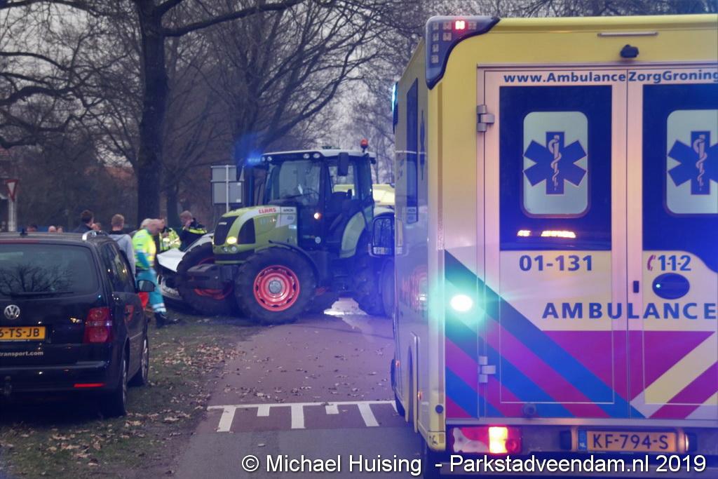 Donderdag aan het eind van de middag zijn een trekker en een personenauto door onbekende oorzaak met elkaar in botsing gekomen op de Zuidwending.