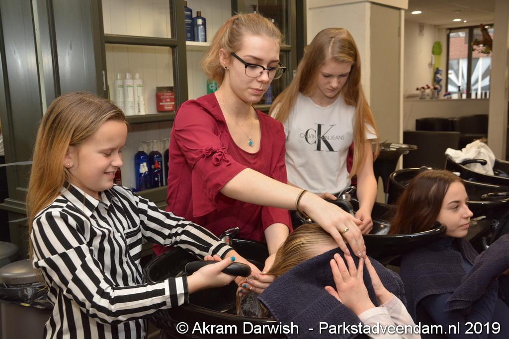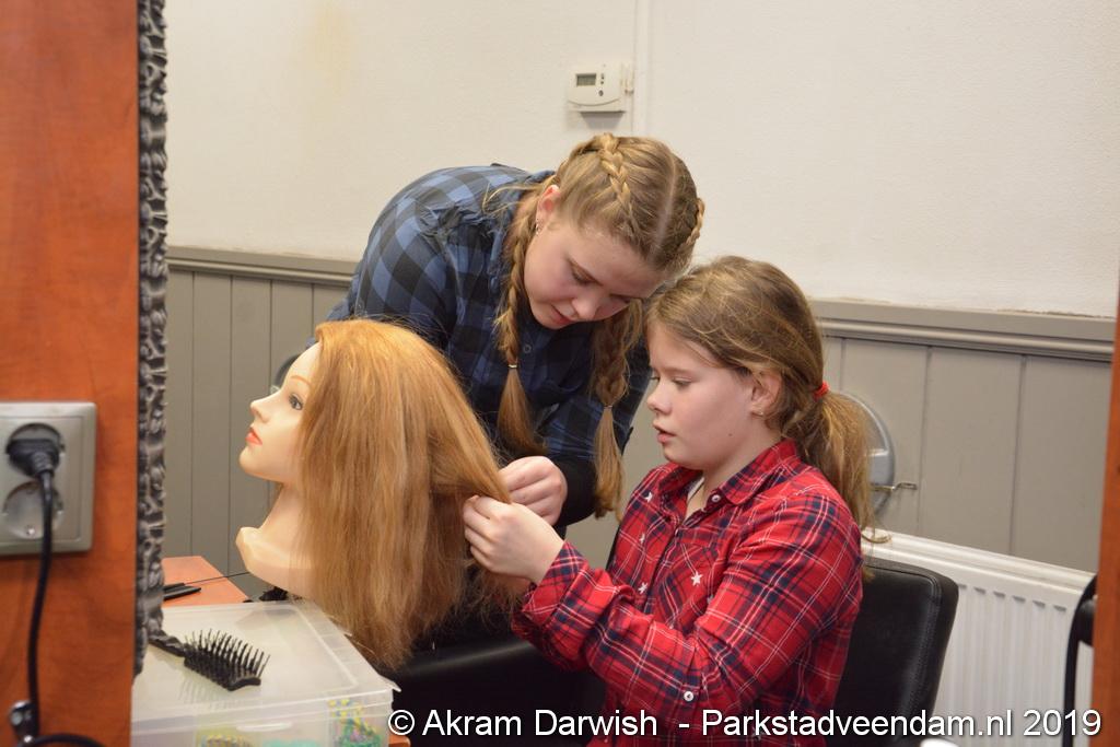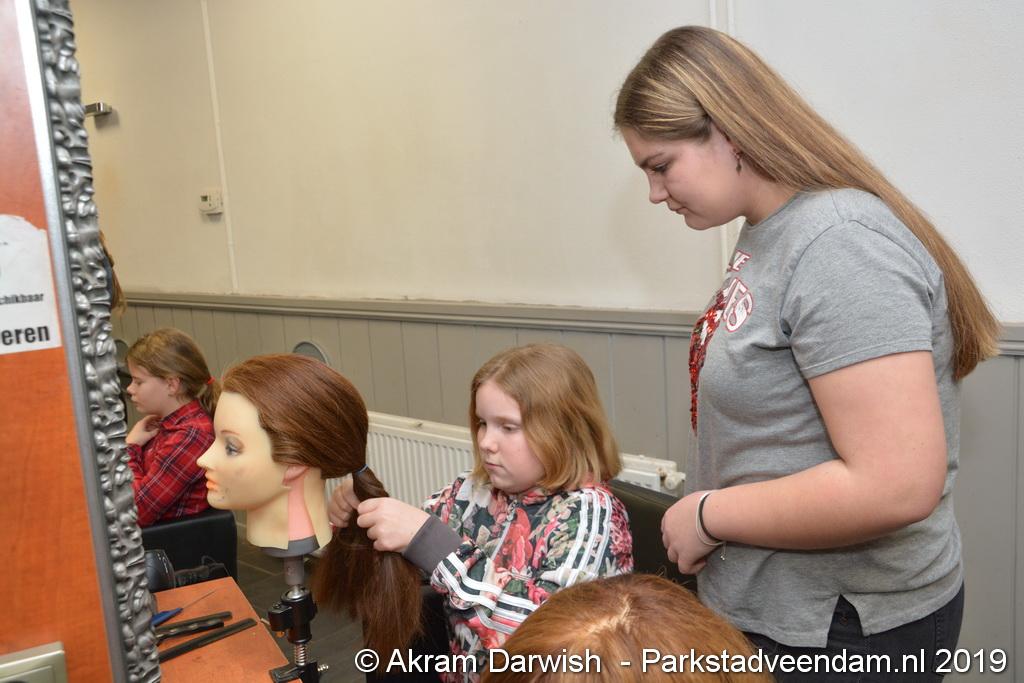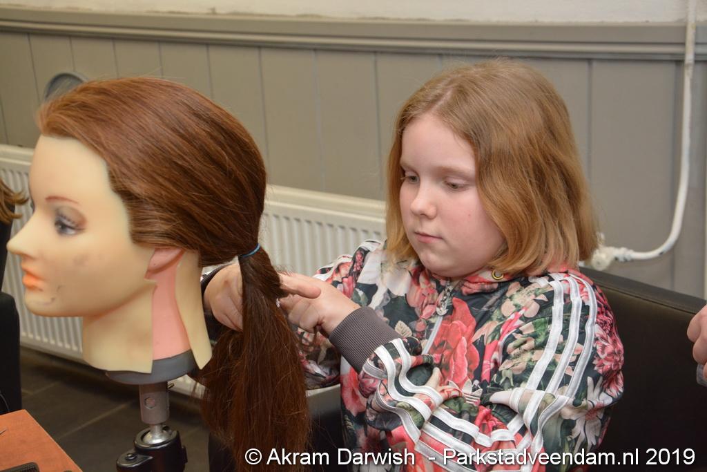 Ze mochten elkaars haren wassen en in model brengen met de fohn, het haarvlechten oefenen op een oefenhoofd en elkaars nagels lakken. En dit deden ze in groepjes om en om zodat iedereen aan de beurt kwam, begeleid door een echte kapster. In de pauze stond er wat lekker klaar voor de kinderen. Ook mochten ze vragen stellen over het kappersvak.