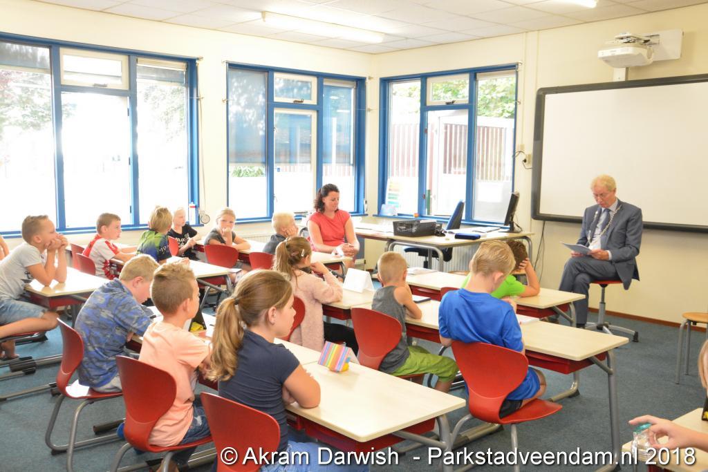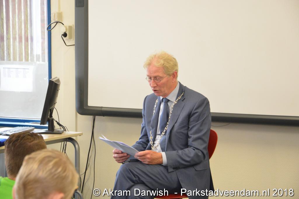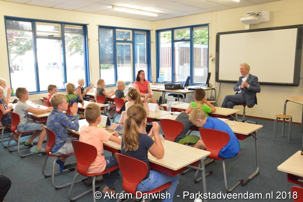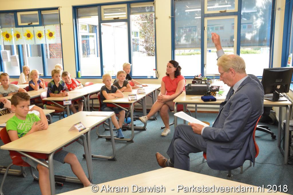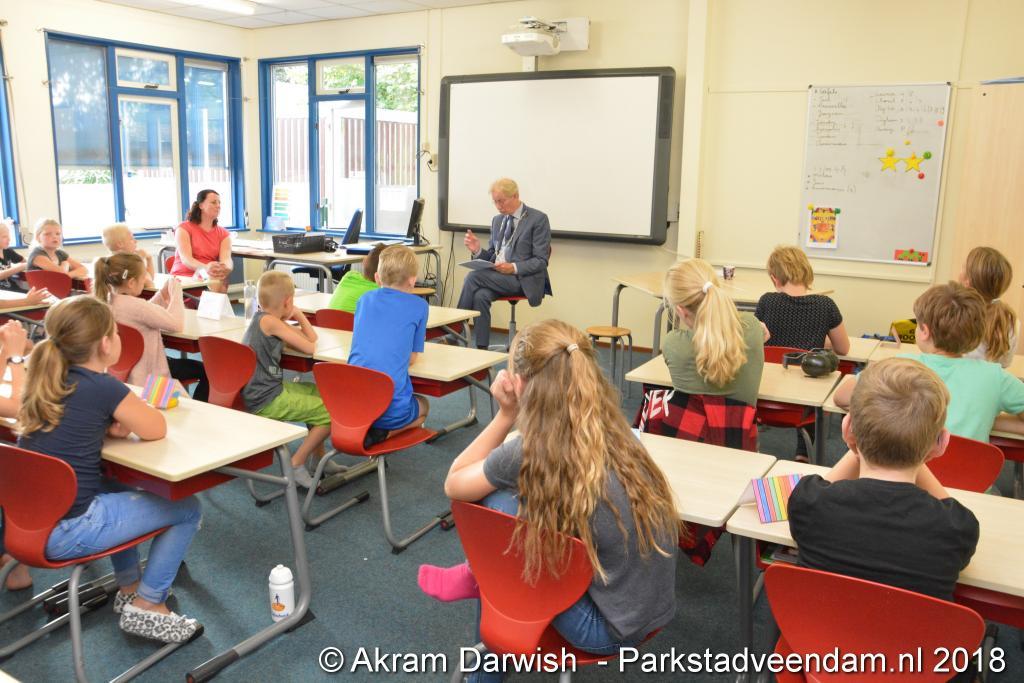 Burgemeester Swierstra gaat het volksverhaal “De dolle jonker van Nienoord” voorlezen aan groep 5. Vervolgens deelt hij de stempelkaarten en de affiches van Oktobermaand Kindermaand uit. Oktobermaand Kindermaand wordt in de provincie Groningen georganiseerd door Erfgoedpartners. Tijdens Oktobermaand Kindermaand kunnen kinderen gratis deelnemen aan culturele activiteiten. Voor meer informatie kijk op www.kindermaand.nl.