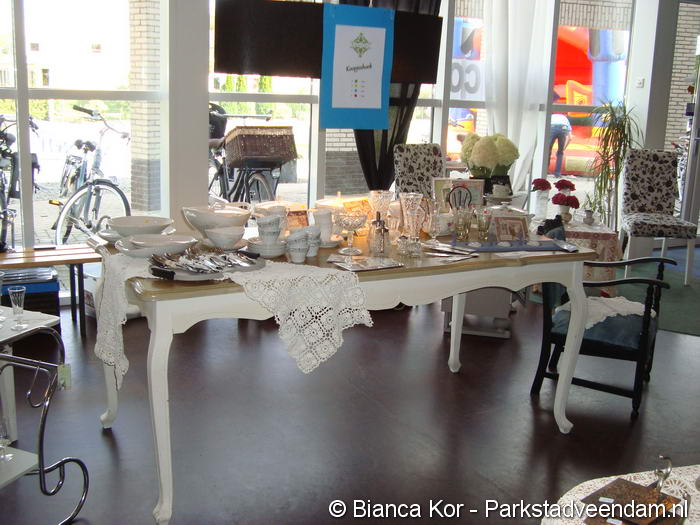 Letterlijk in de hoek van het gebouw was een koopjeshoek geplaatst met 'meubels uit het verleden, gerestyled naar het heden'. Vanuit de werkplaats in Zuidbroek worden meubelen met veel zorg gerestaureerd en voorzien van een nieuwe look, die zowel bij een landelijke als moderne woonstijl passen.