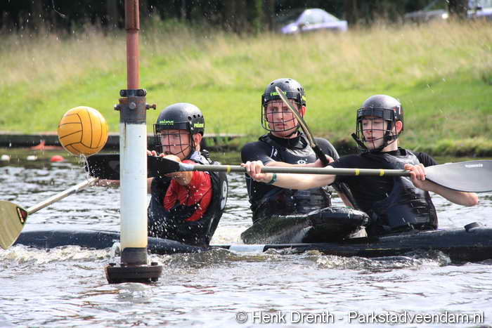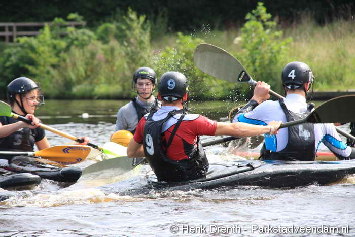 Het kanopolo team De Veenploeters gaven spetterende demonstraties van hun, zo op het oog, ruige sport. Kanopolo is een soort van waterpolo, maar dan in kano's. Het is ook een heel intensieve sport en het gevecht om de bal levert vaak spectaculaire taferelen op.
