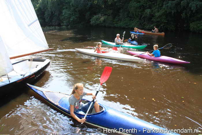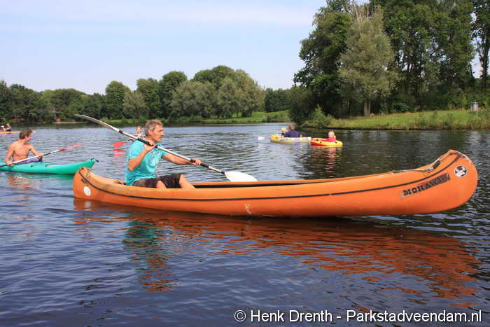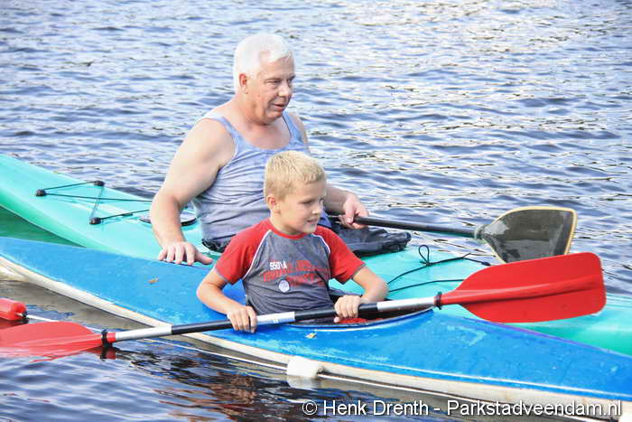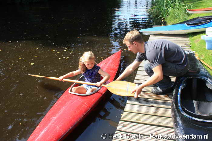Maar ook een enkele ouder liet zich verleiden om in een kajak te stappen voor een mooi rondje varen over het Peerdewaske. Het was op deze mooie zomerdag een uitgelezen kans om onder begeleiding van enthousiaste en ervaren kanovaarders te kanoën. Vanaf de kant en op het water kregen de gelegenheidskanoërs de nodige instructies. Verschillende typen kano's lagen ook te "kust" en te keur.