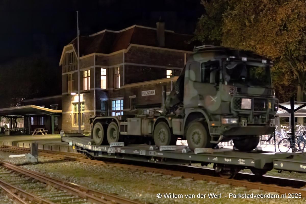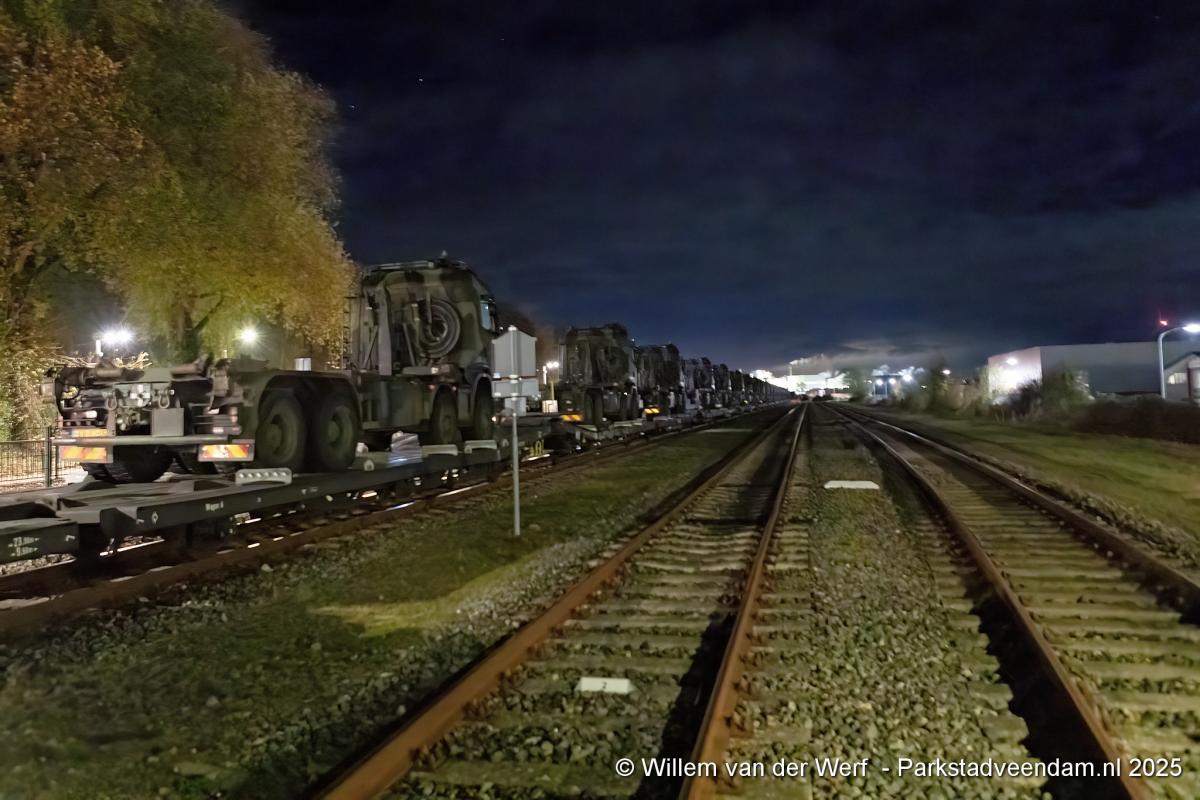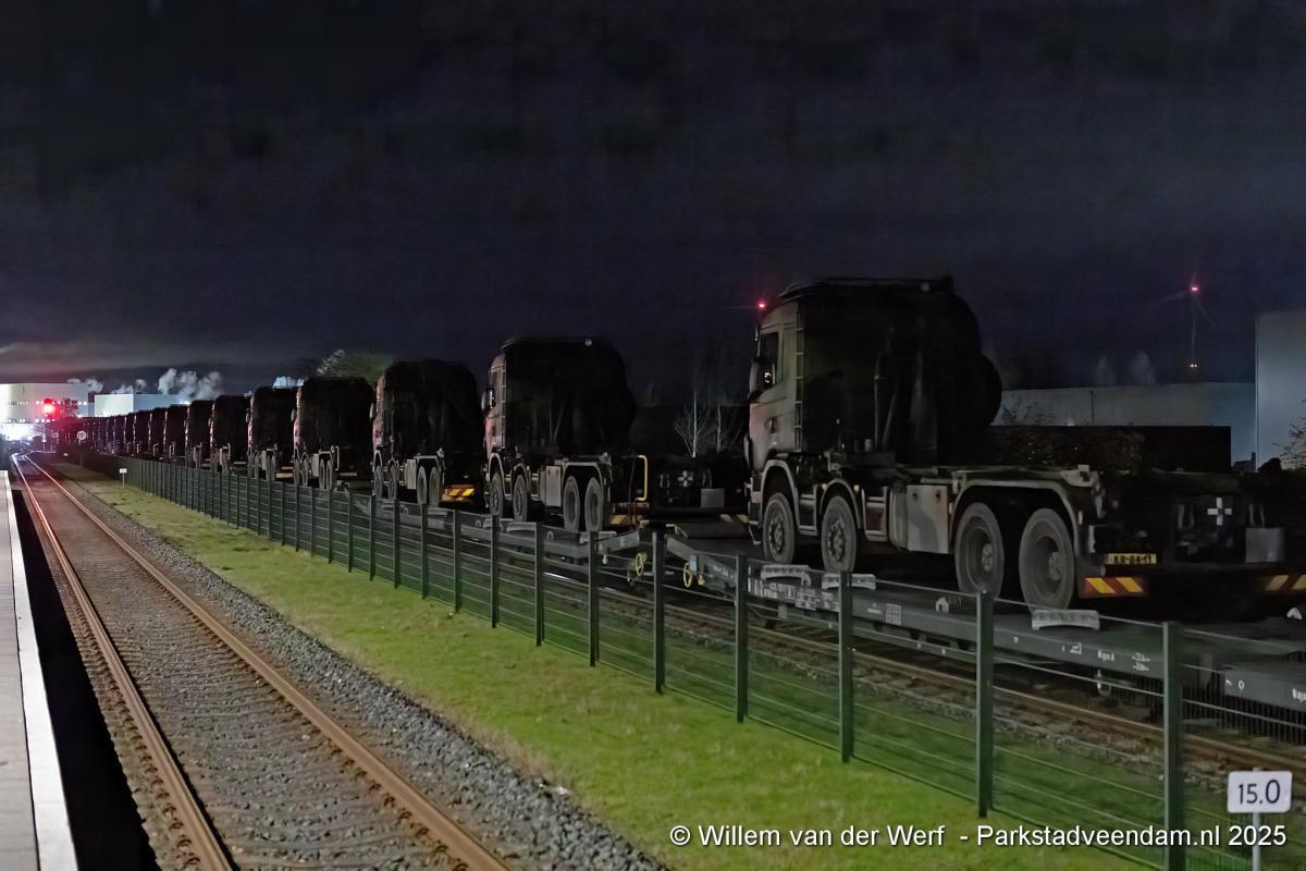 Zondagavond kwam een trein met circa 40 militaire voertuigen rangeren op het station van Veendam.
