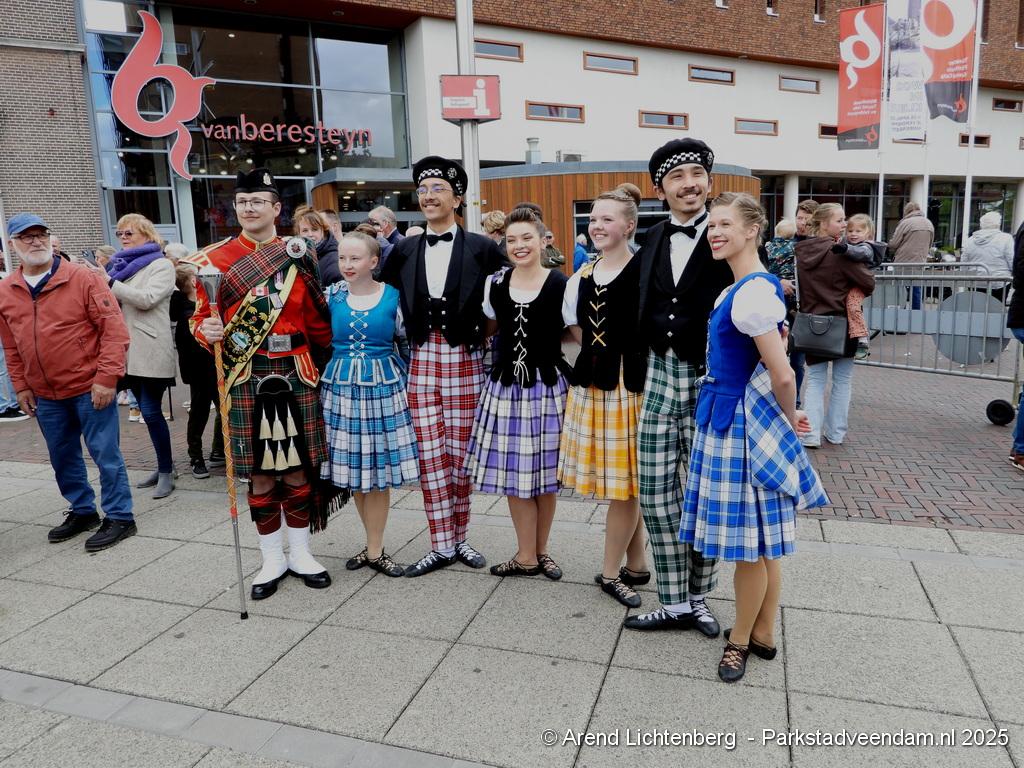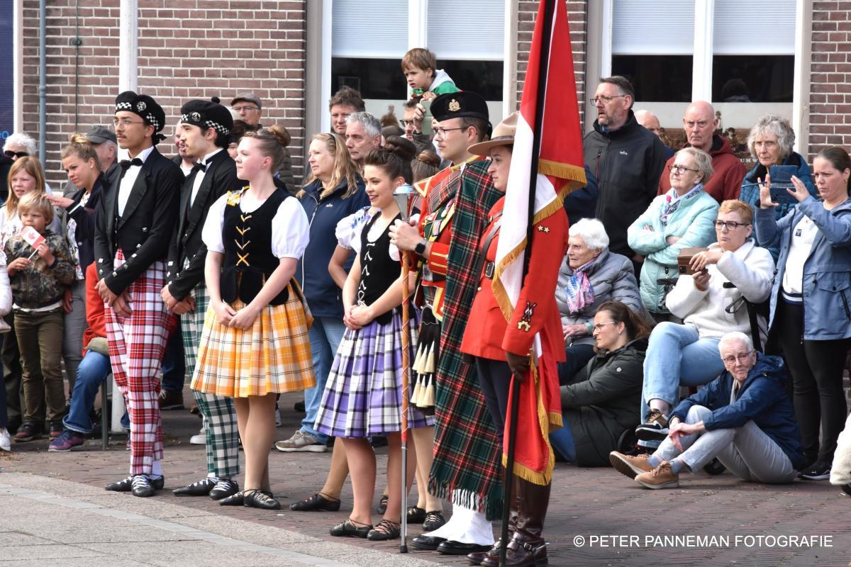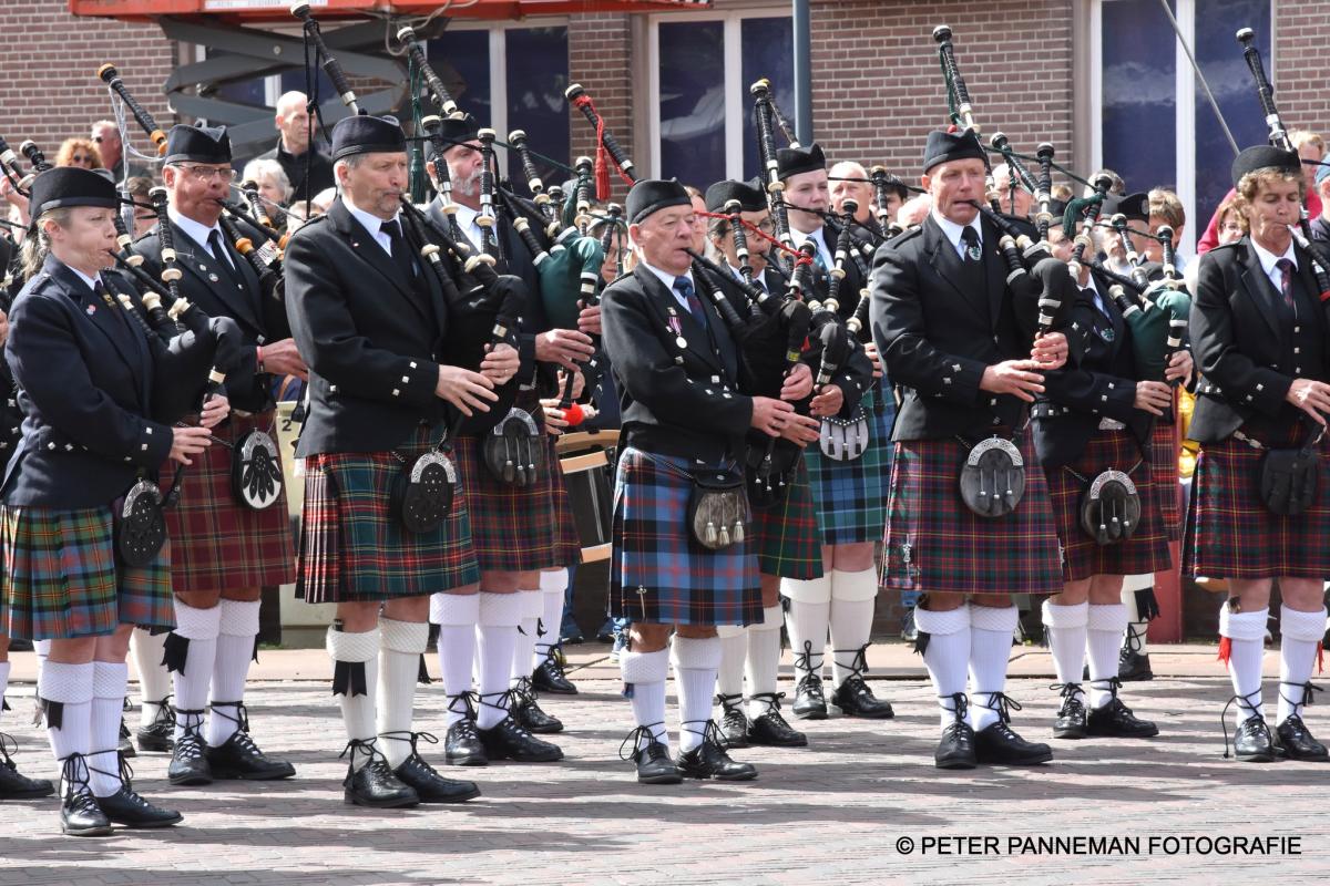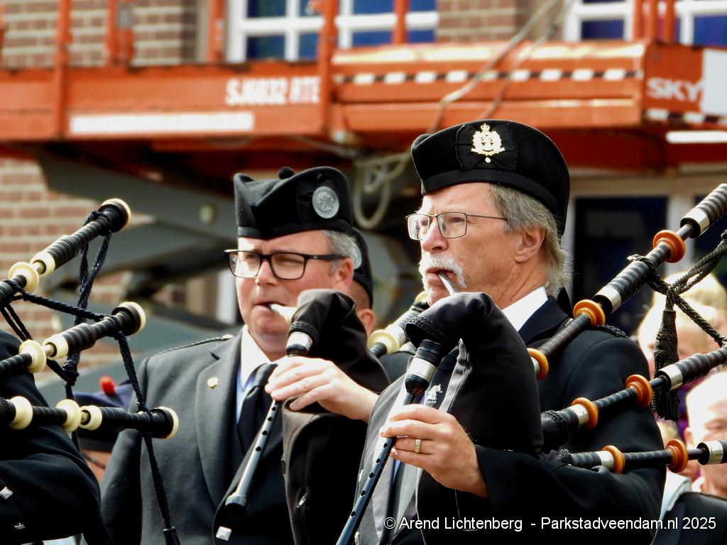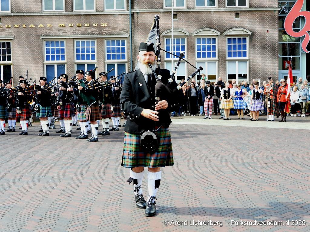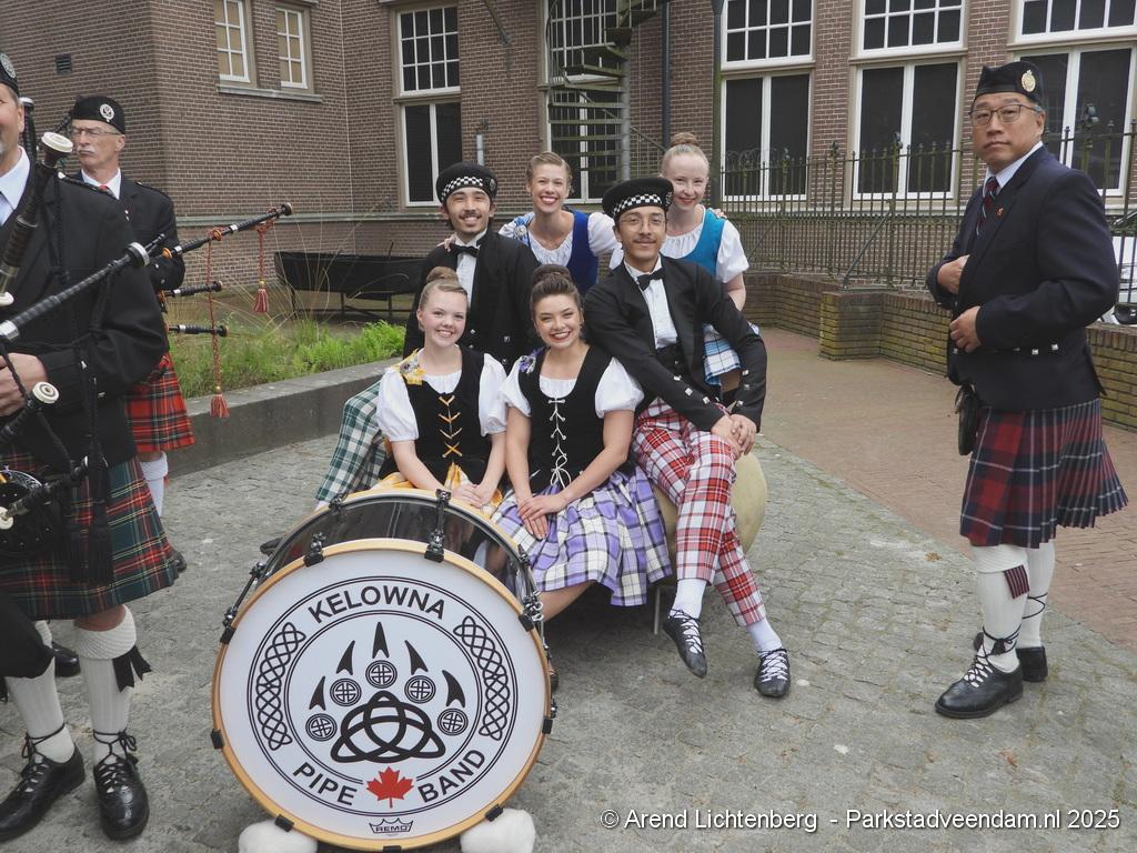 Zondagmiddag gaf de Kelowna Pipe Band een gratis openluchtoptreden op het Museumplein in Veendam.