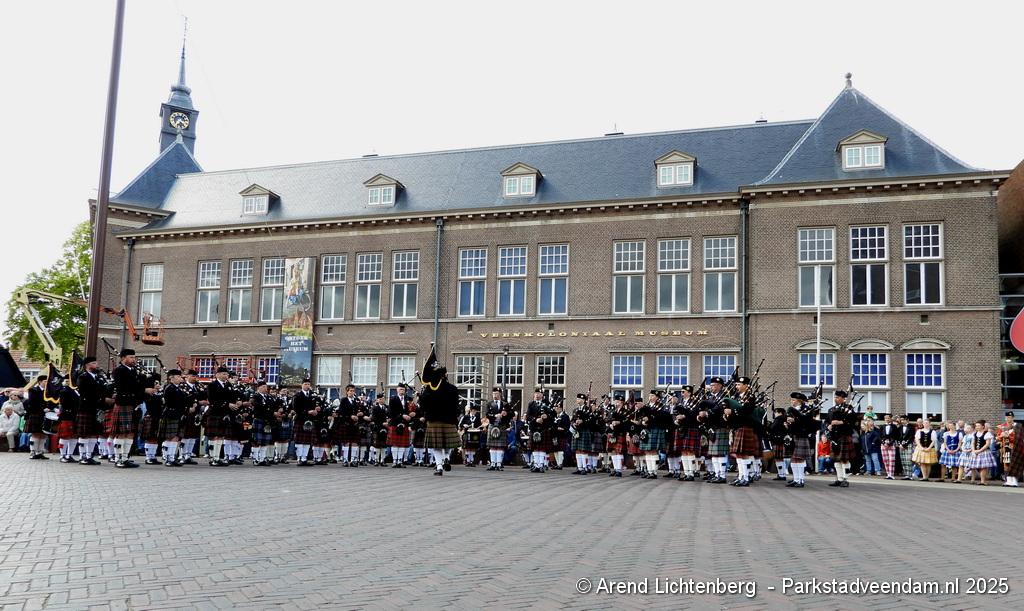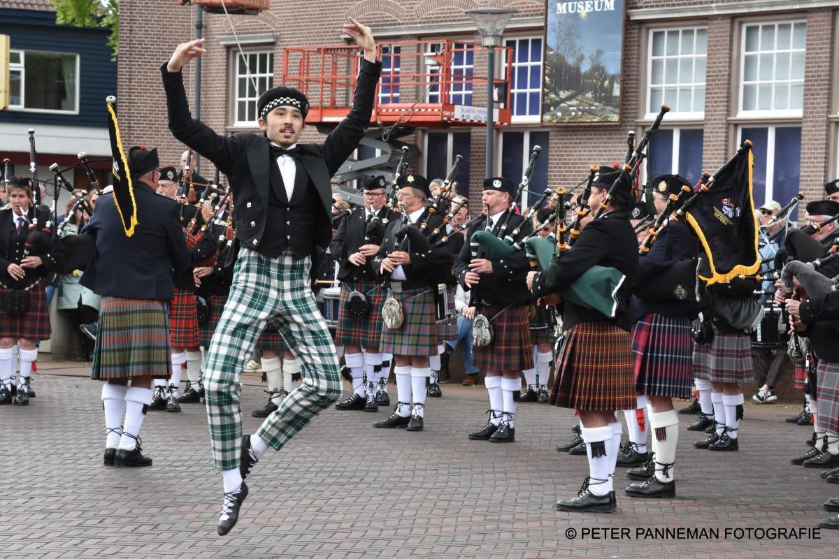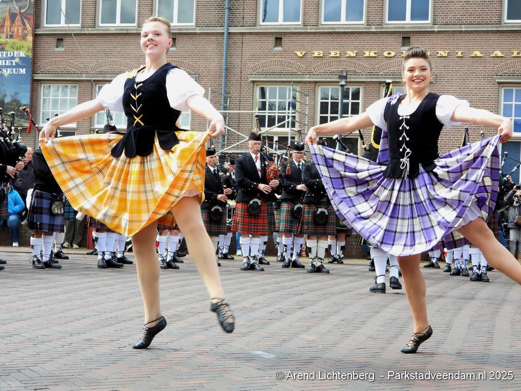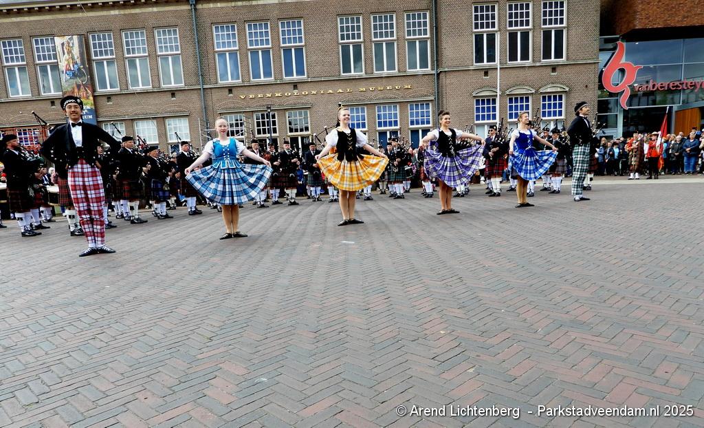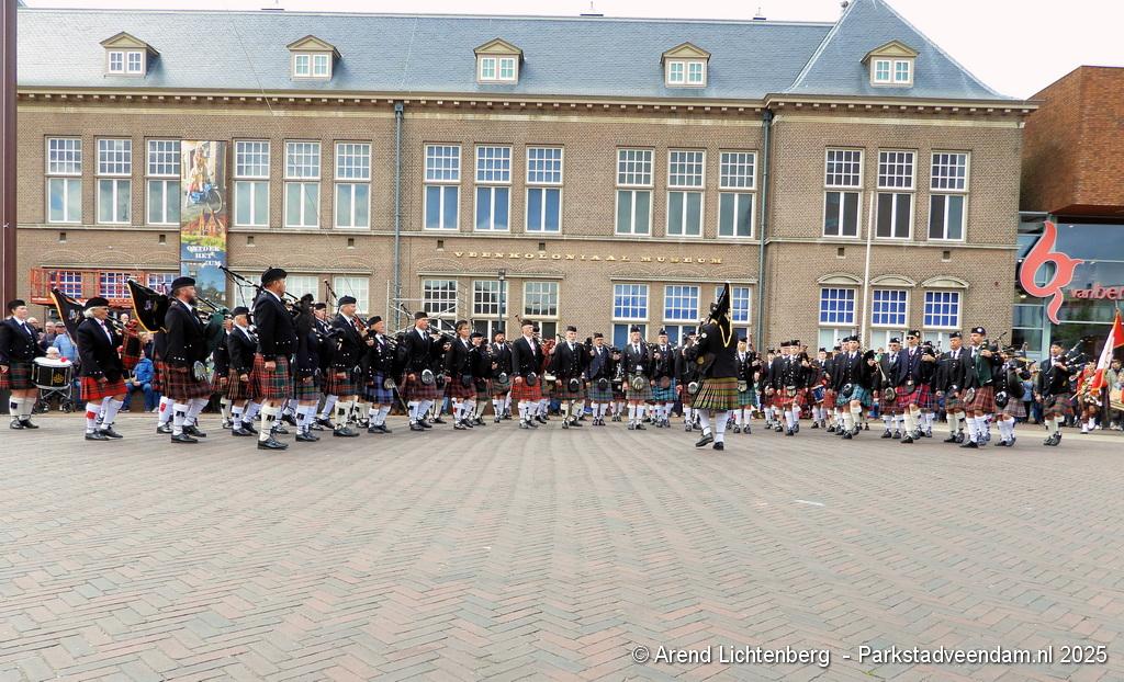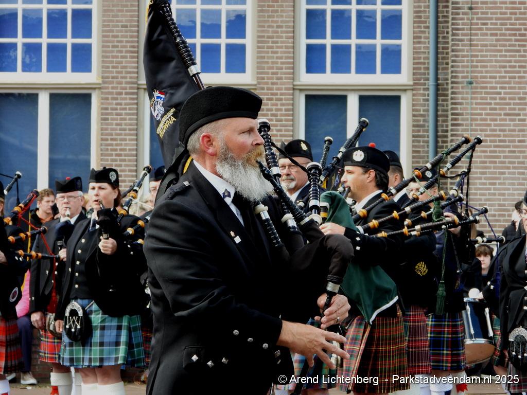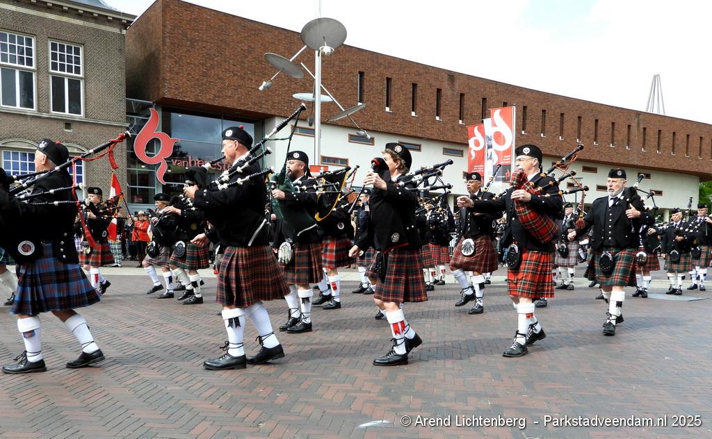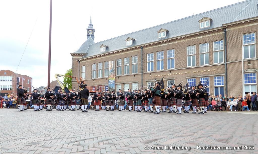 Zondagmiddag gaf de Kelowna Pipe Band een gratis openluchtoptreden op het Museumplein in Veendam.