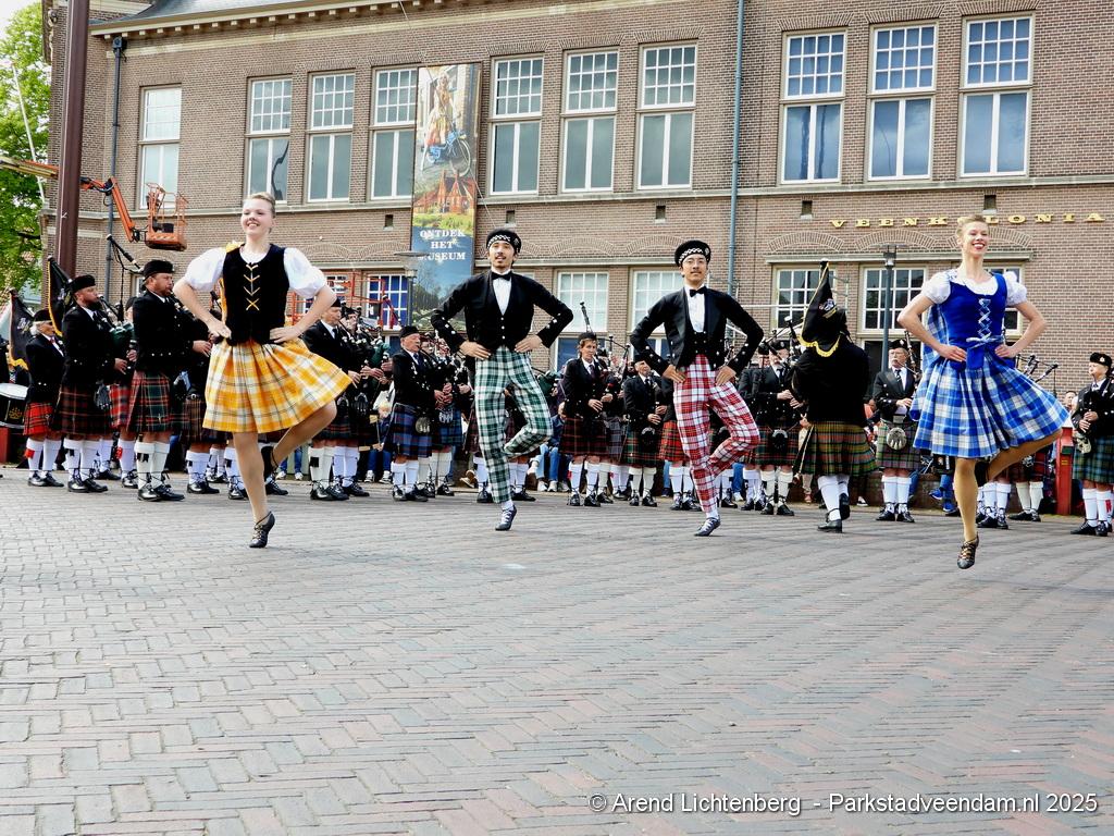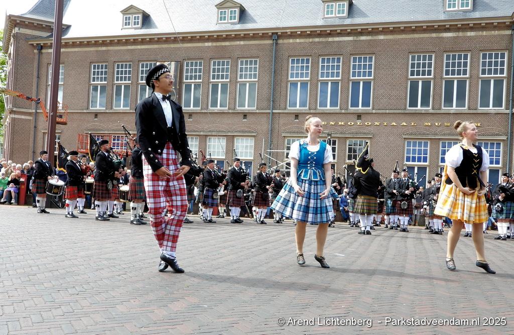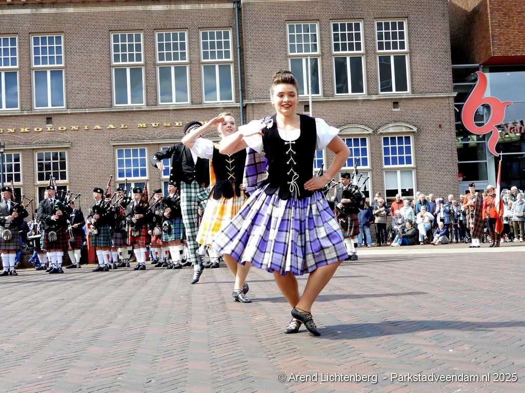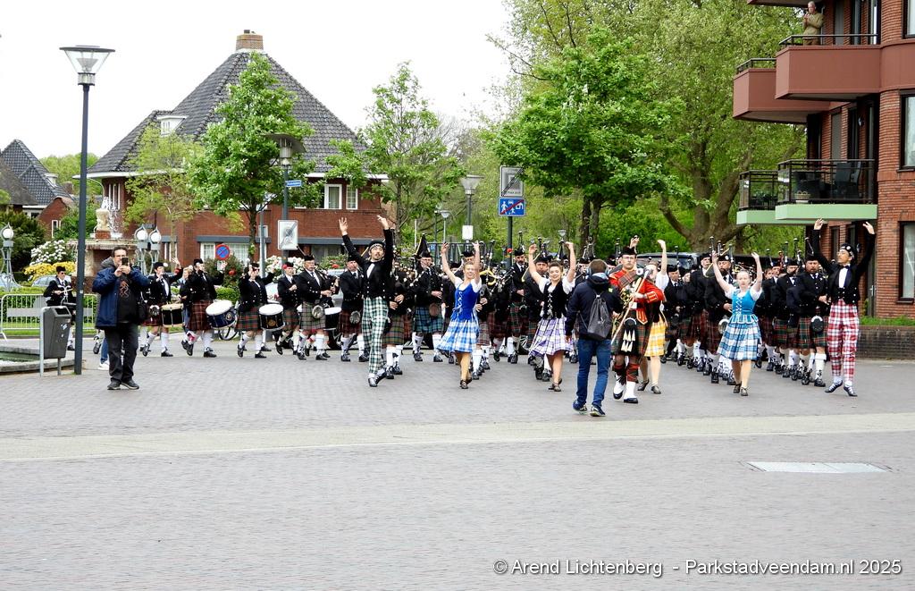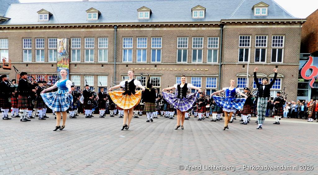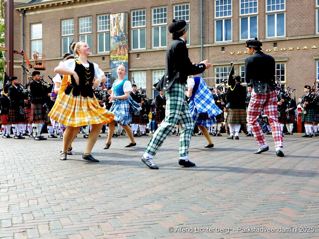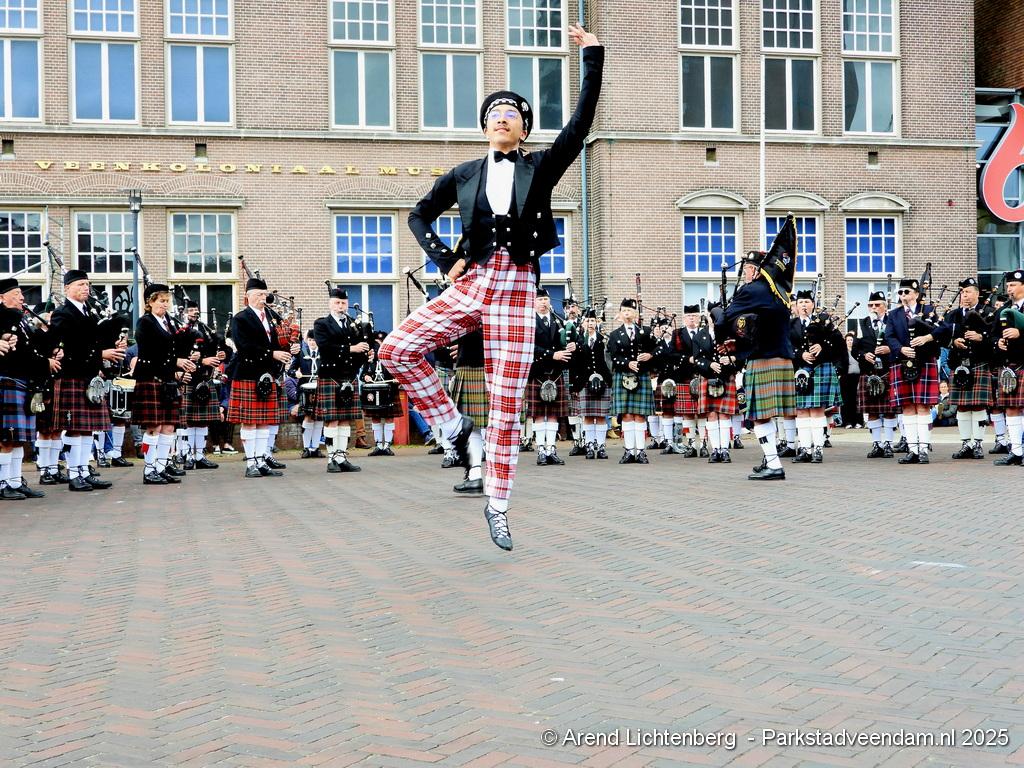 Zondagmiddag gaf de Kelowna Pipe Band een gratis openluchtoptreden op het Museumplein in Veendam.
