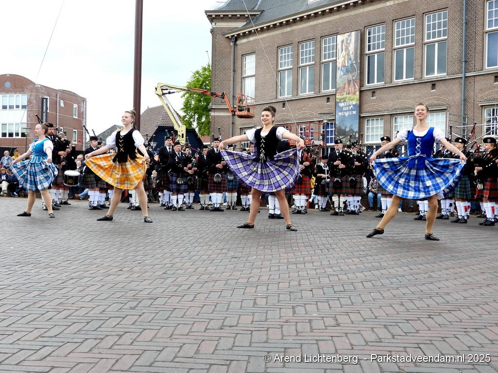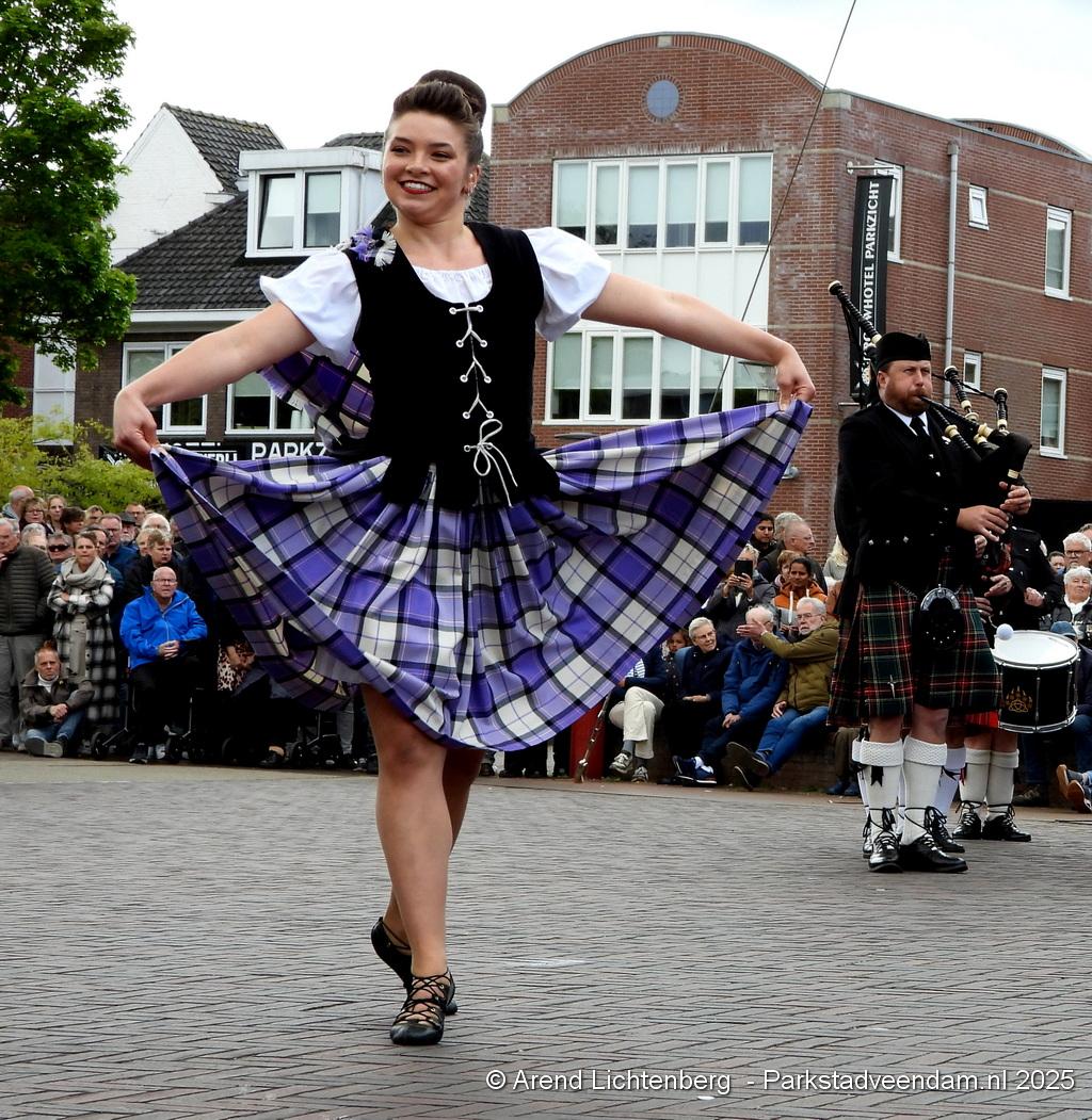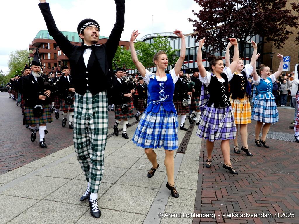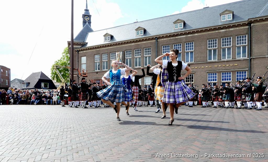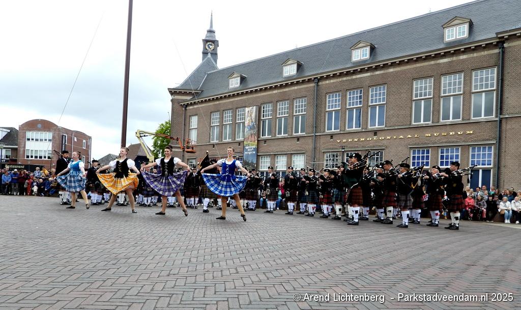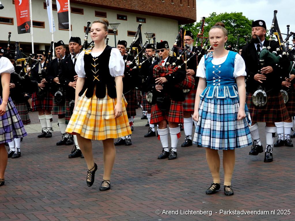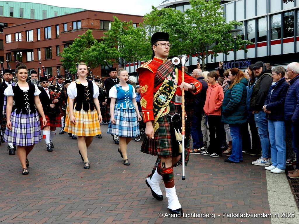 Zondagmiddag gaf de Kelowna Pipe Band een gratis openluchtoptreden op het Museumplein in Veendam.
